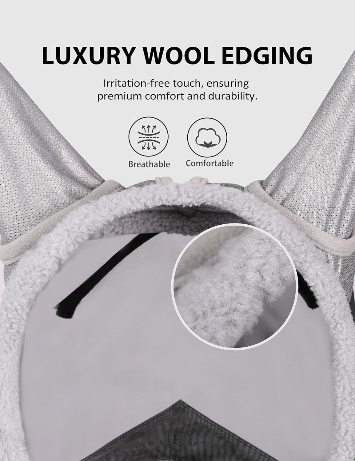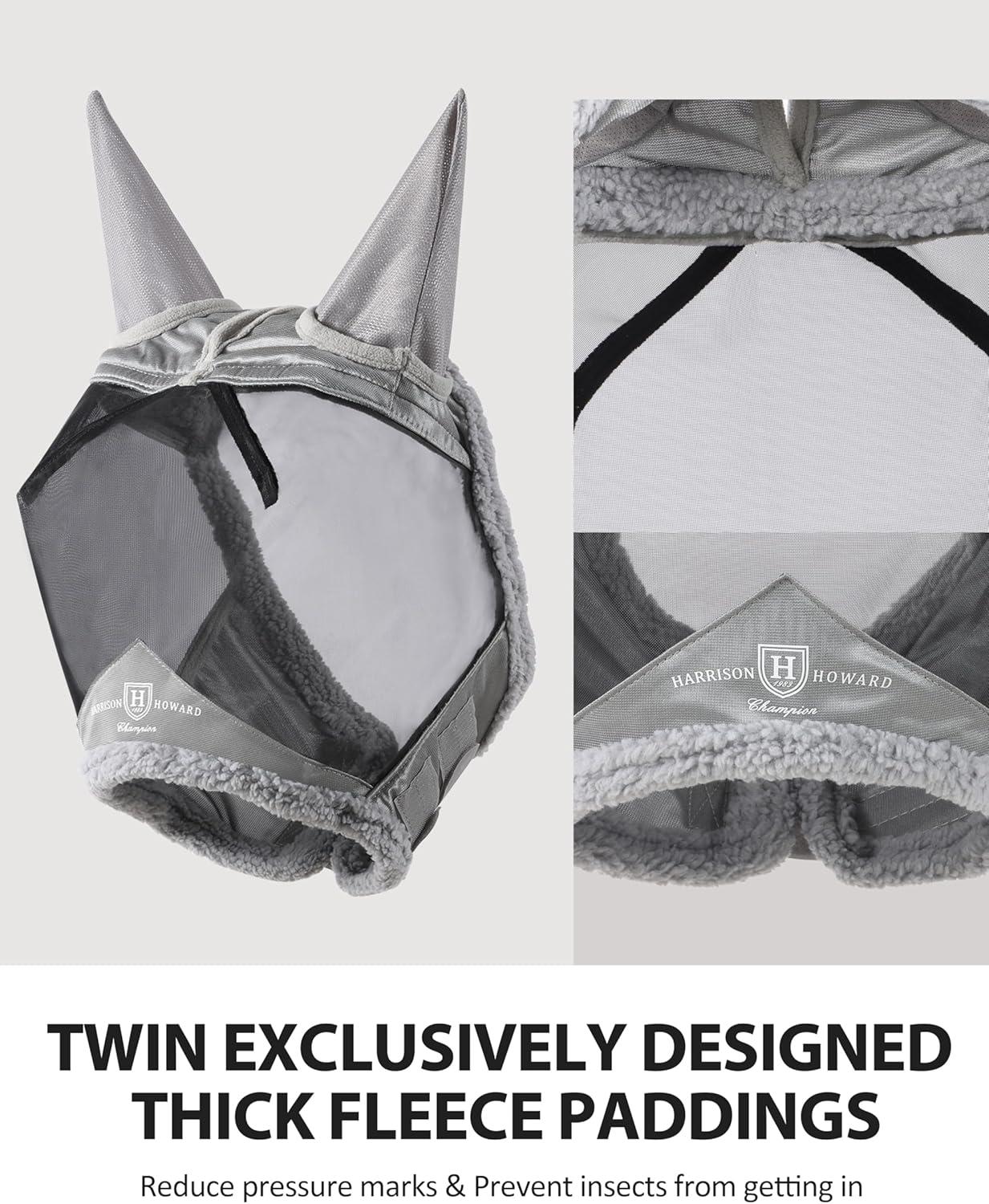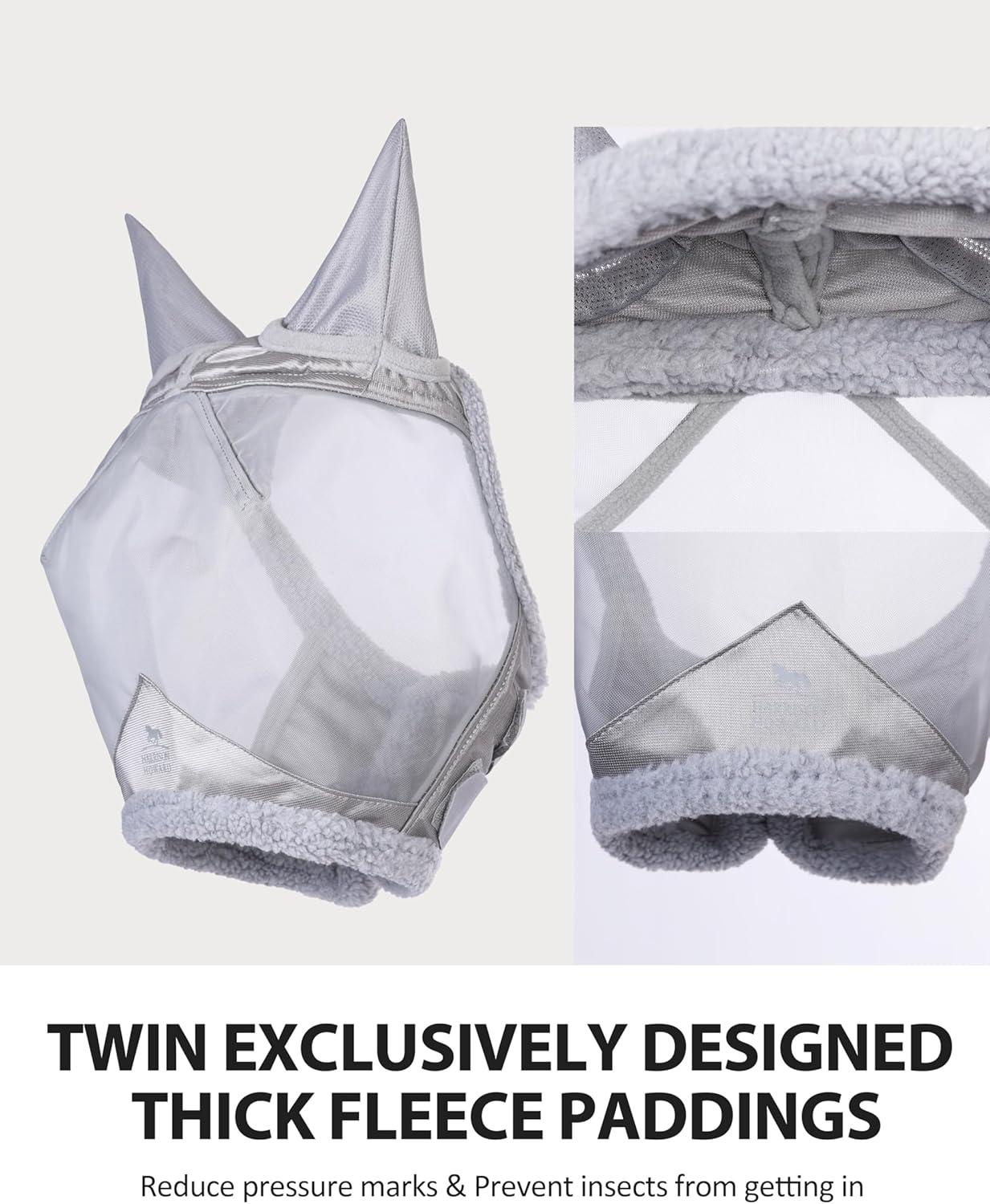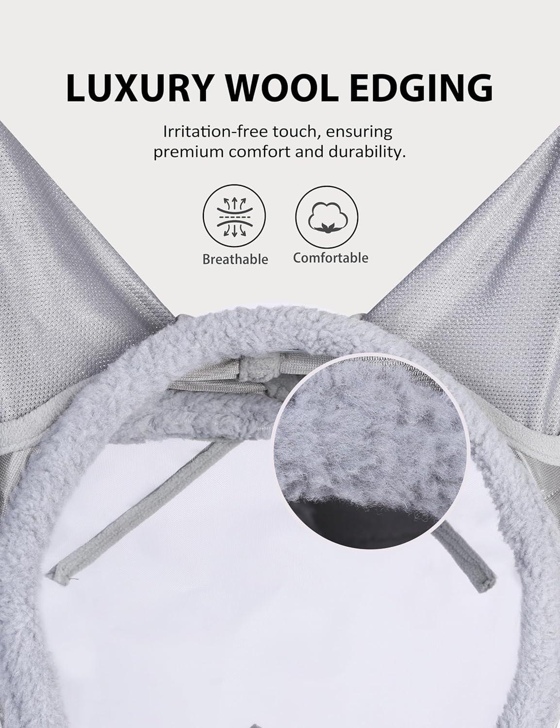 Harrison Howard Horse Fly Mask UV Protective Fine Mesh with Extra Wool Soft Touch on Skin Fly and UV Protection Moonlight Silver S(Moonlight Silver)