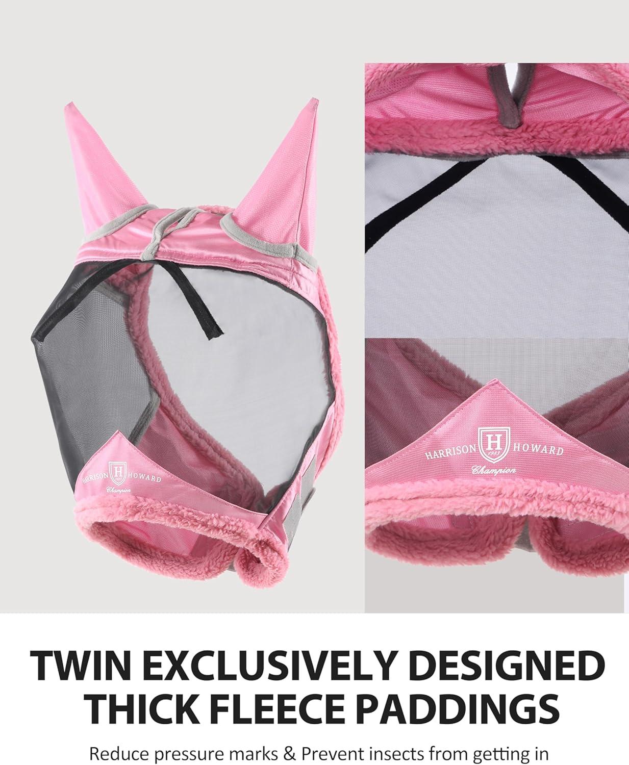 Harrison Howard CareMaster Horse Fly Mask UV Protective Fine Mesh with Extra Wool Soft Touch on Skin Champion Blue M(Light Pink)