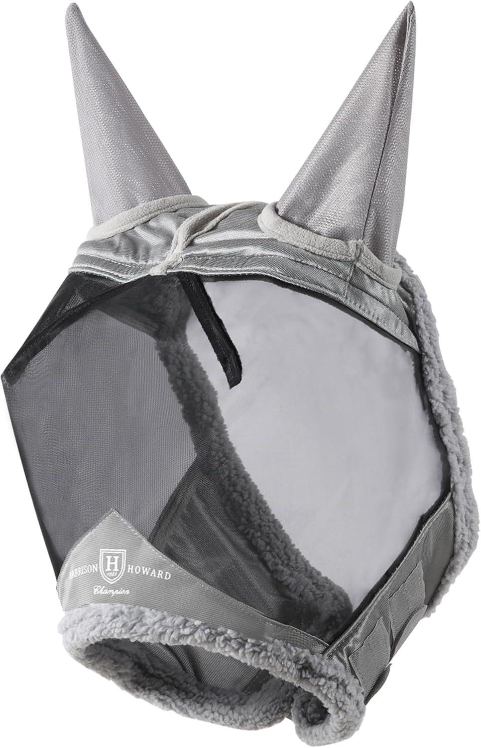 Harrison Howard CareMaster Horse Fly Mask UV Protective Fine Mesh with Extra Wool Soft Touch on Skin Champion Blue L(Silver)