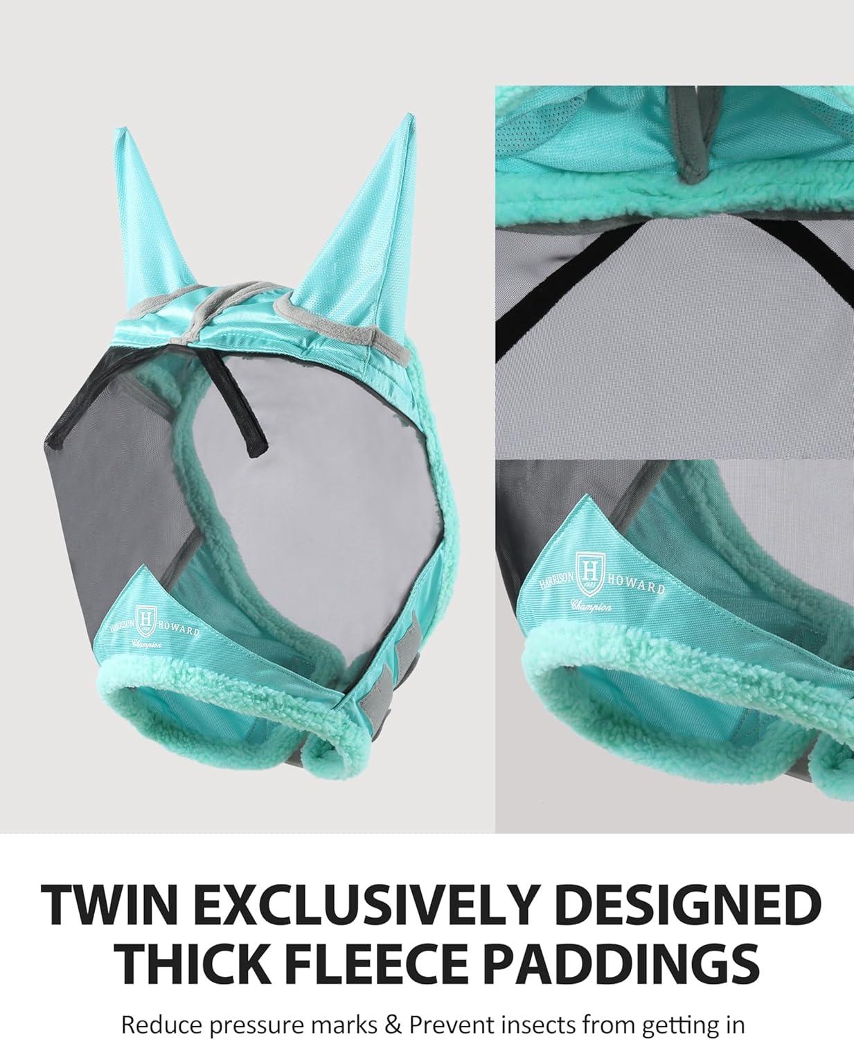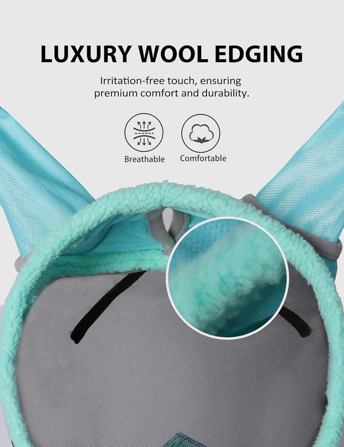Harrison Howard Horse Fly Mask UV Protective Fine Mesh with Extra Wool Soft Touch on Skin Fly and UV Protection Moonlight Silver S(Summer Mint)