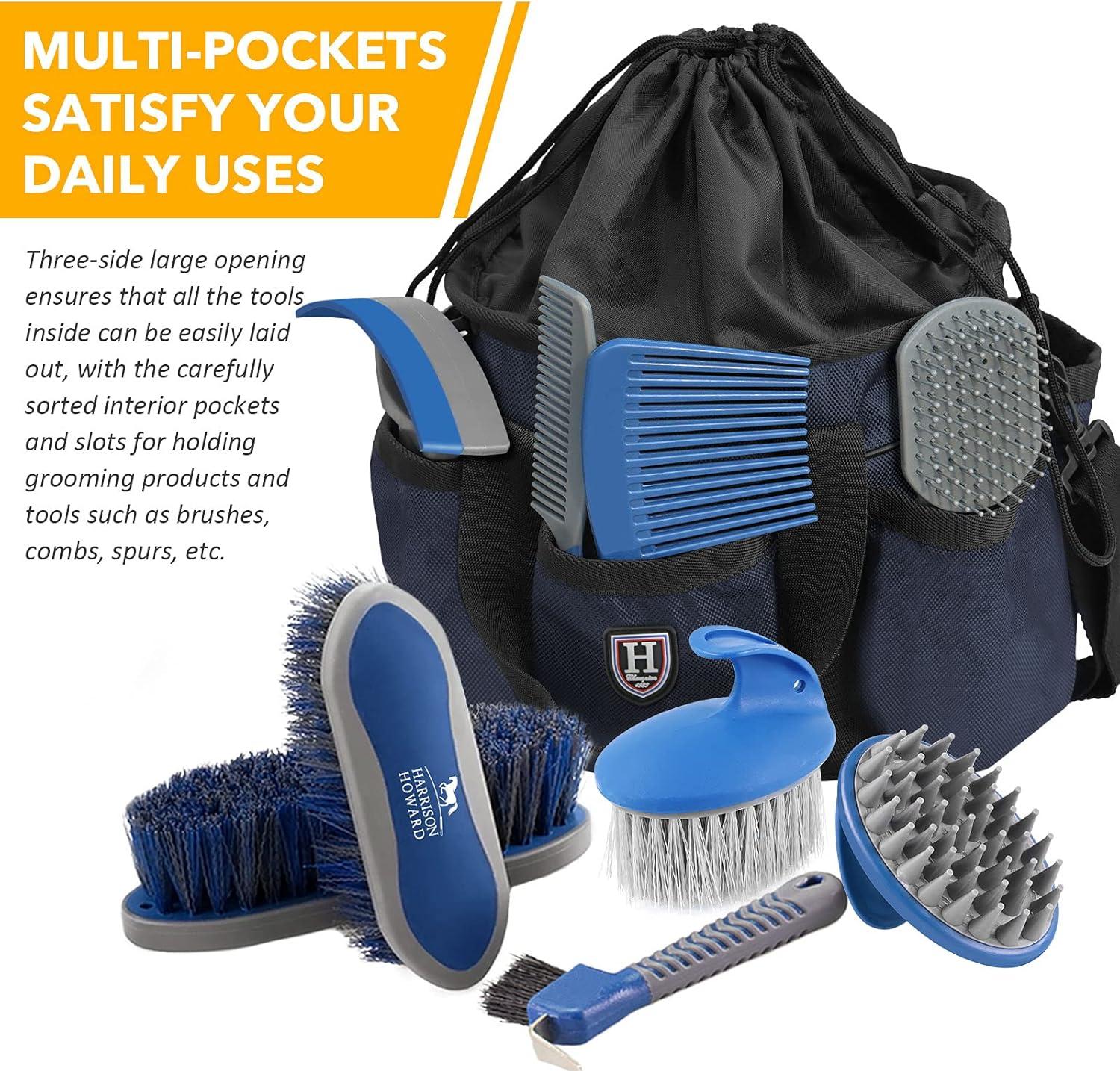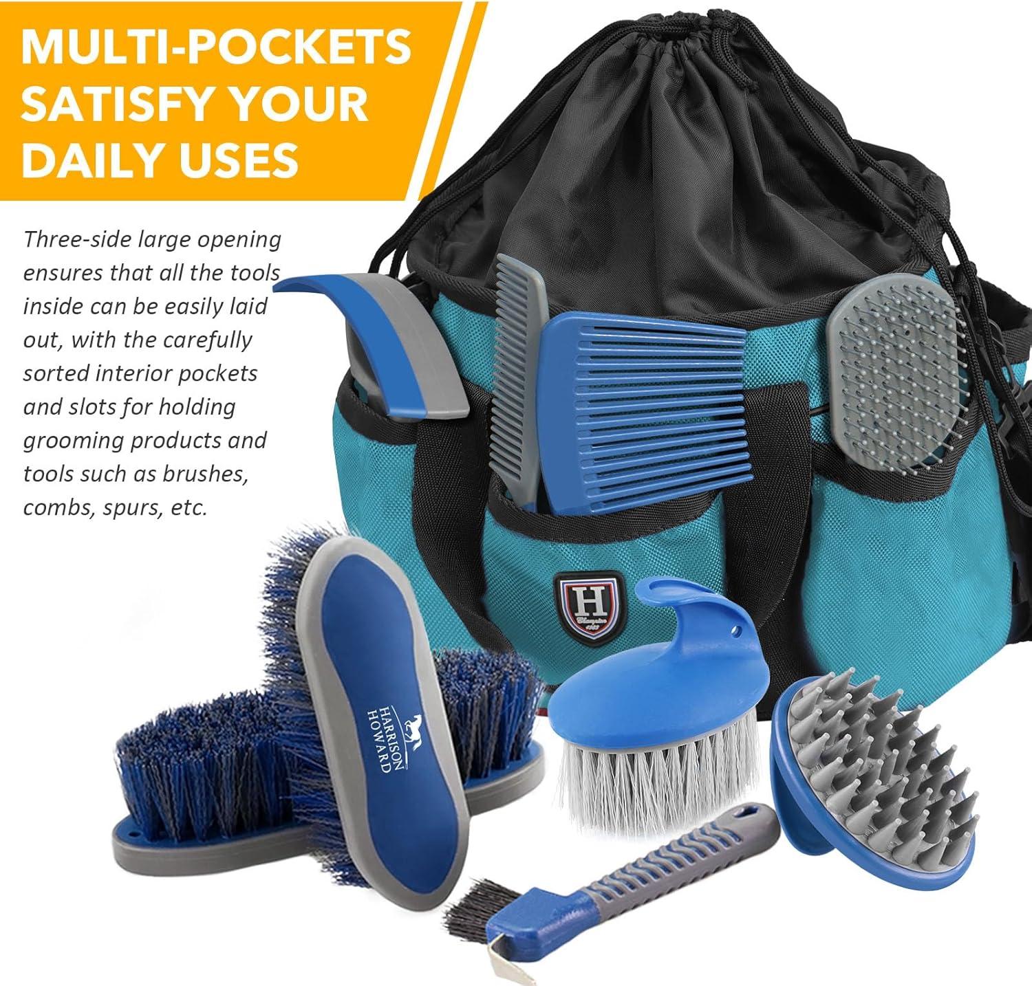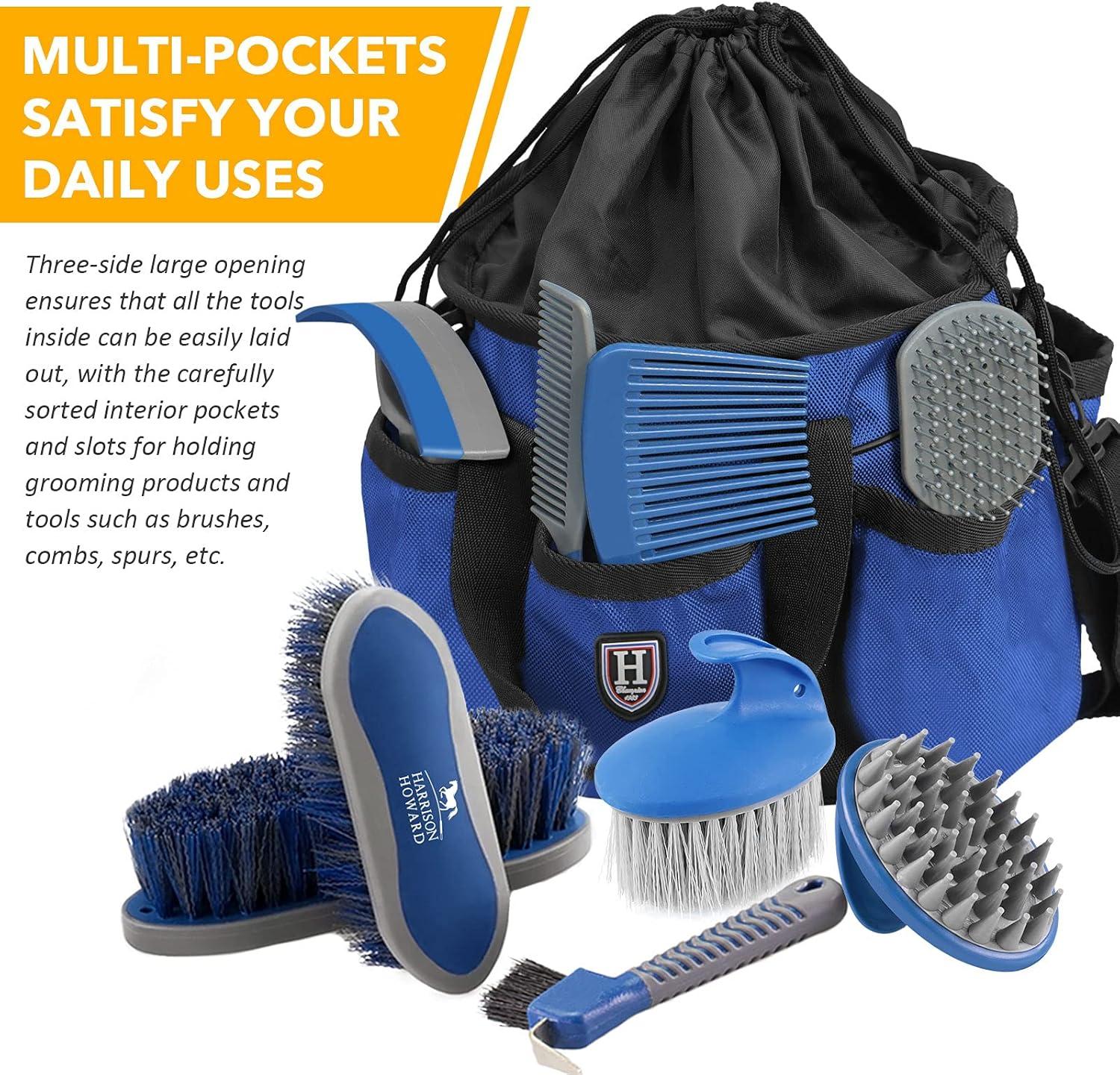 Harrison Howard Premium Multipurpose Durable Horse Grooming Organizer Bag Cleaning Supply Tote Bag-Ruby Red(Champion Blue)