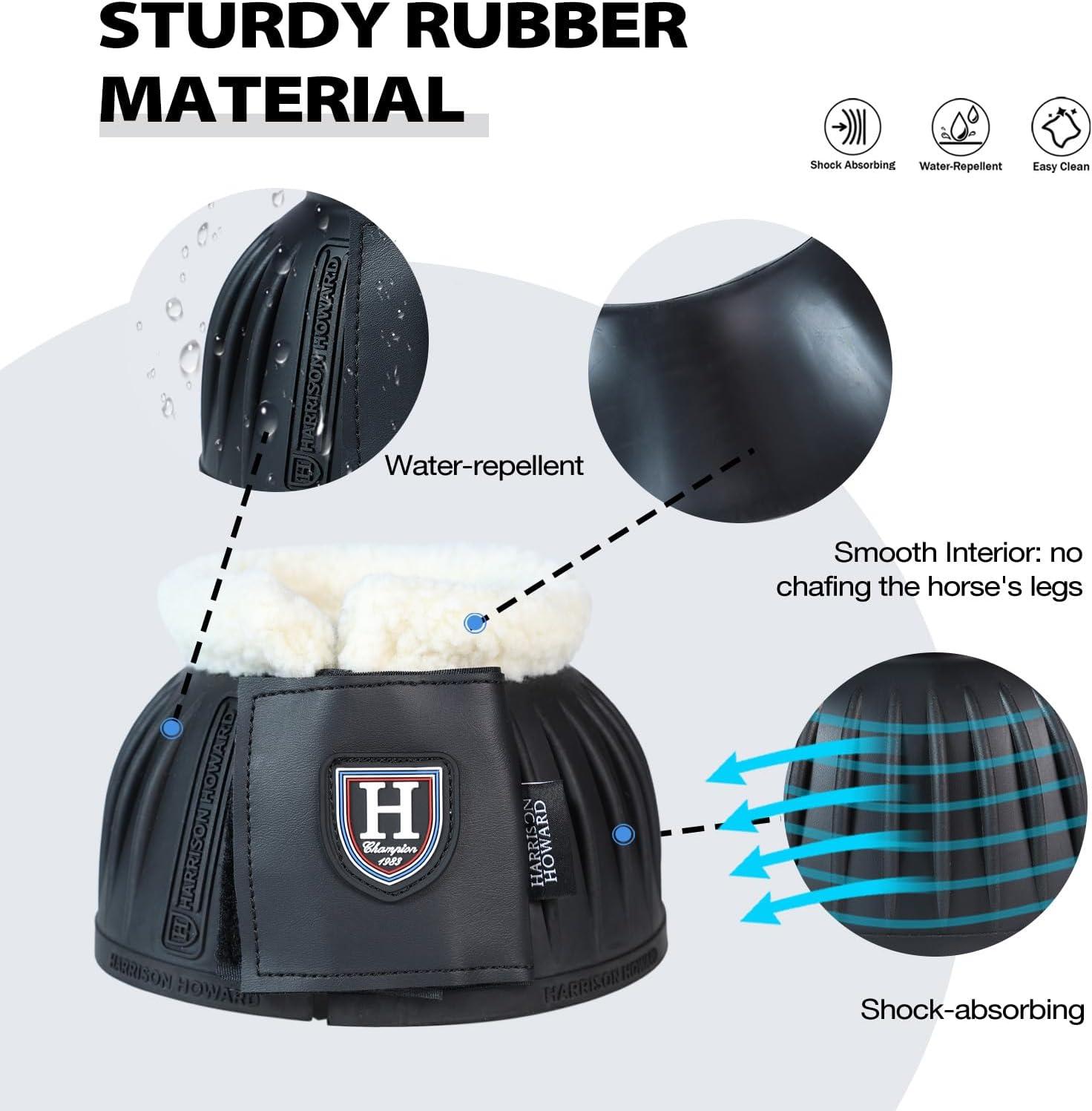 Harrison Howard Rubber Pull-on Bell Boots with Fleece Lining and Touch-Close Tapes Hoof Overreach Protection for Horses(Black)