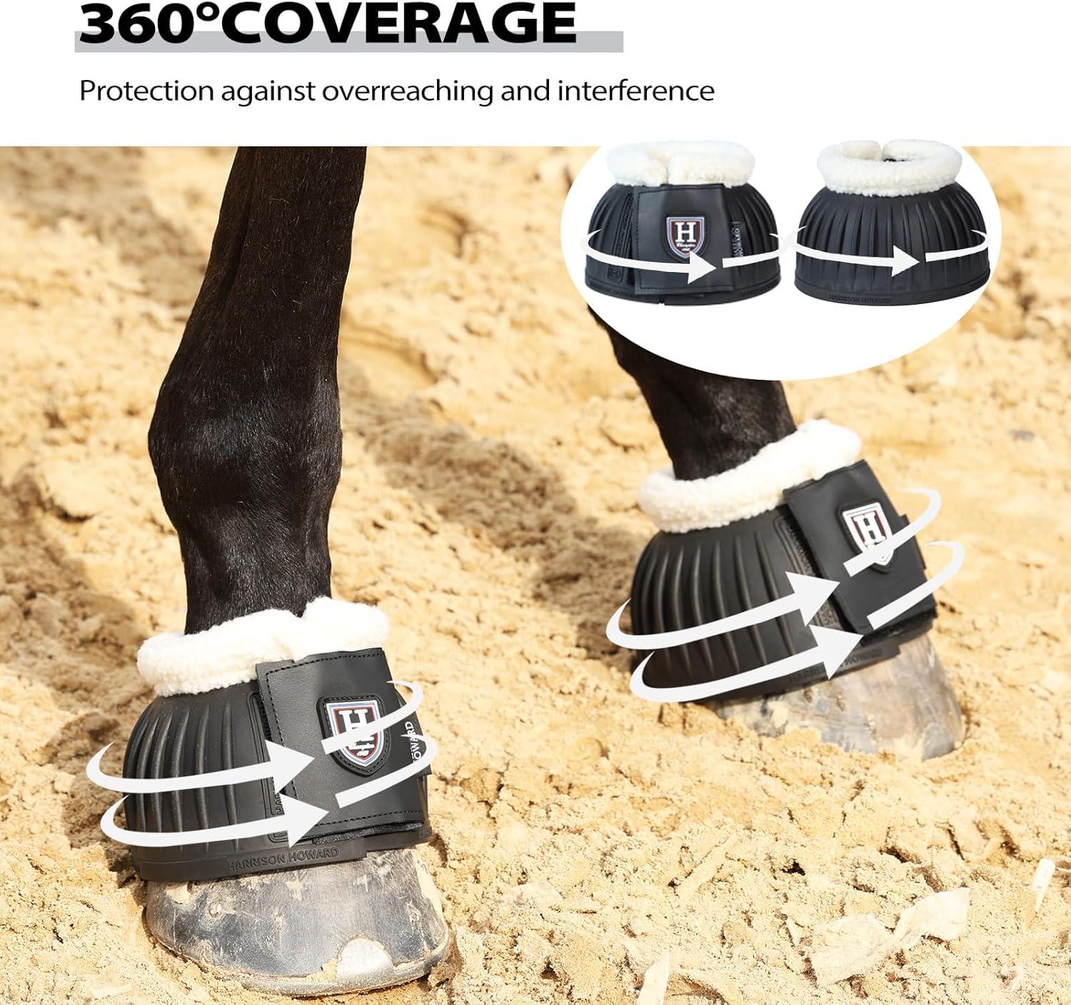 Harrison Howard Bell Boots for Horse Training Hoof Overreach Protection Fleece Lined Bell Boots(black)