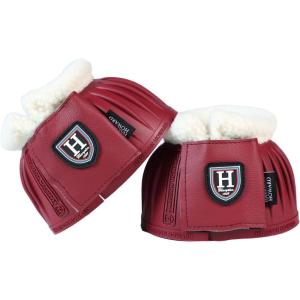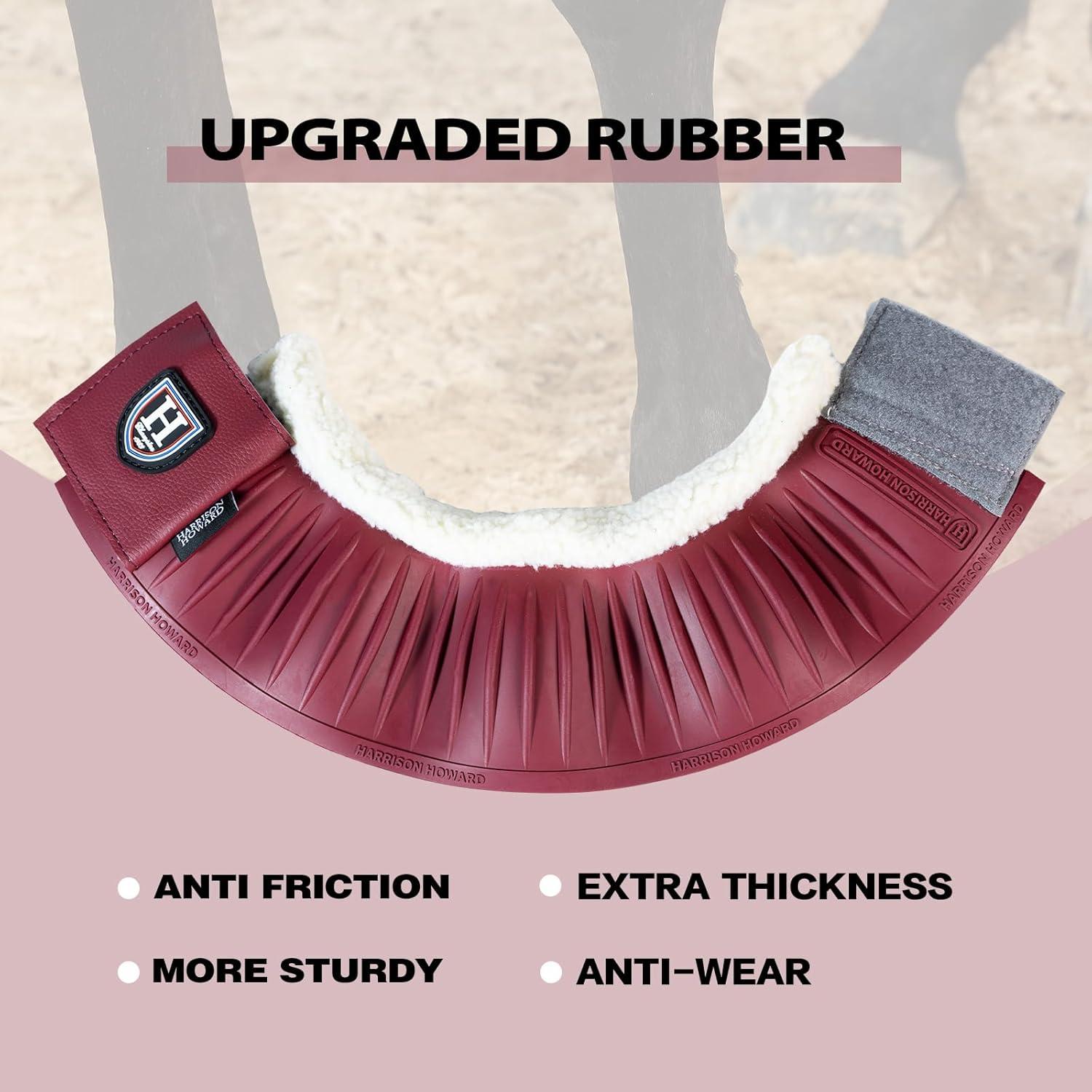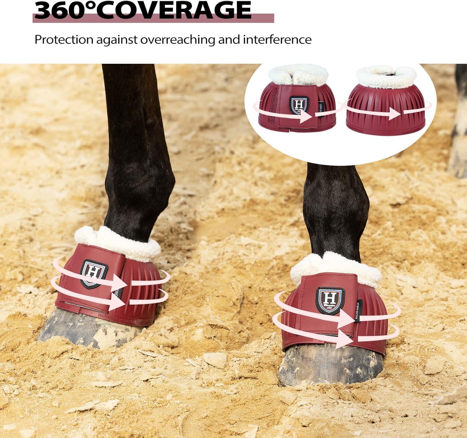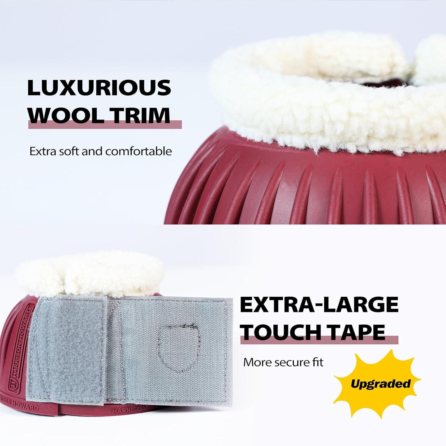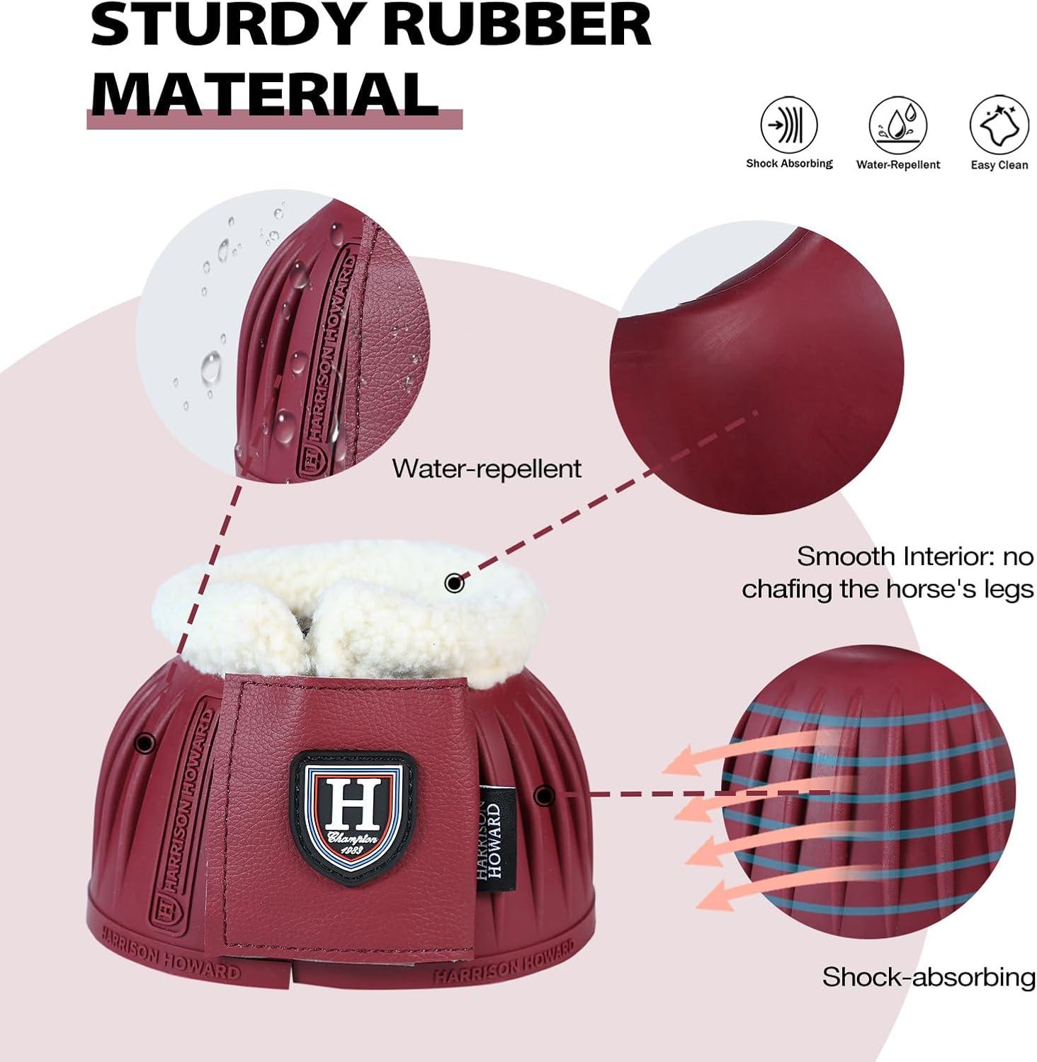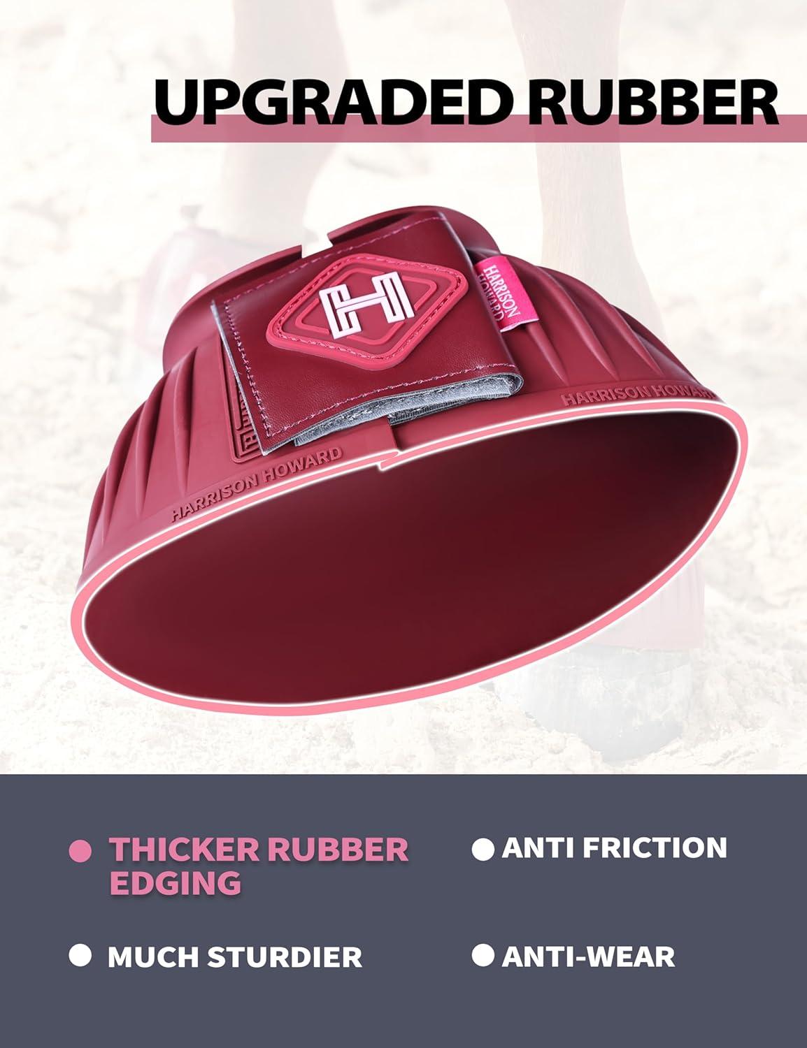 Harrison Howard Rubber Pull-on Bell Boots with Fleece Lining and Touch-Close Tapes Hoof Overreach Protection for Horses(Wine Red)