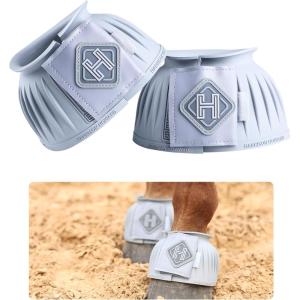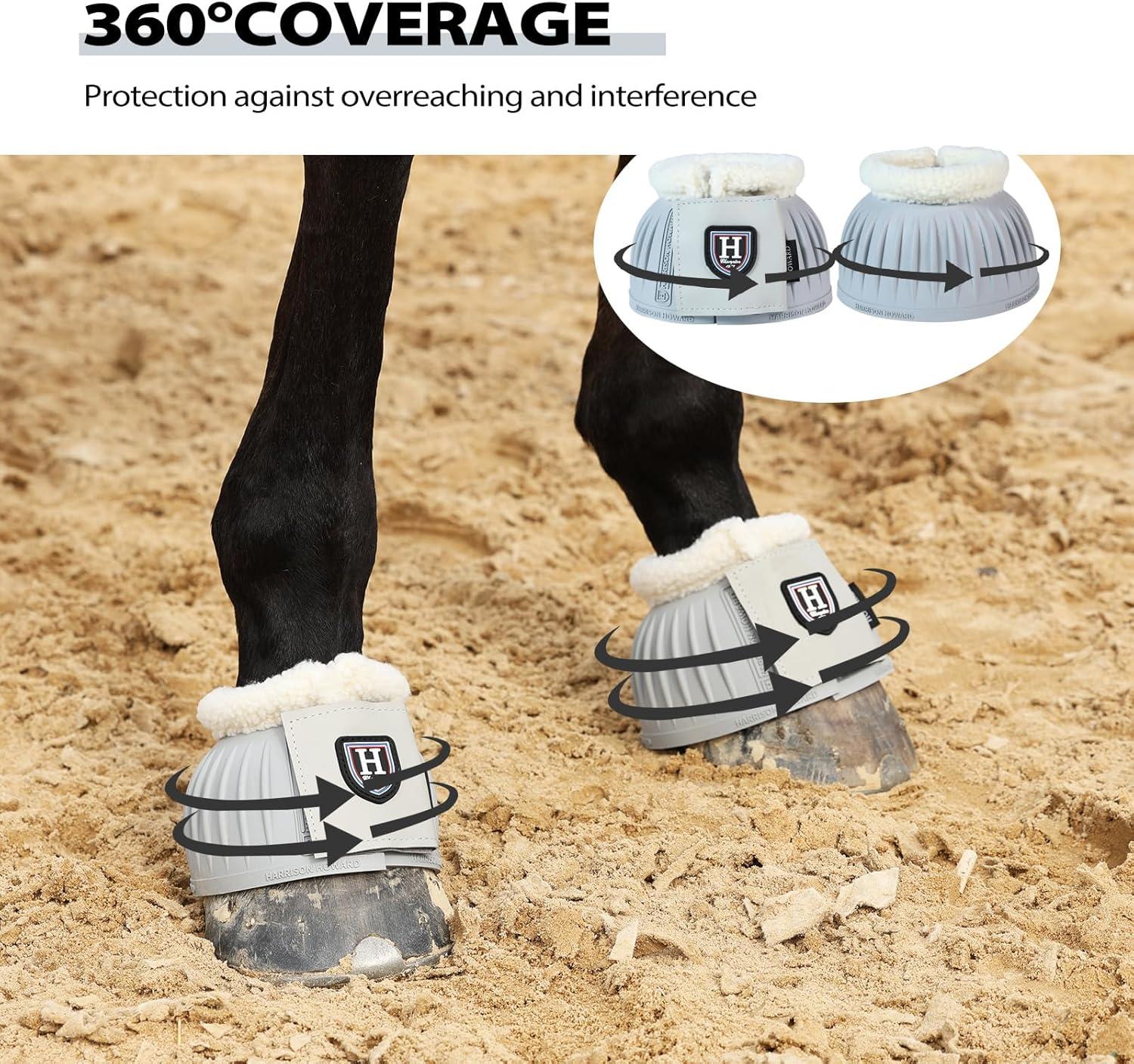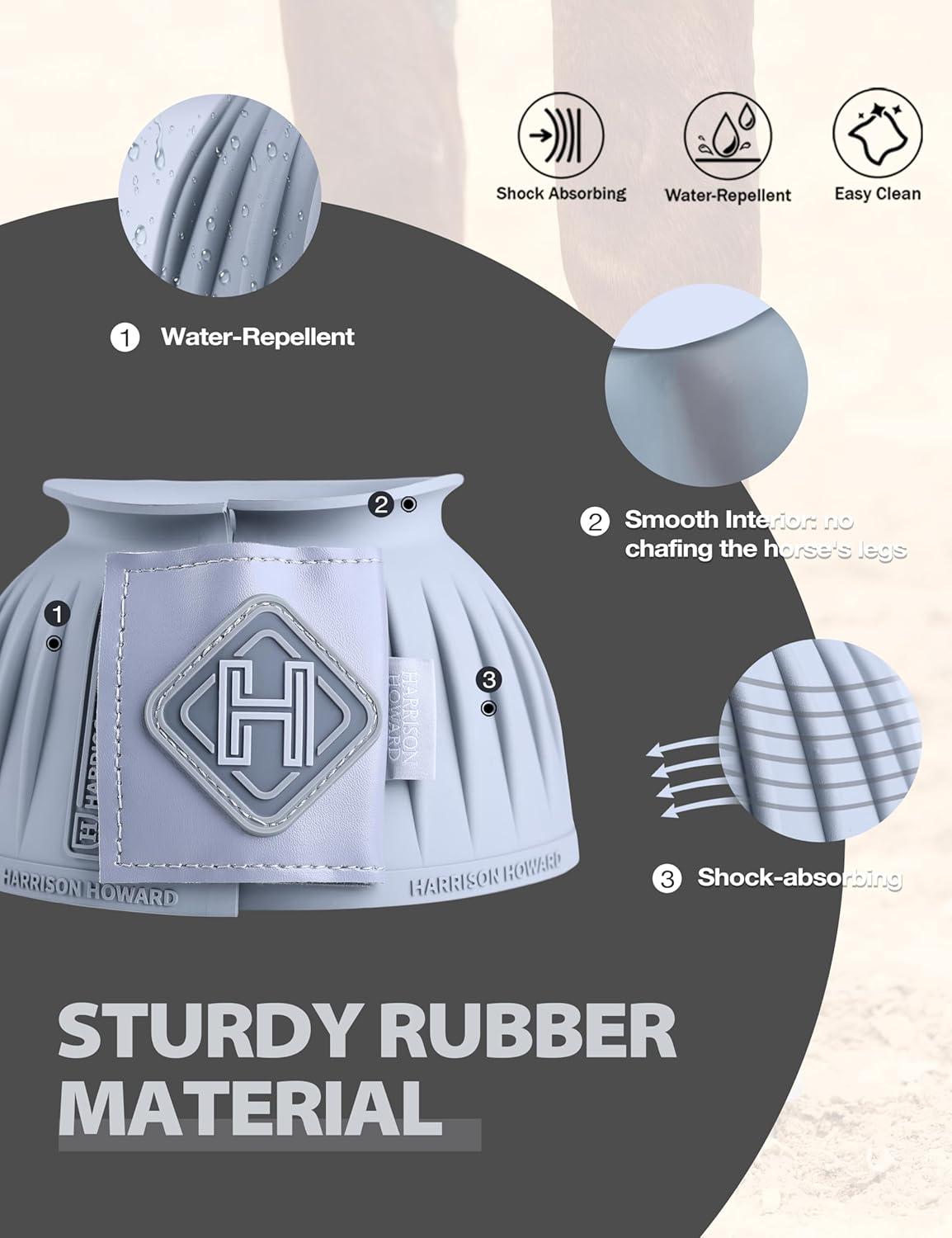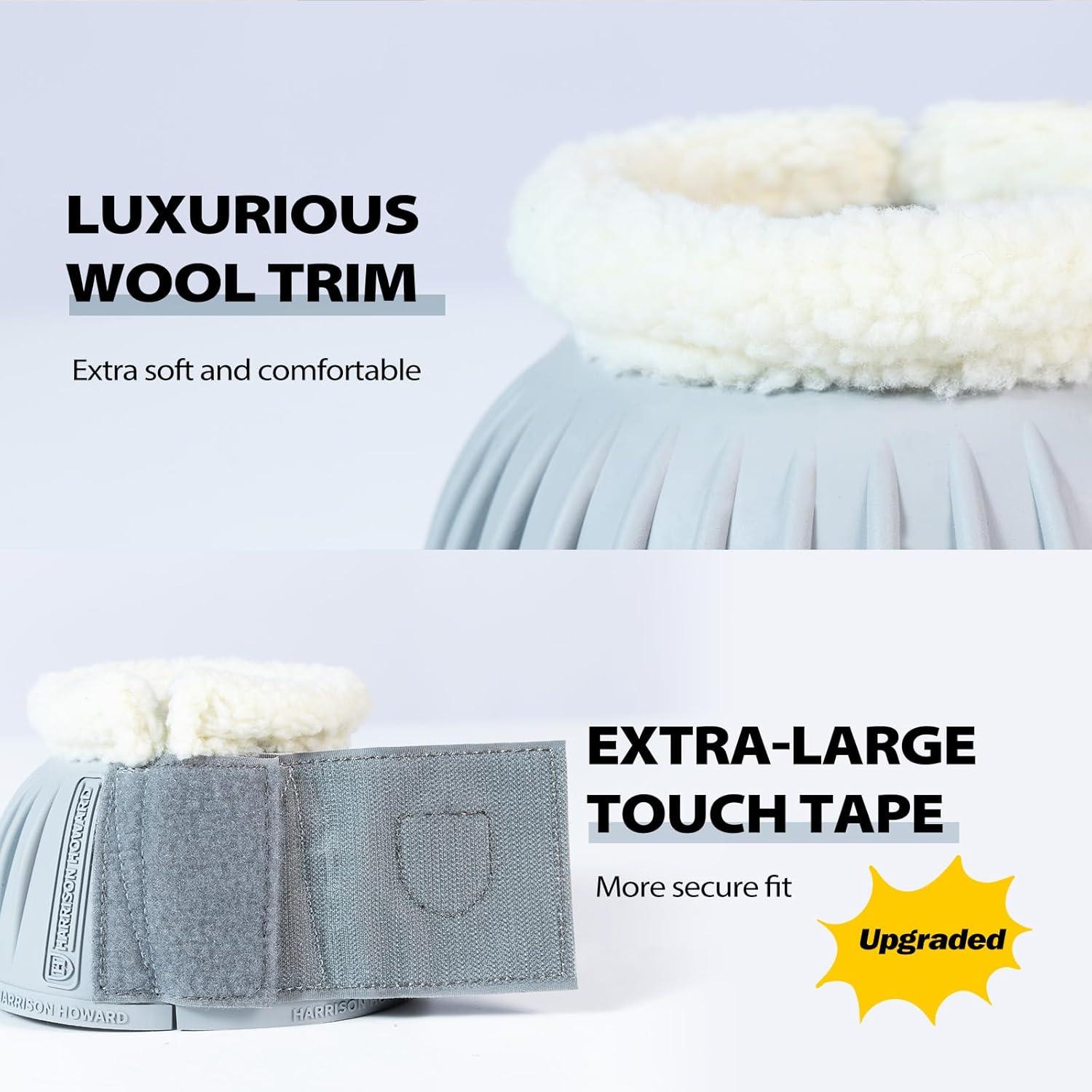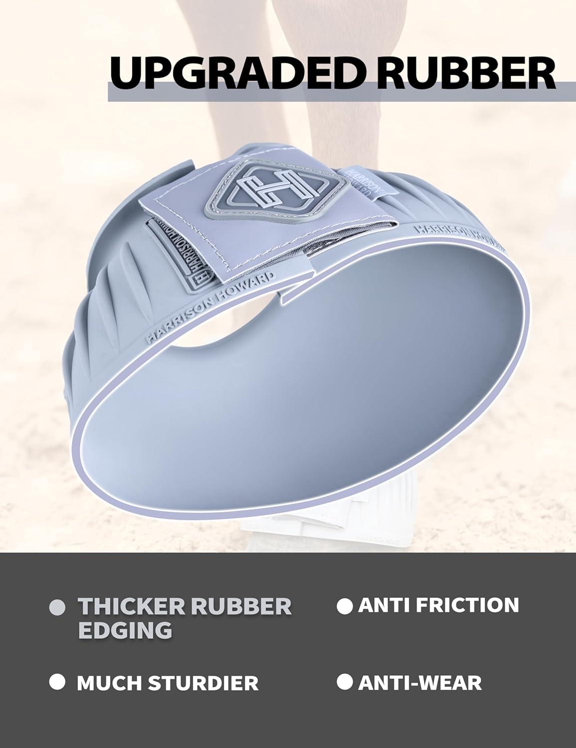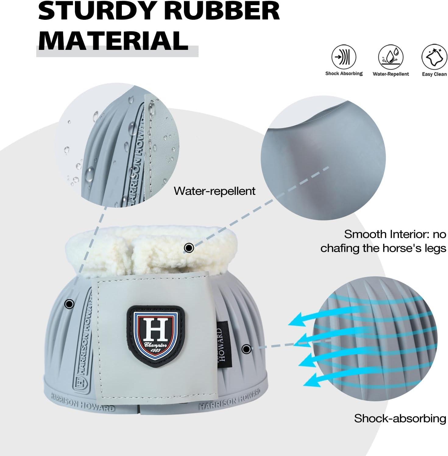 Harrison Howard Rubber Pull-on Bell Boots with Fleece Lining and Touch-Close Tapes Hoof Overreach Protection for Horses(Light Grey)