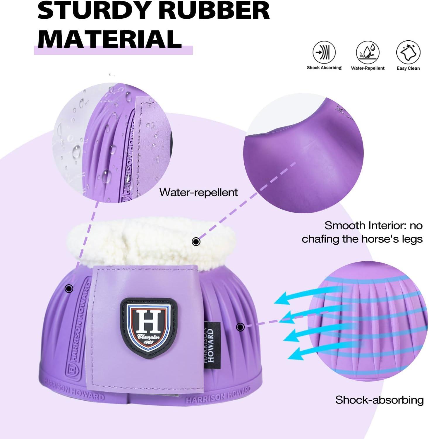 Harrison Howard Rubber Pull-on Bell Boots with Fleece Lining and Touch-Close Tapes Hoof Overreach Protection for Horses(Violet)