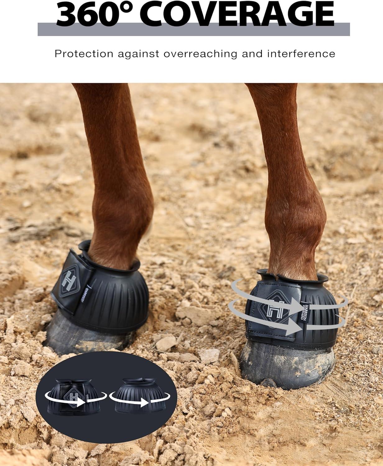 Harrison Howard Horse Bell Boots Overreach Bell Boots No-Turn Bell Boots for Horse-Durable Protective Hoof Boot(Black)