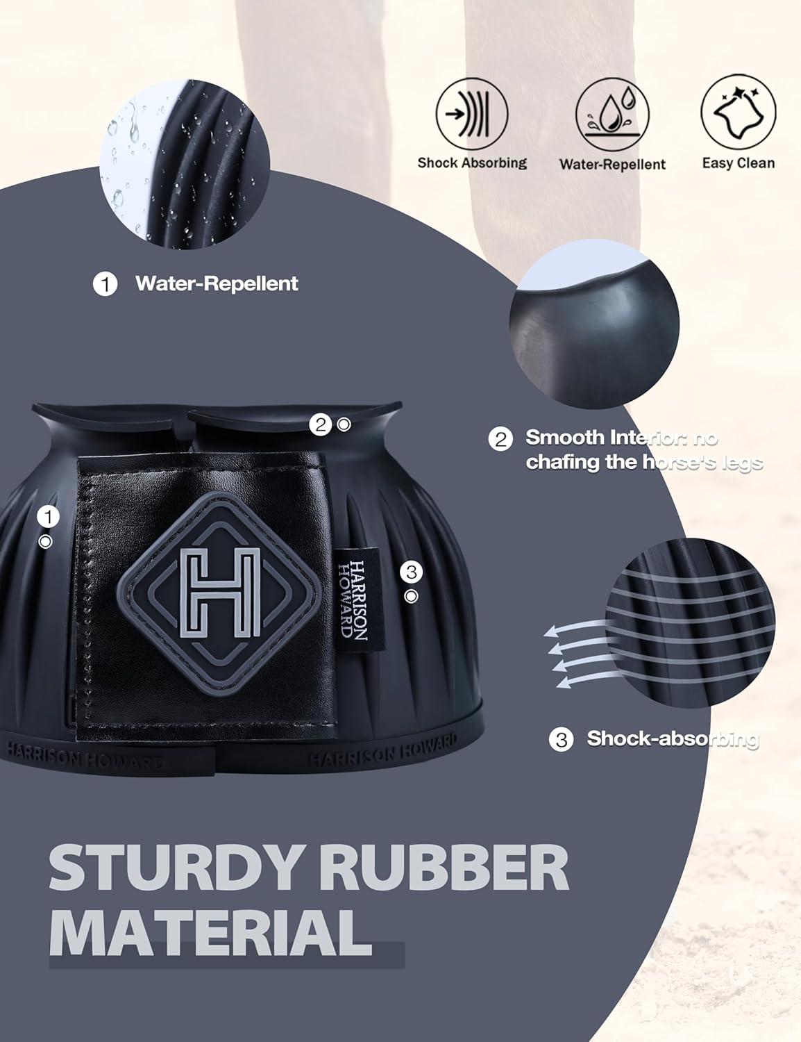 Harrison Howard Horse Bell Boots Equine Ballistic Hoof Overreach Bell Boot for Horse Sold as Pair(Mars Black)
