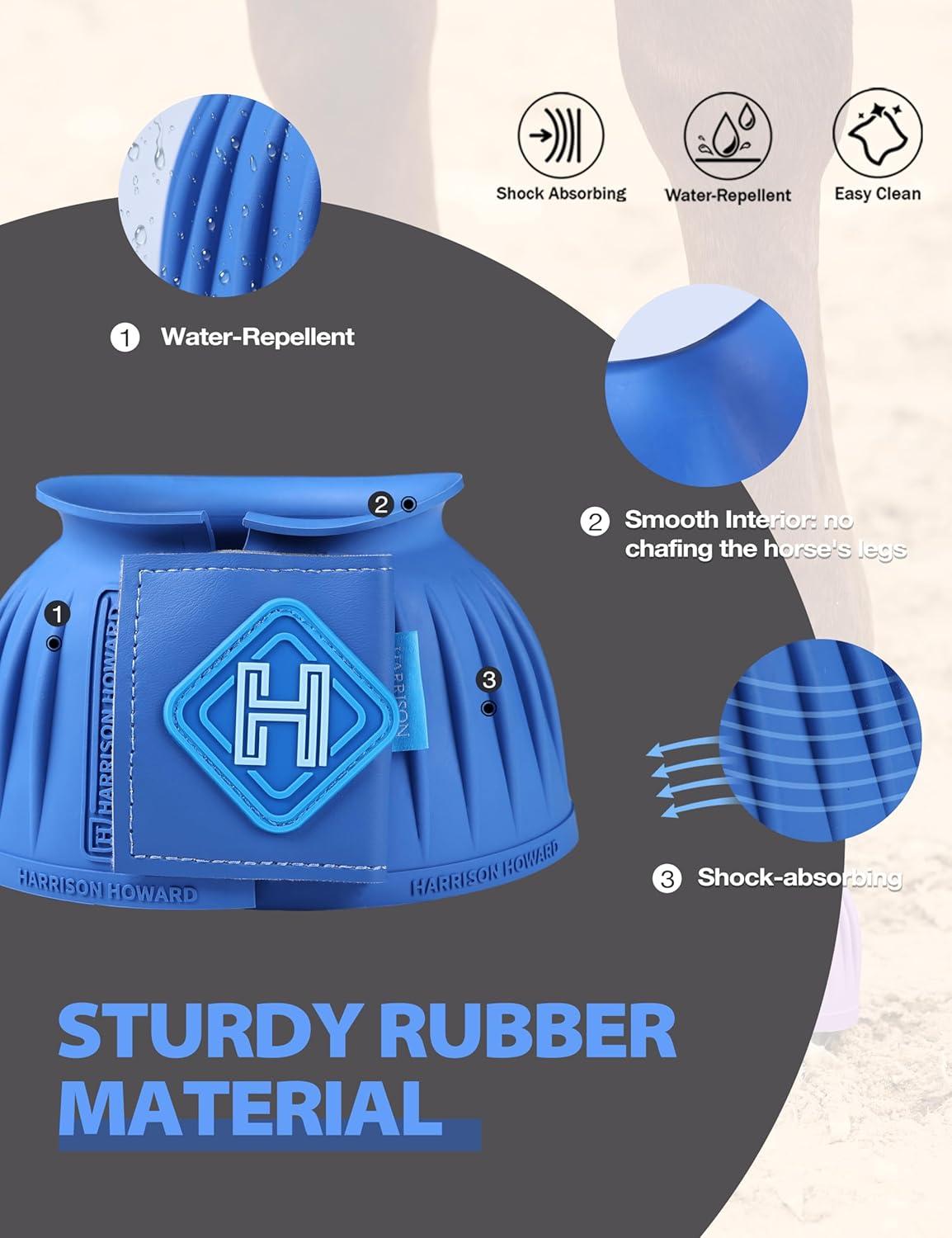 Harrison Howard Horse Bell Boots Overreach Bell Boots No-Turn Bell Boots for Horse-Durable Protective Hoof Boot(Blue)
