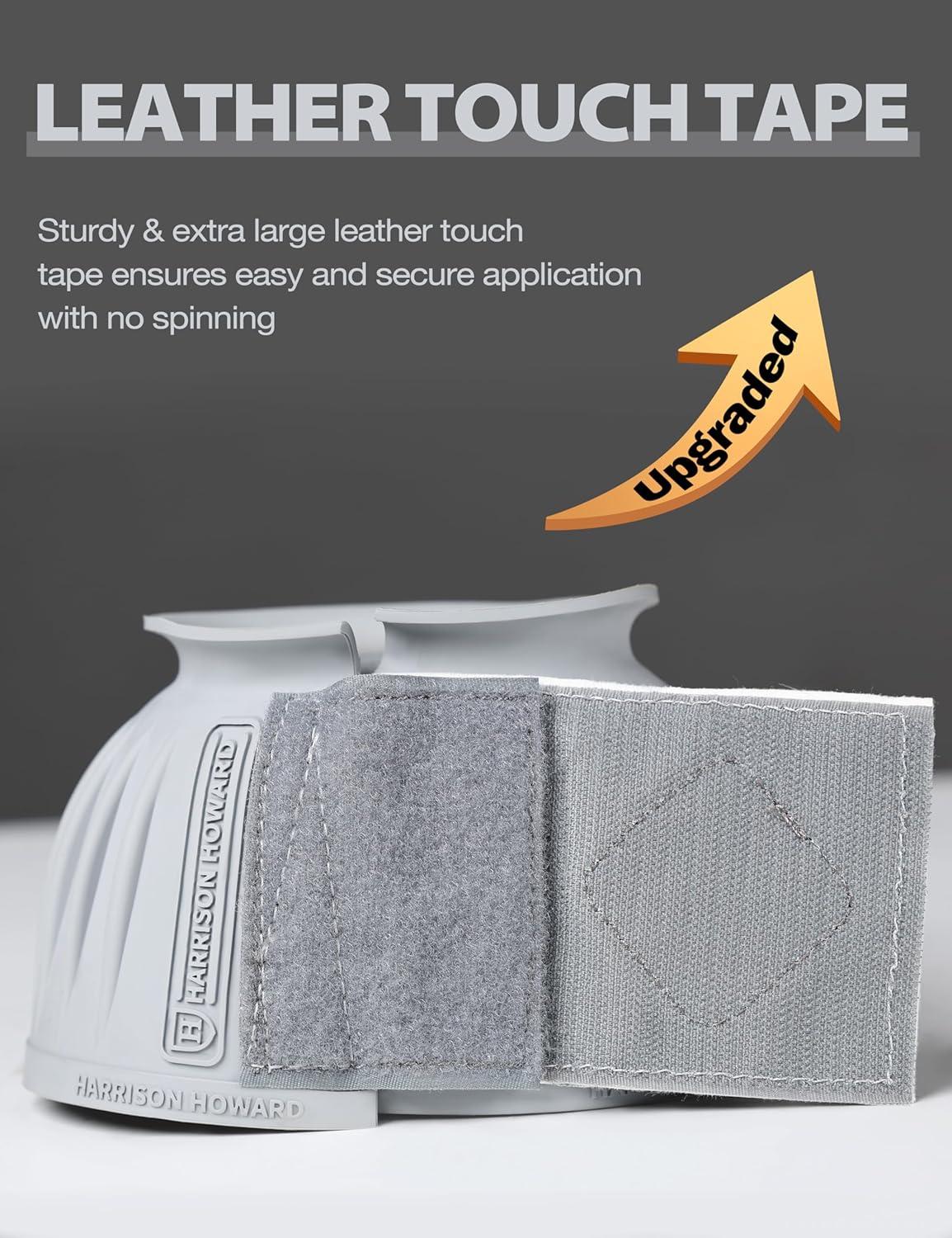 Harrison Howard Rubber Bell Boots Leather Touch-Close Overreach Boots Hoof Protection for Horses Sold in Pairs Light Grey L(Light Grey)