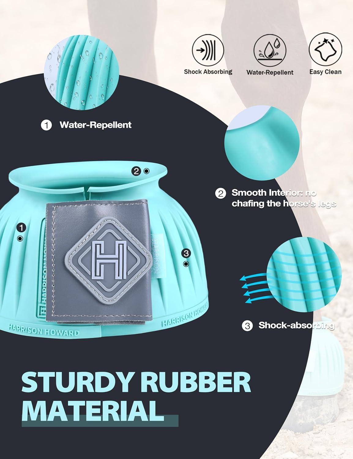 Harrison Howard Horse Bell Boots Overreach Bell Boots No-Turn Bell Boots for Horse-Durable Protective Hoof Boot(Teal)