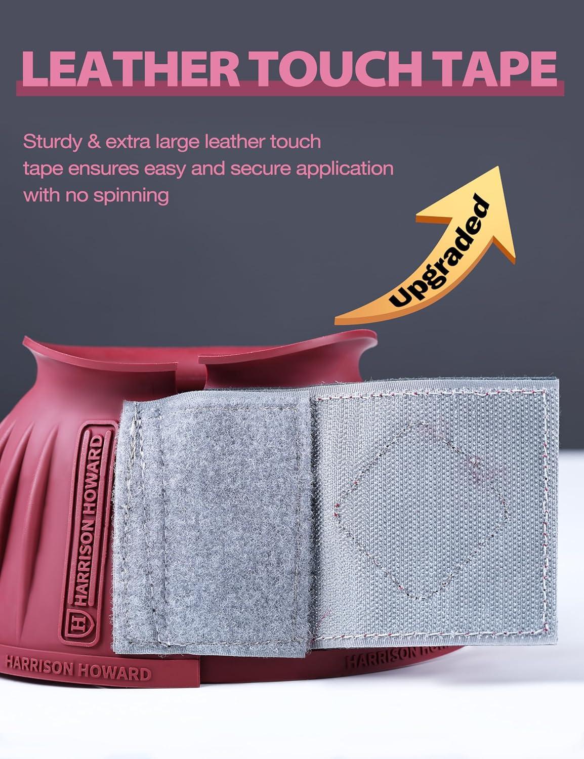Harrison Howard Rubber Pull-on Bell Boots with Fleece Lining and Extra-Large Leather Touch-Close Tape Hoof Overreach Protection for Horses Sold in Pairs Light Grey L(Wine Red)