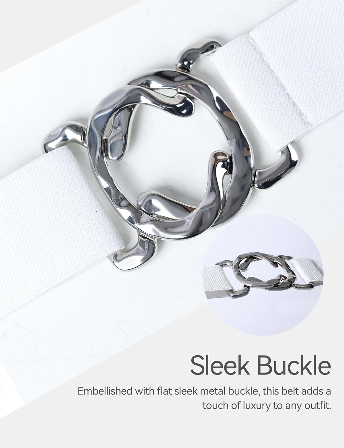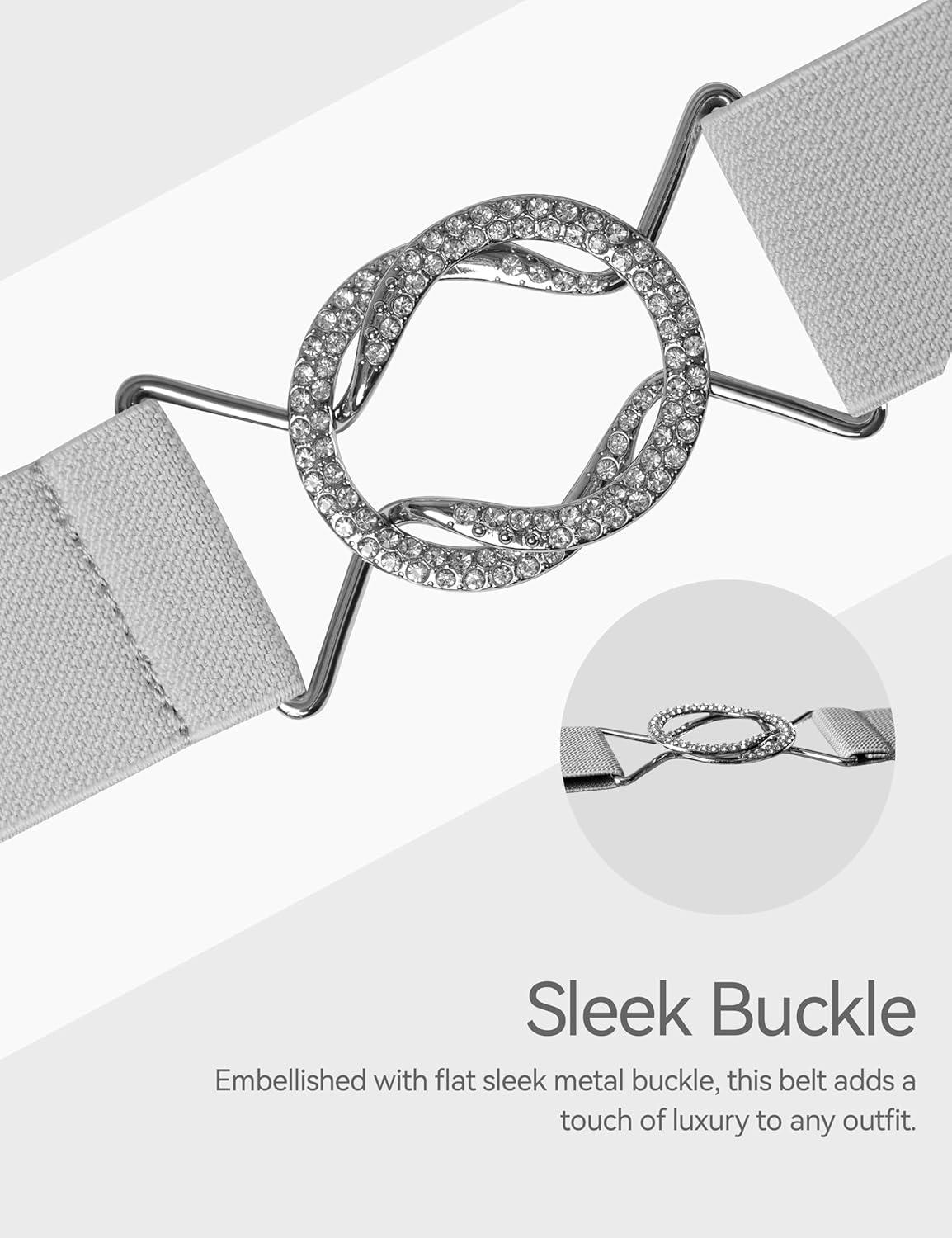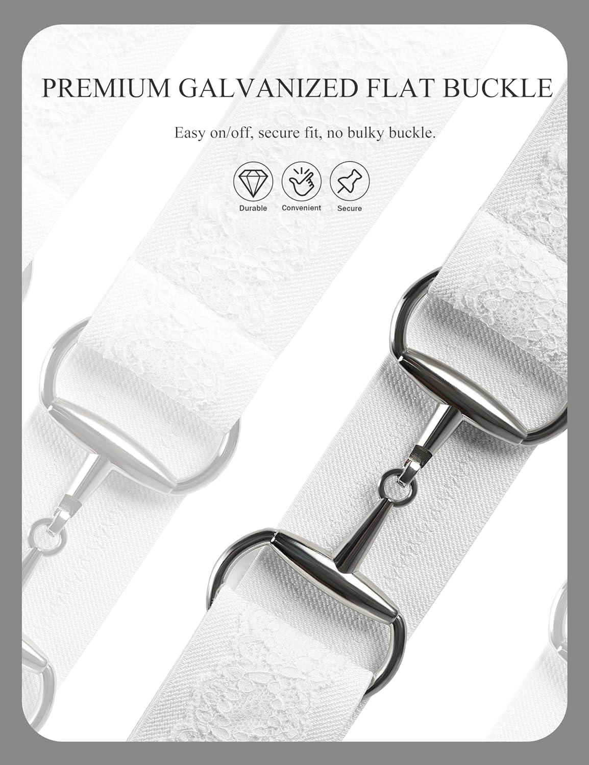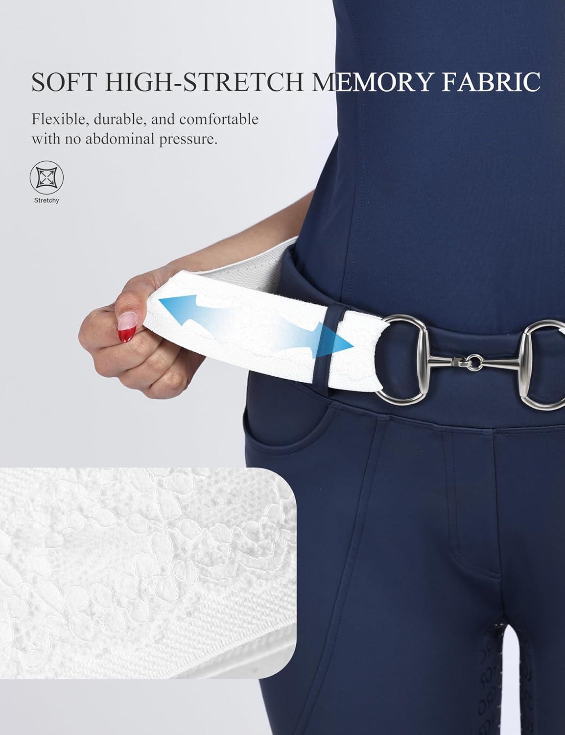 Harrison Howard Elastic Horse Riding Belt with Flat Buckle Stretchable for Horseback Riding Elastic Belt for Women(Matte Edge White)