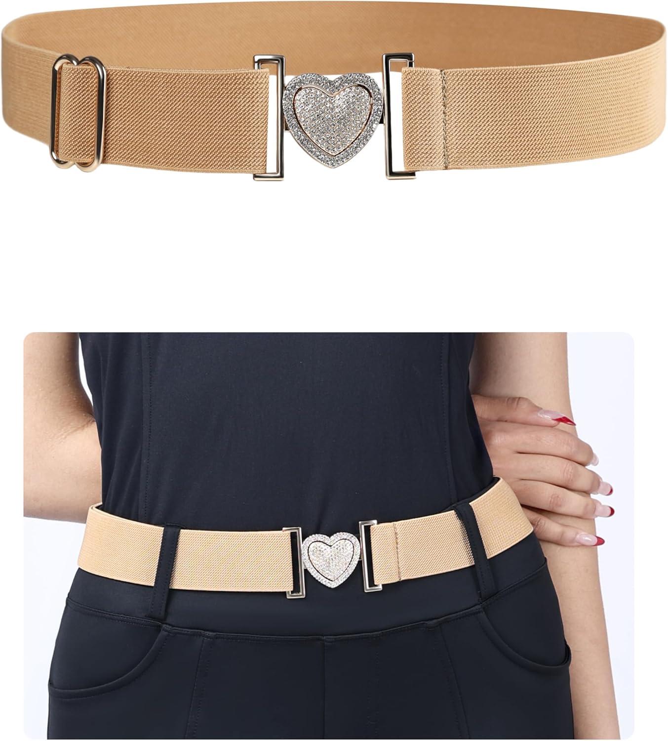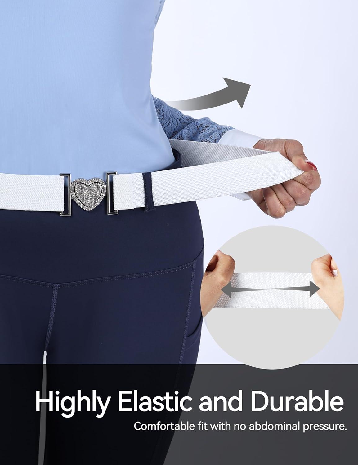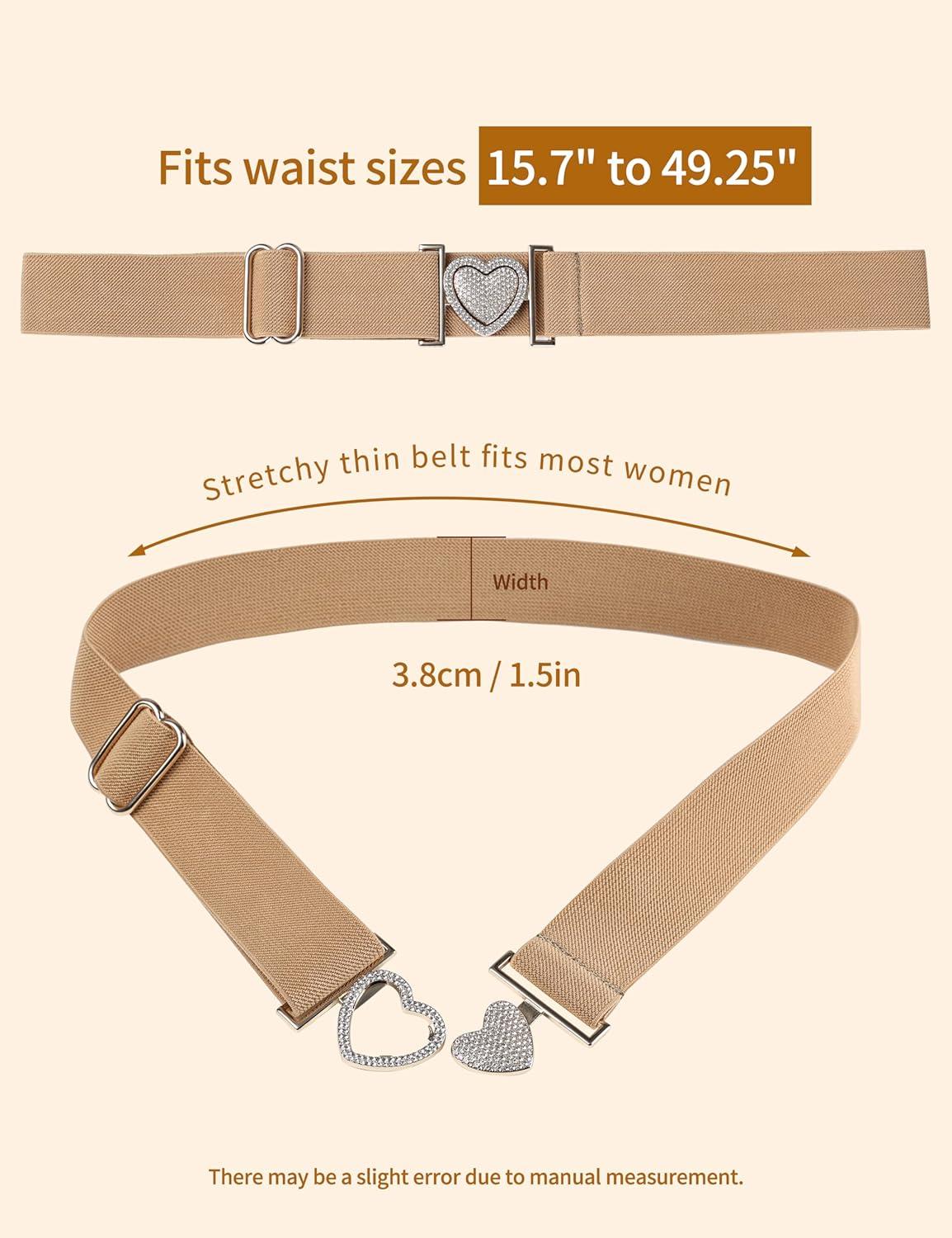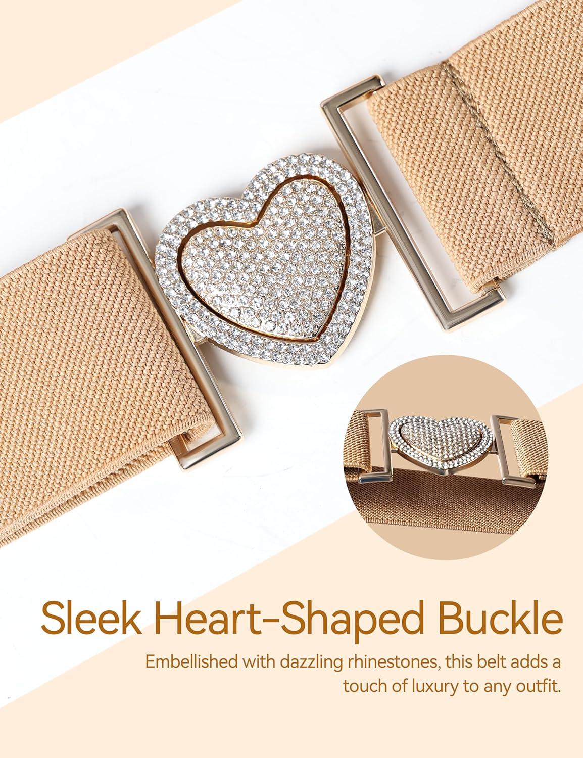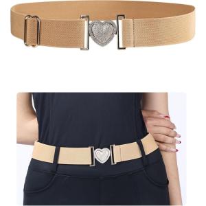Harrison Howard Elastic Horse Riding Belt with Flat Buckle Stretchable for Horseback Riding Elastic Belt for Women(Glamour Heart Beige)
