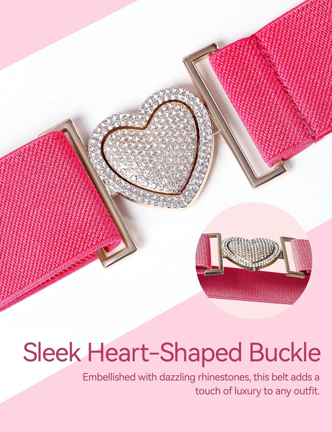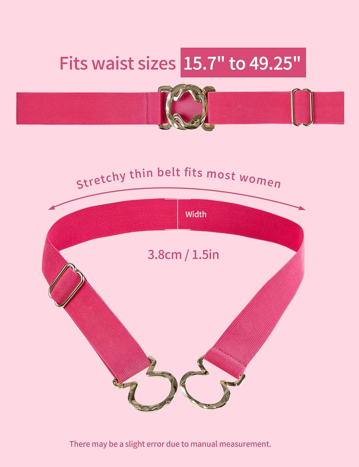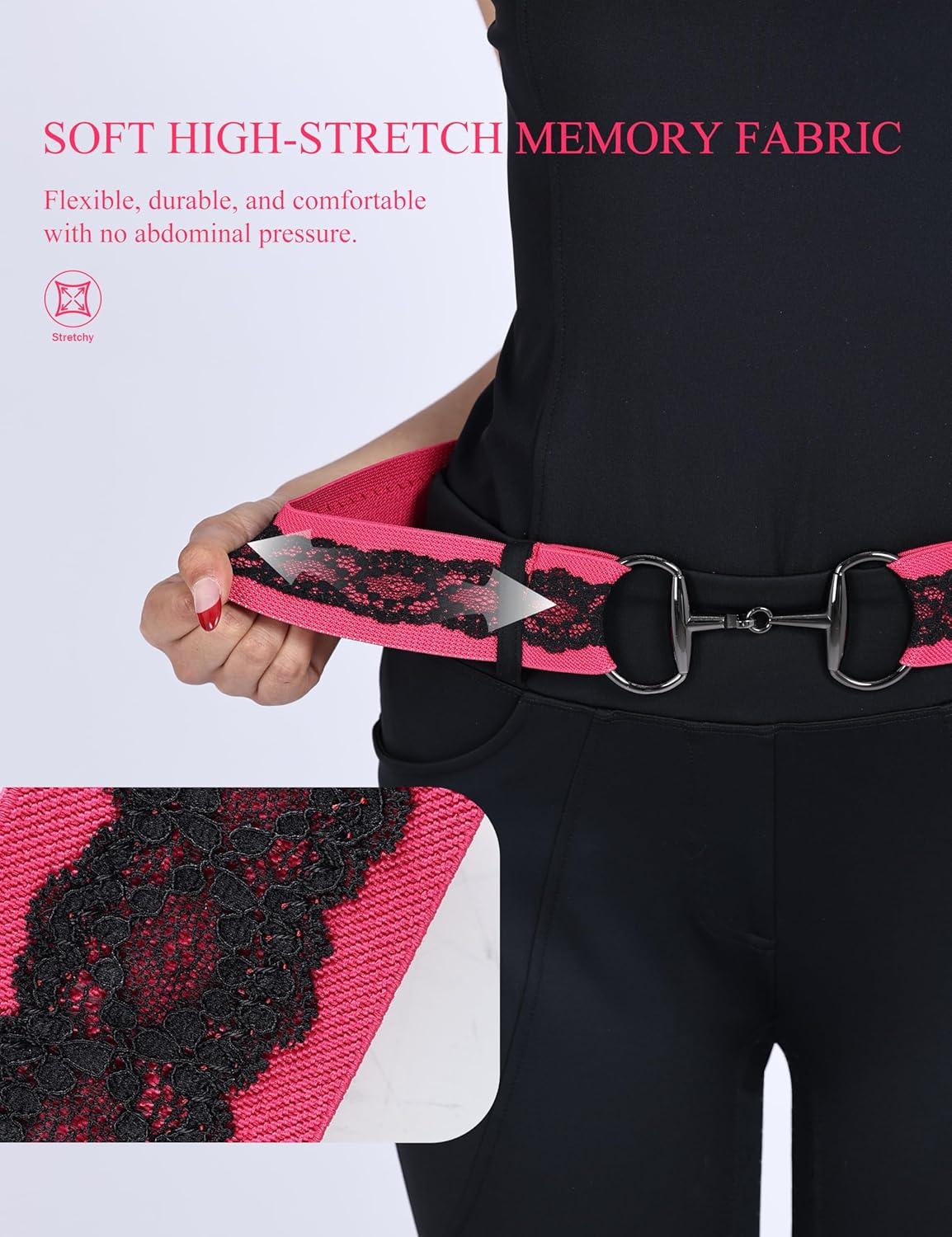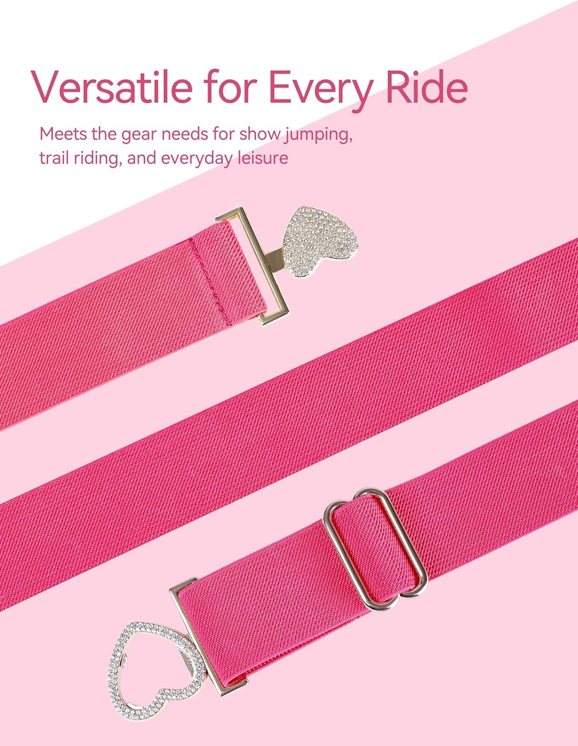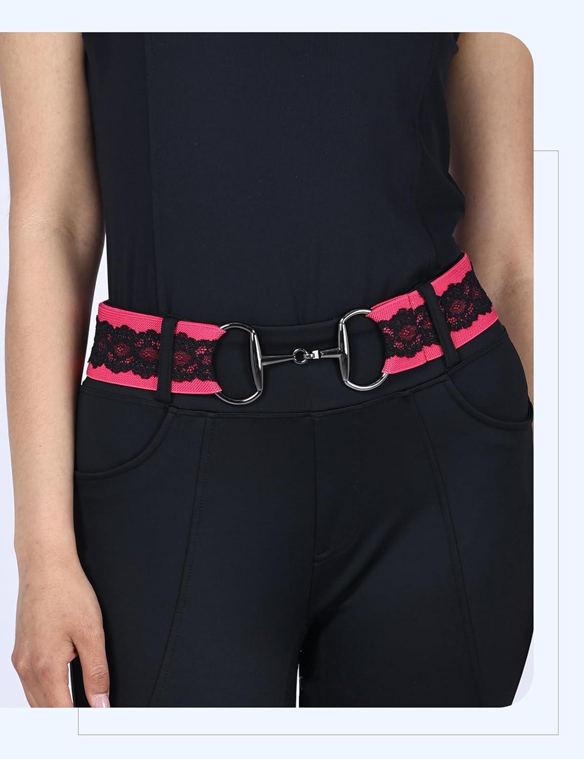 Harrison Howard Elastic Horse Riding Belt with Flat Buckle Stretchable for Horseback Riding Elastic Belt for Women(Glamour Heart Magenta)