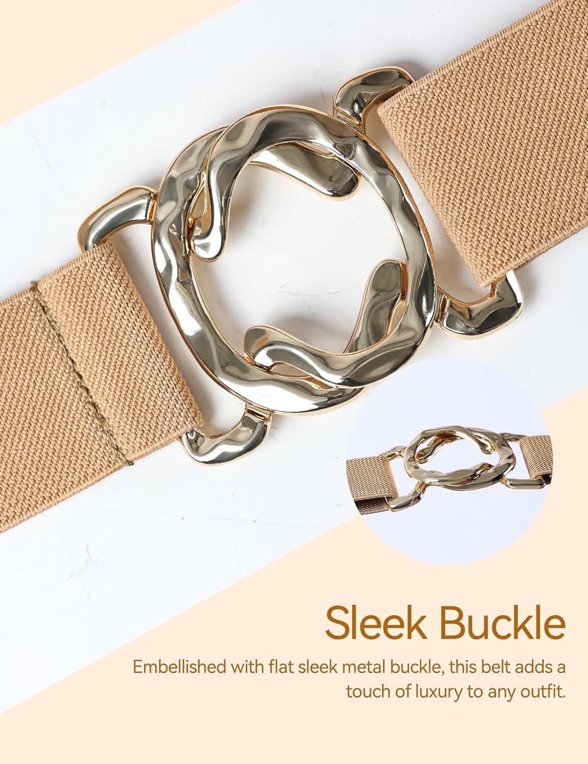 Harrison Howard Elastic Horse Riding Belt with Flat Buckle Stretchable for Horseback Riding Elastic Belt for Women(Matte Edge Beige)