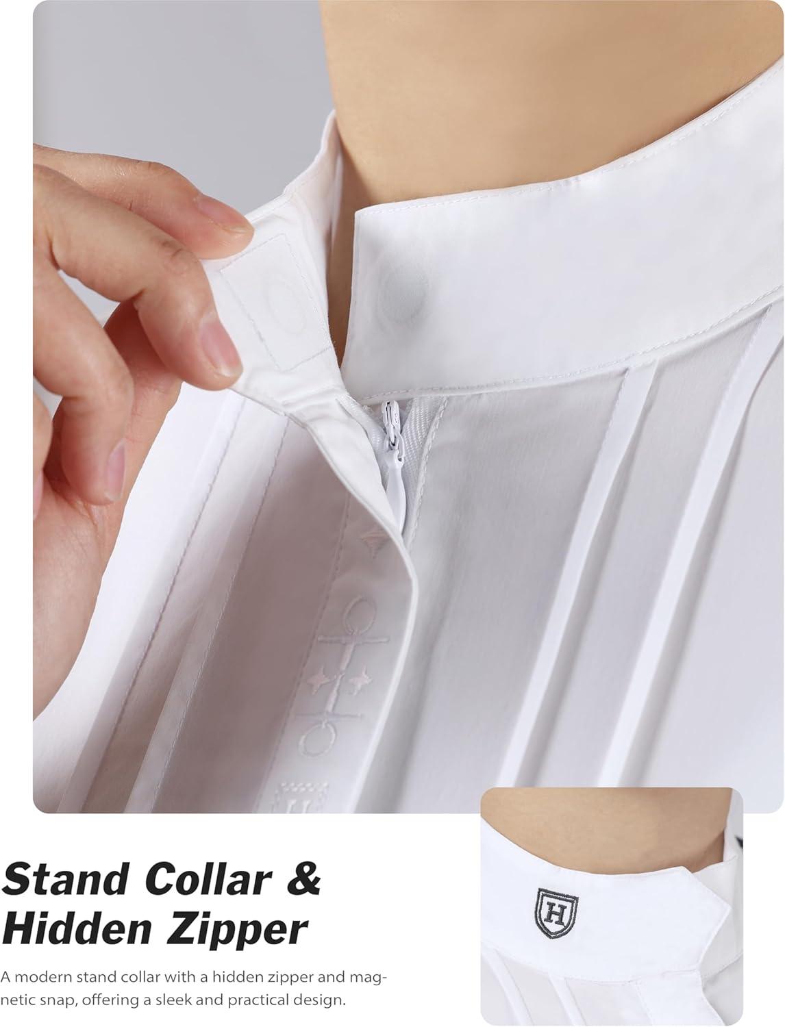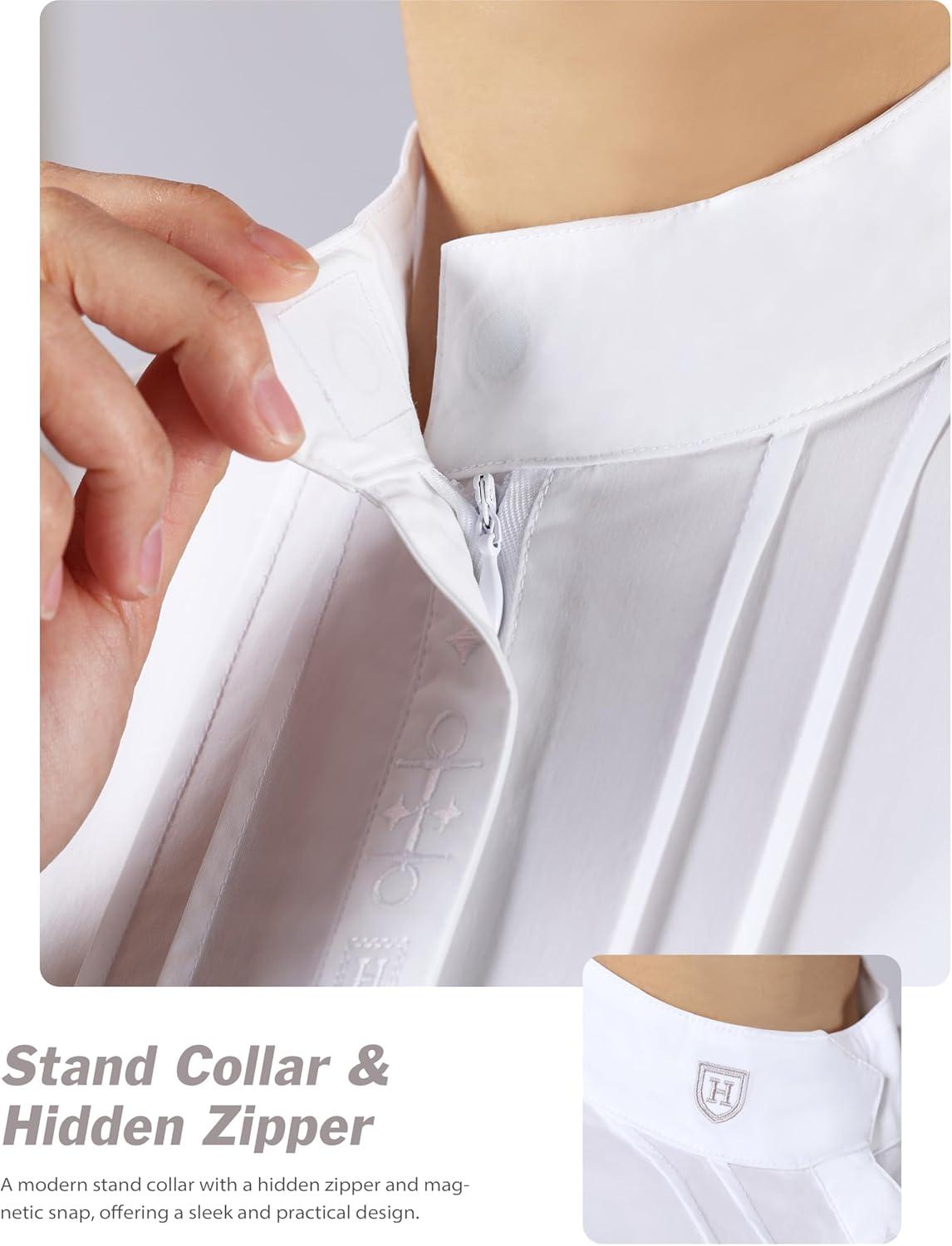 Harrison Howard Equestrian Pleated Bib Show Shirt Rider Top Horse Riding Long Sleeve with Embroidery(White)