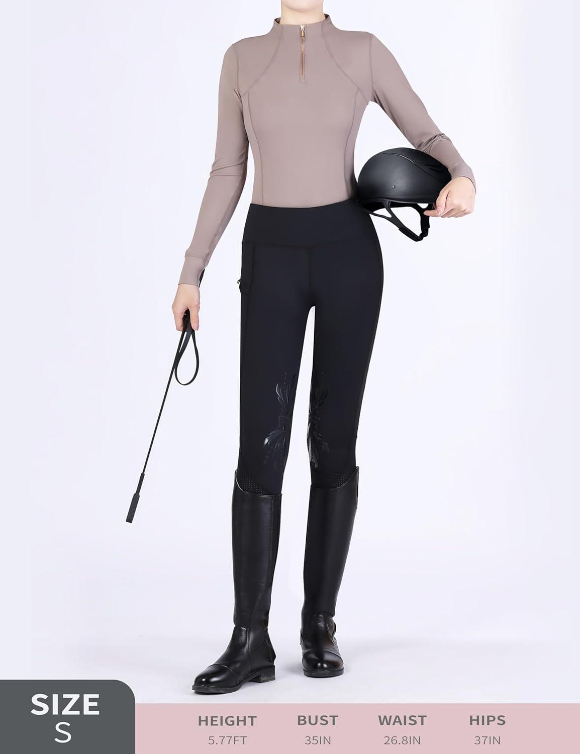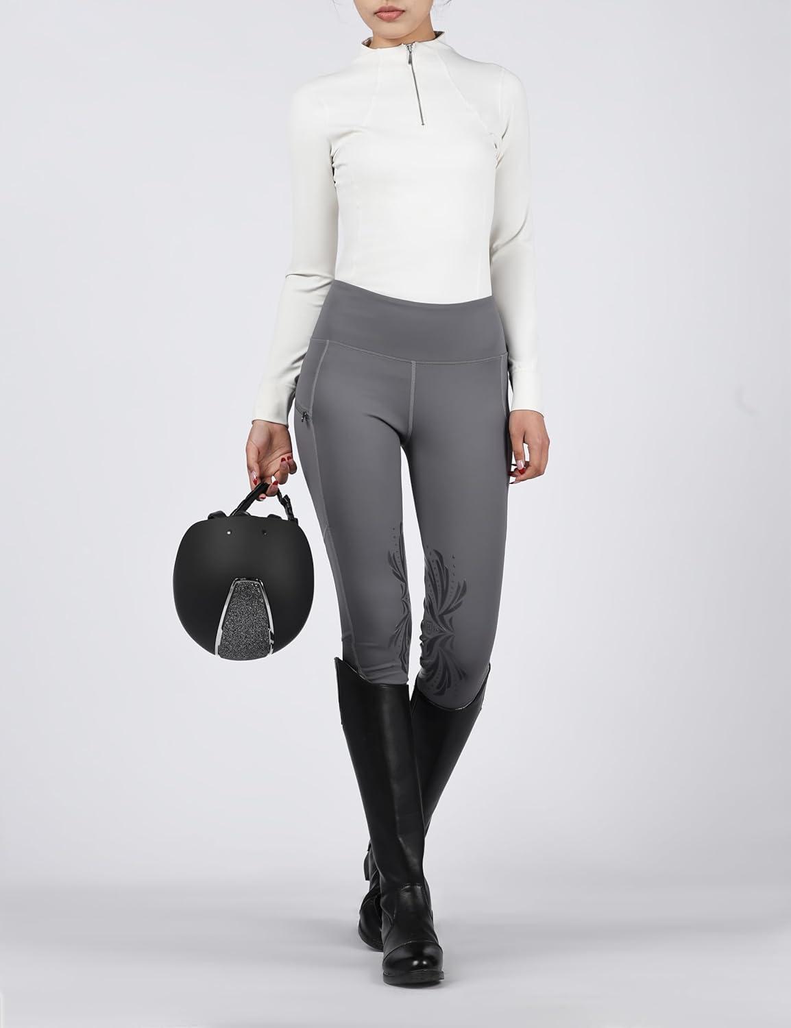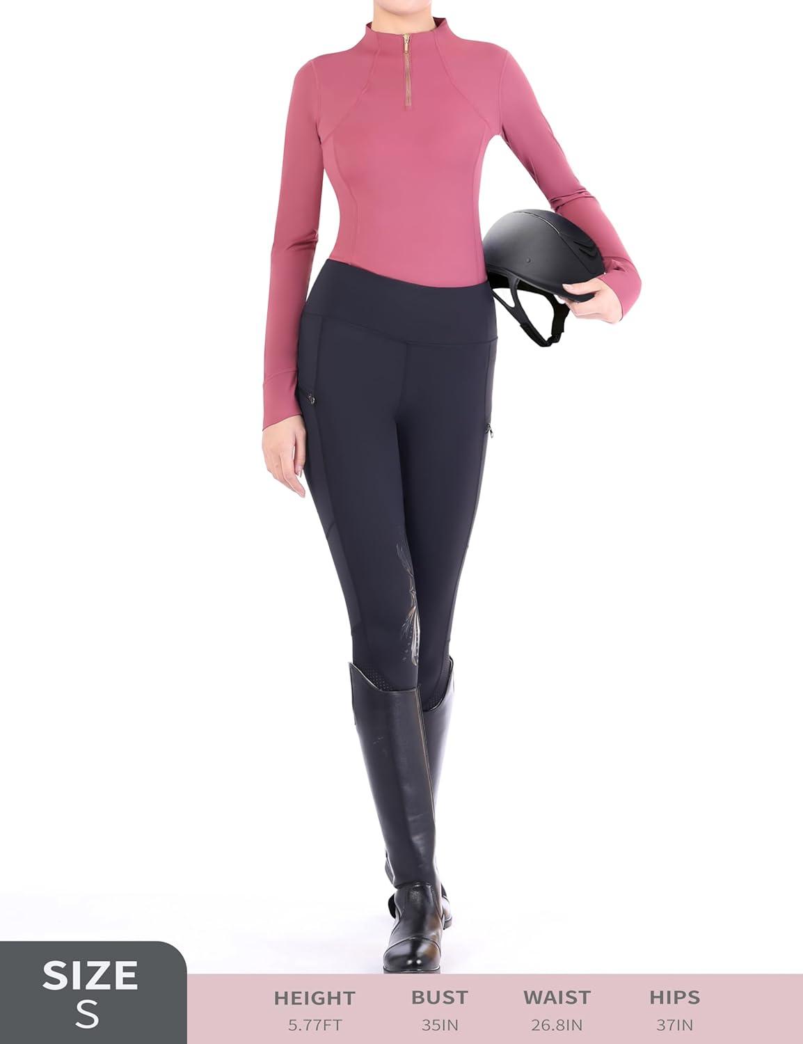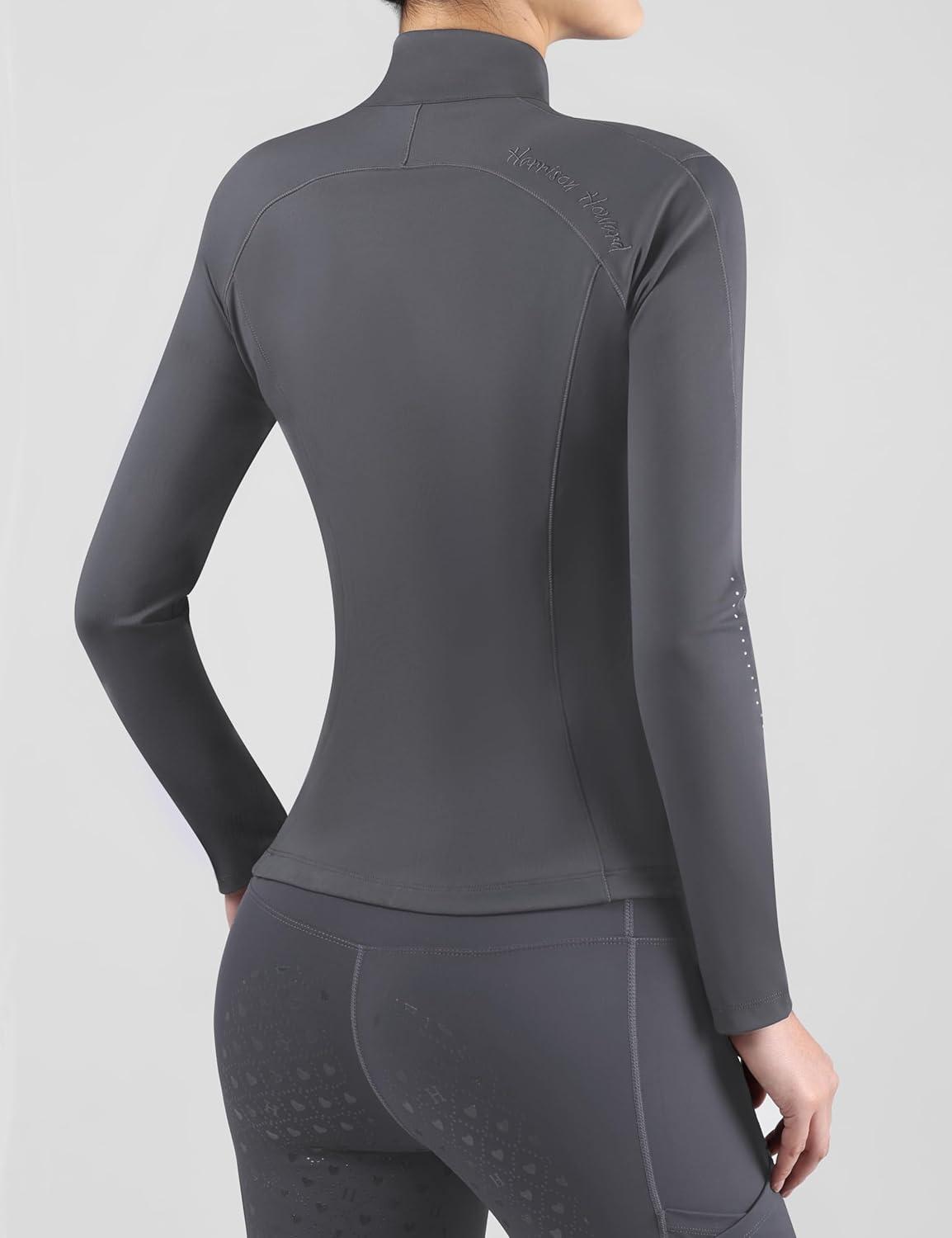 Harrison Howard Women’s Horse Riding Shirt – Long Sleeve Equestrian Shirts with 1/4 Zip(Comet)