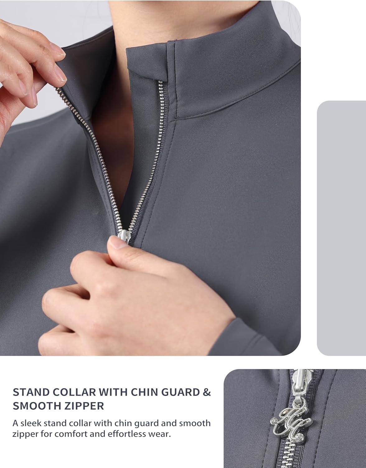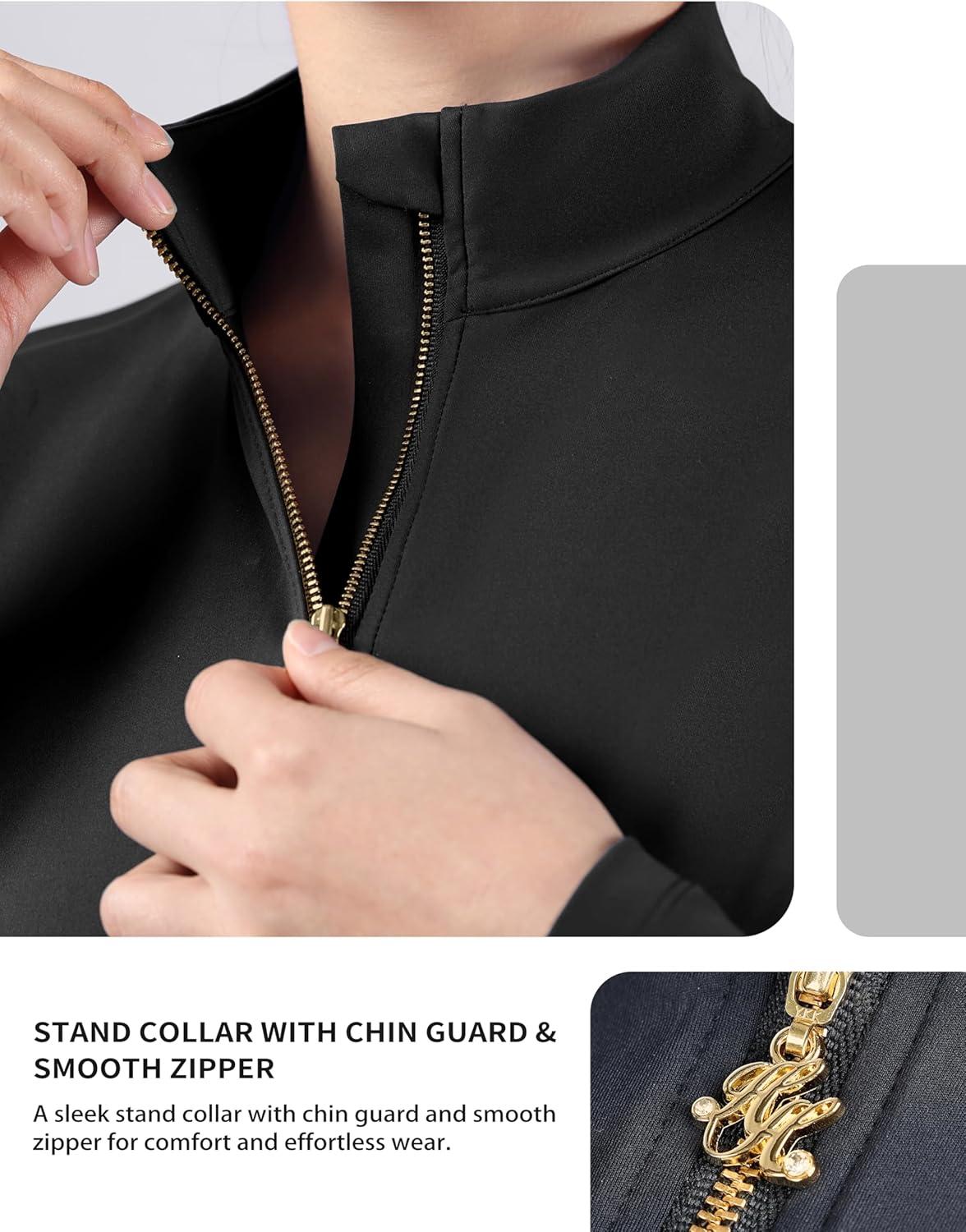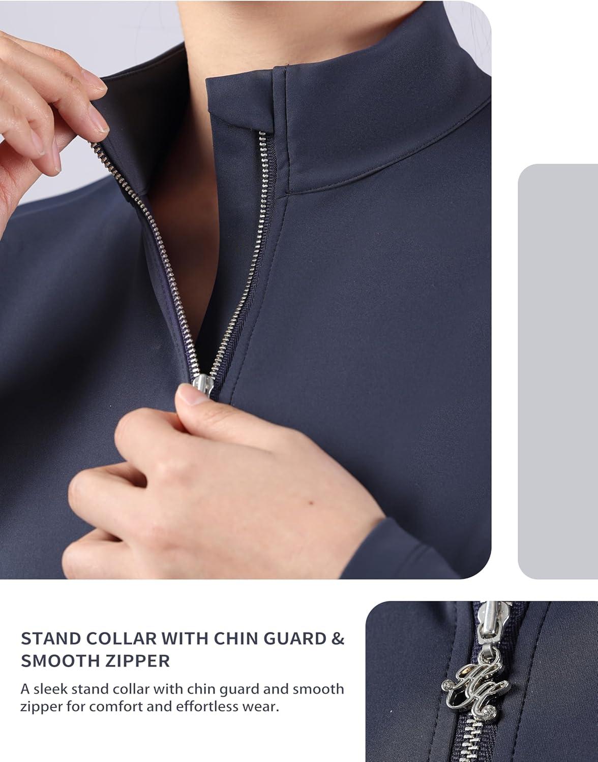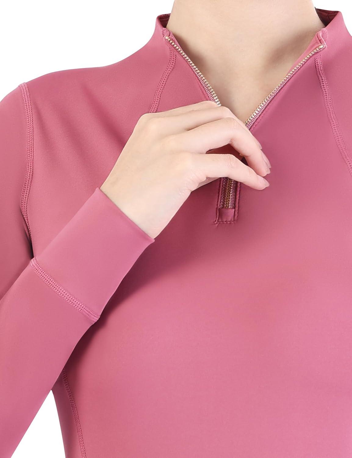 Harrison Howard Women’s Horse Riding Shirt – Long Sleeve Equestrian Shirts with 1/4 Zip(Comet)