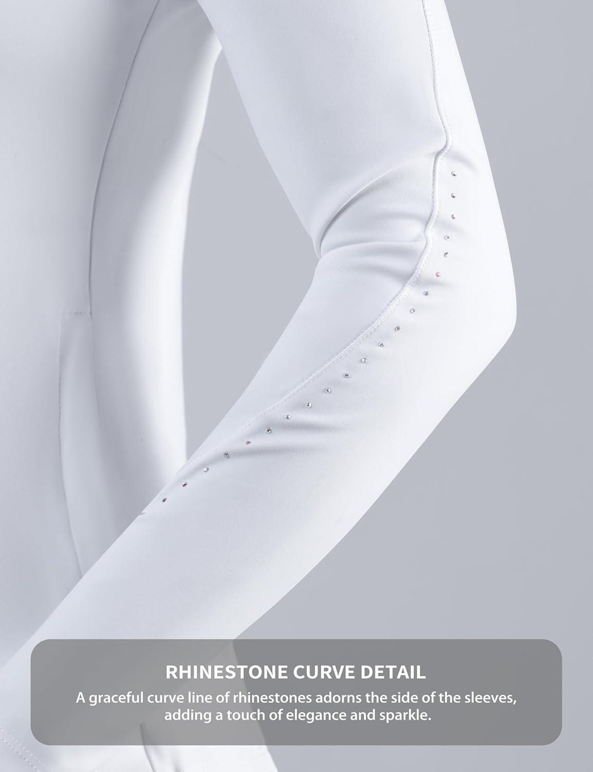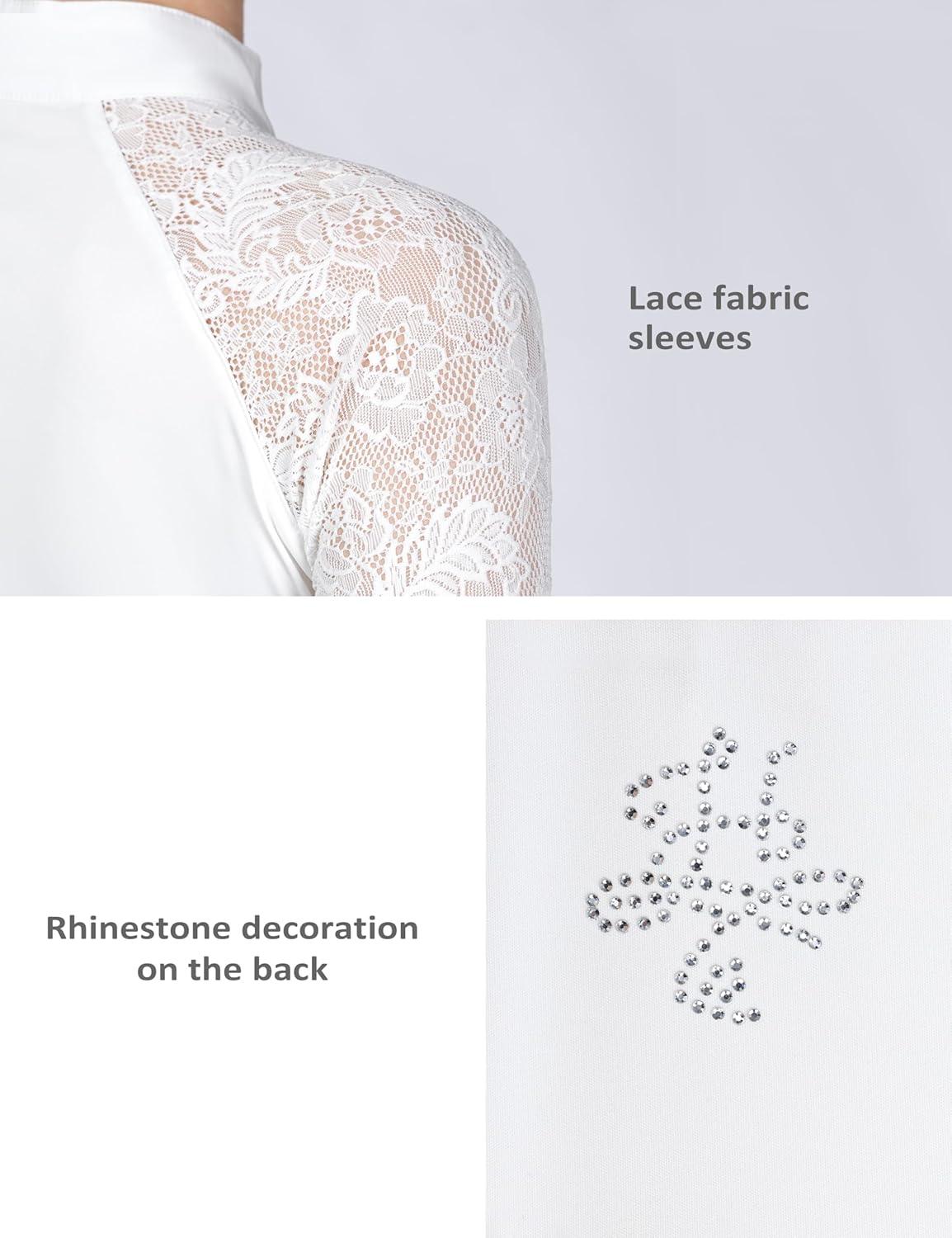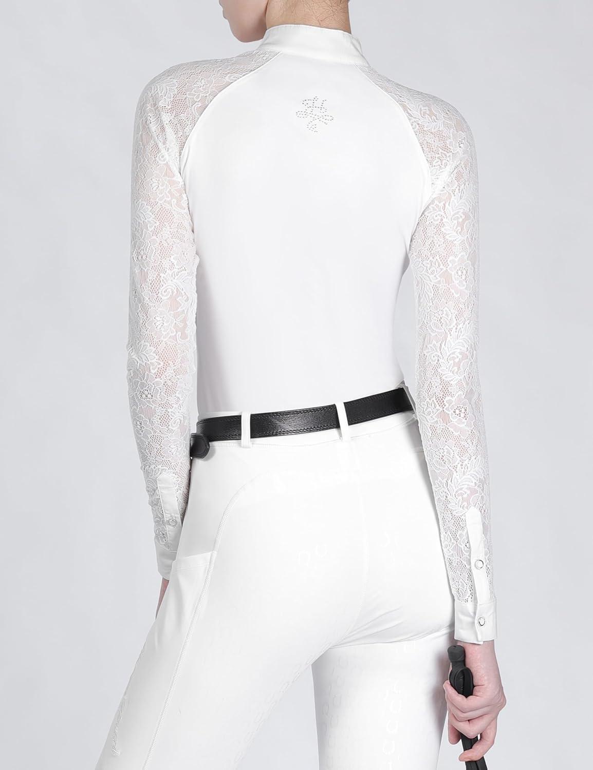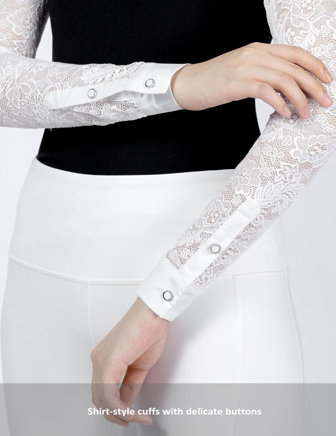 Harrison Howard Women’s Slim Fit Long Sleeve Equestrian Show Shirt with Lace Sleeves Elegant Female Lace Top(White)