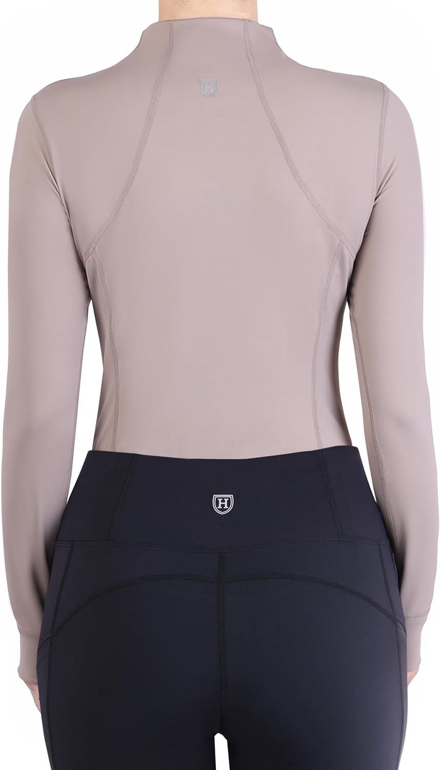 Harrison Howard Women’s Horse Riding Shirt – Long Sleeve Equestrian Shirts with 1/4 Zip(Light Apricot)