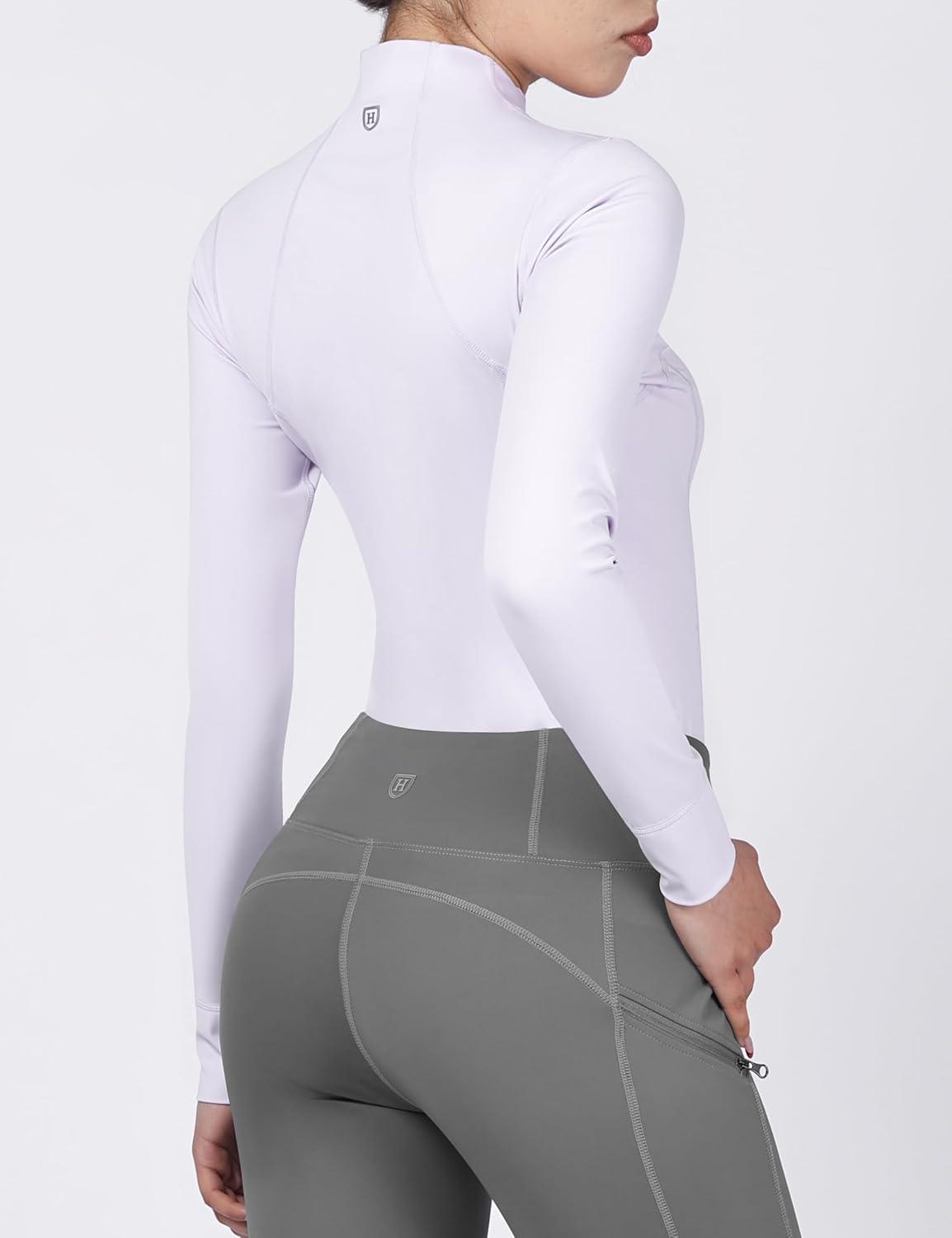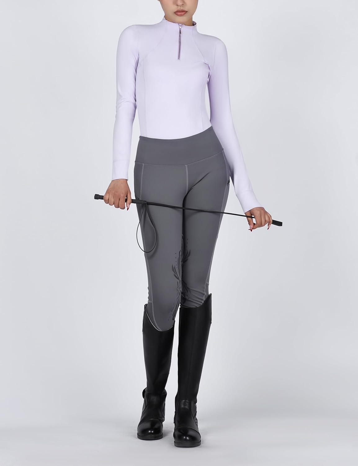 Harrison Howard Women’s Horse Riding Shirt – Long Sleeve Equestrian Shirts with 1/4 Zip(Light Lavender)