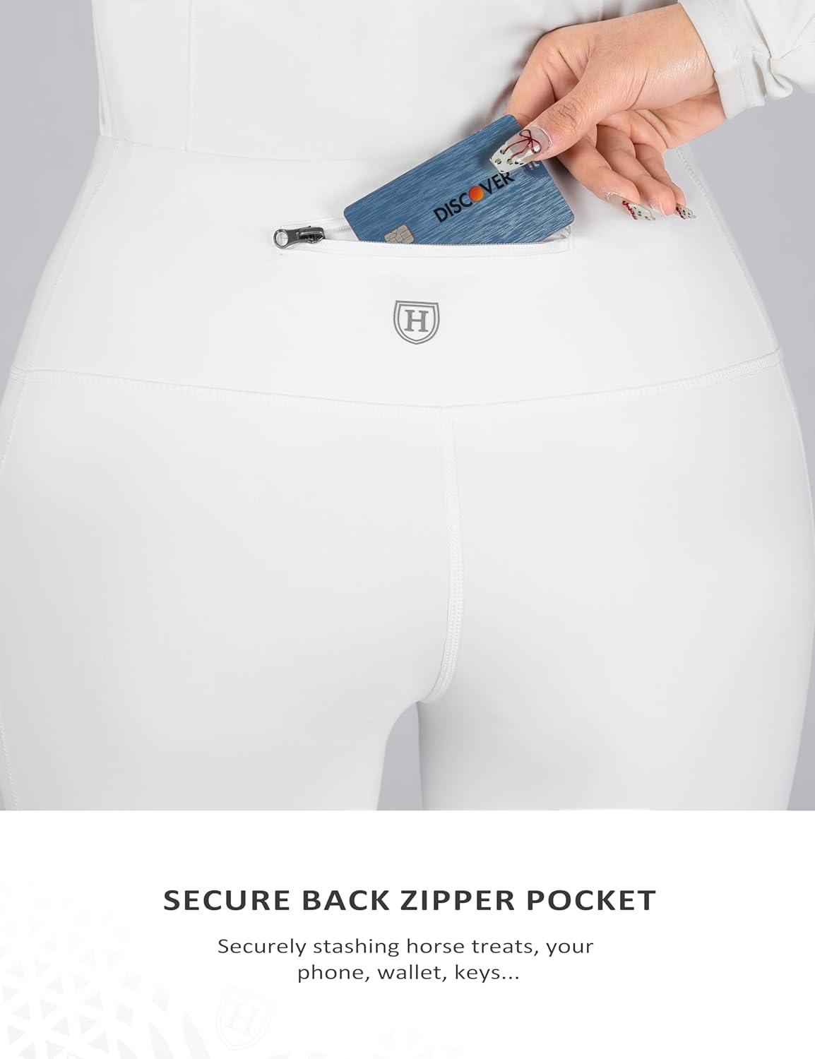 Harrison Howard Women’s Riding Pants Knee-Patch Schooling Tights Horseback Riding Pants Equestrian Breeches(Oval White)