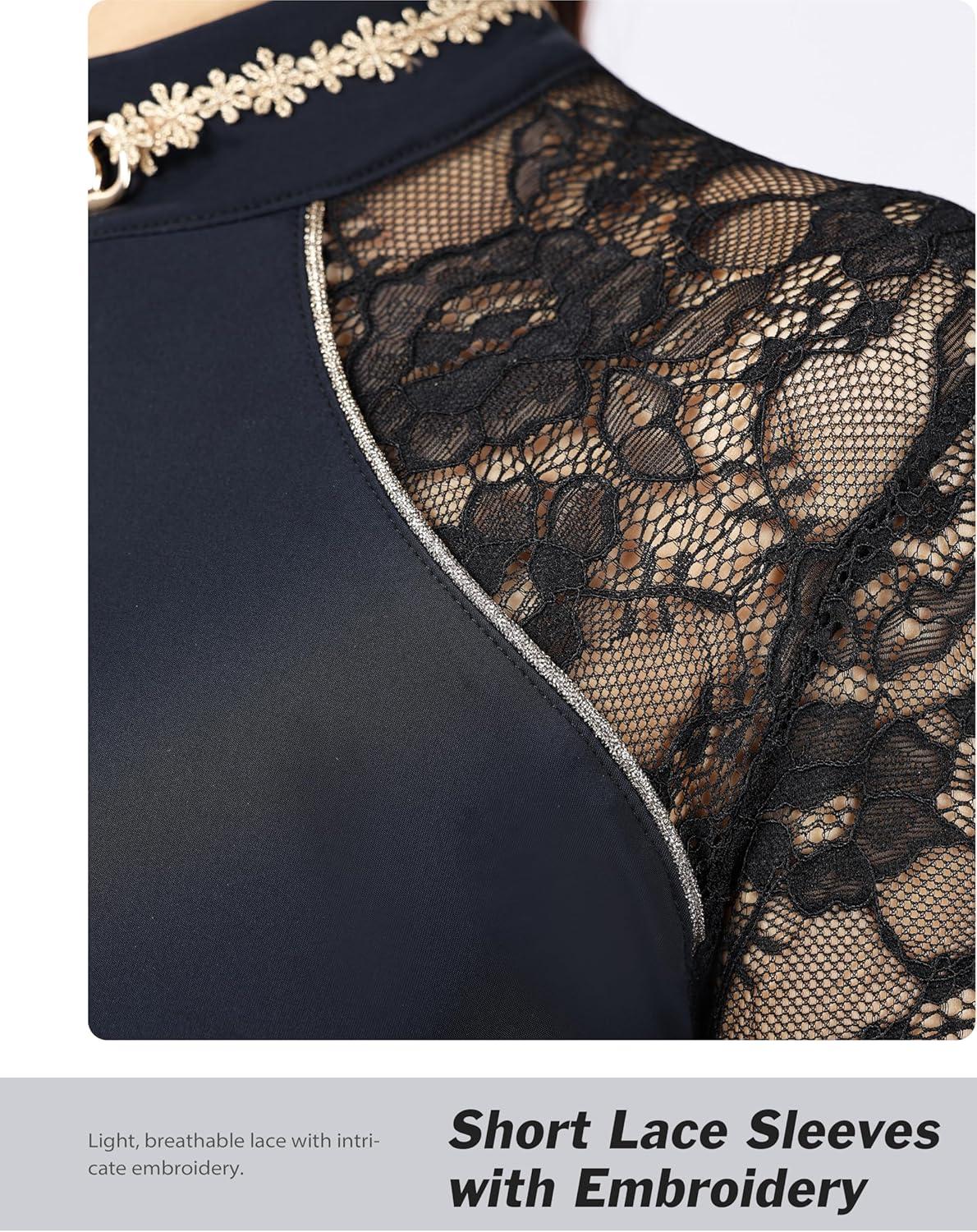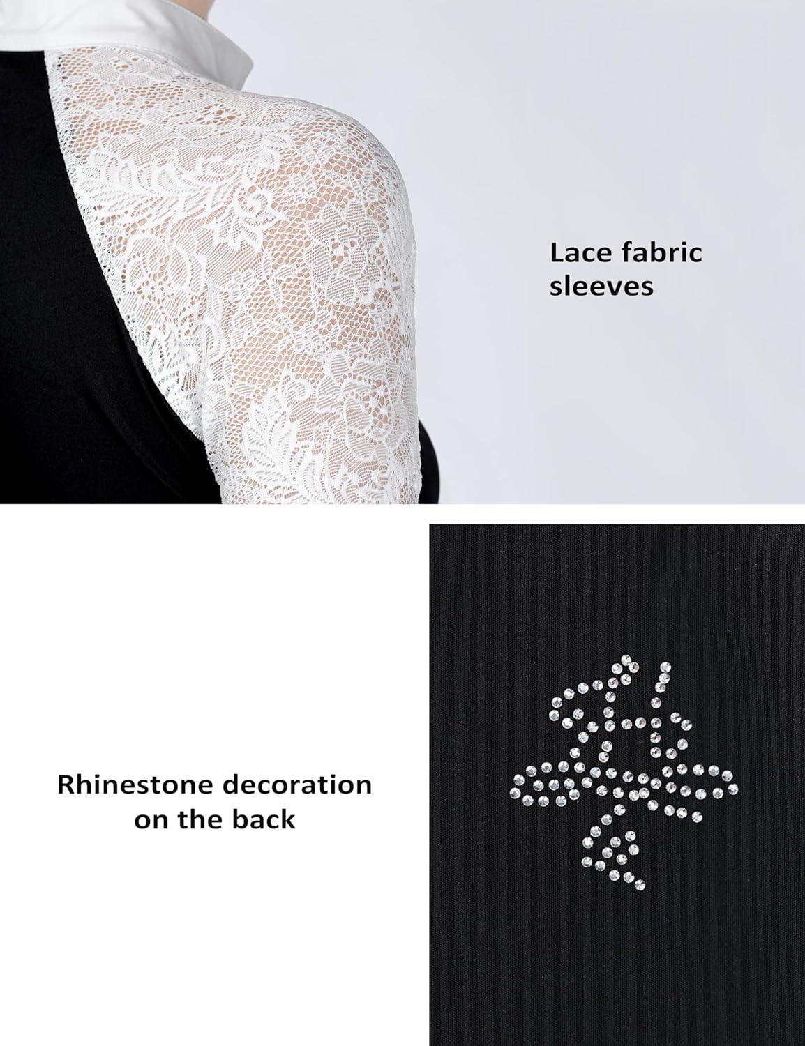 Harrison Howard Women’s Slim Fit Long Sleeve Equestrian Show Shirt with Lace Sleeves Elegant Female Lace Top(Black)
