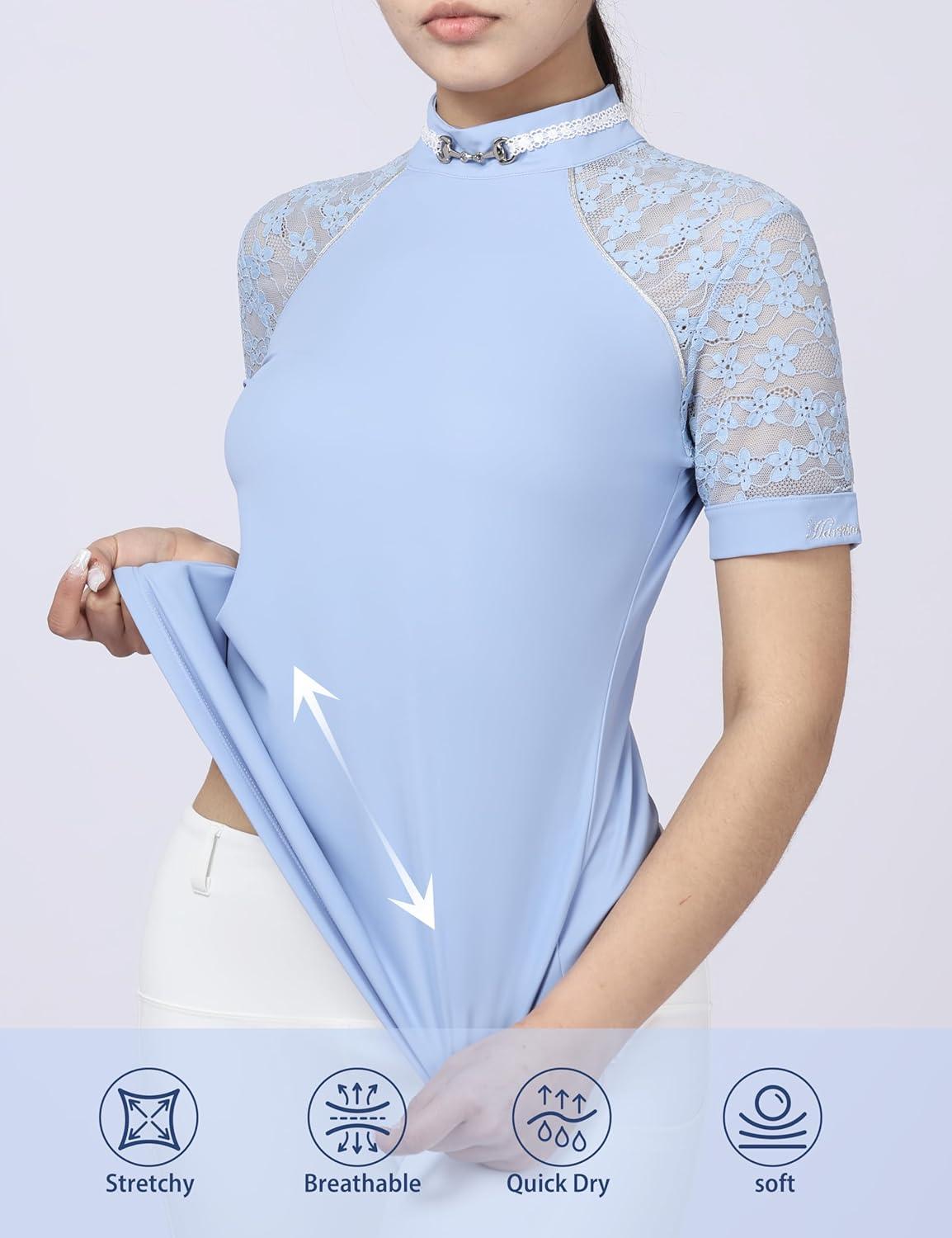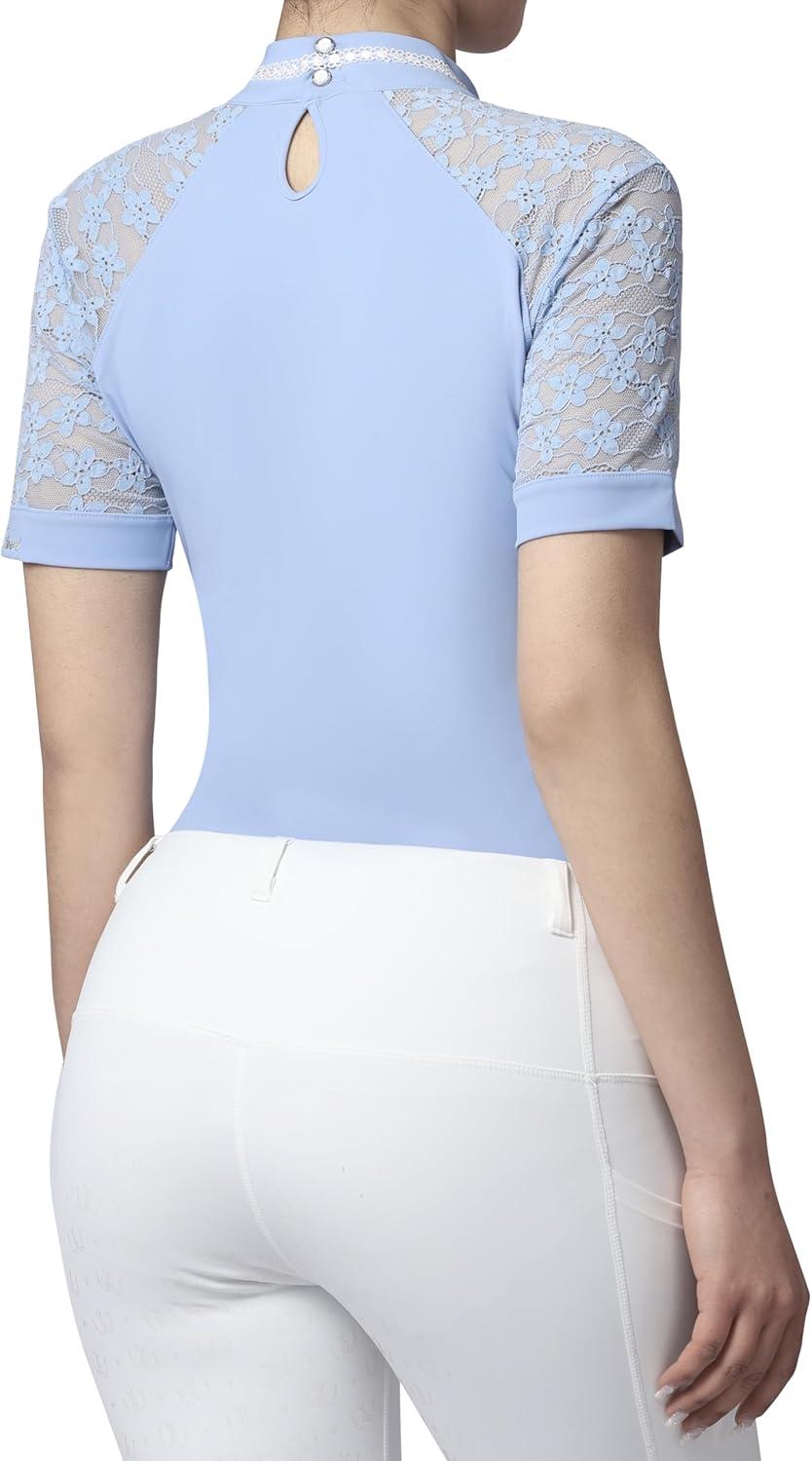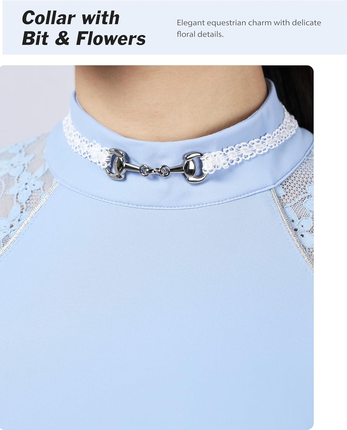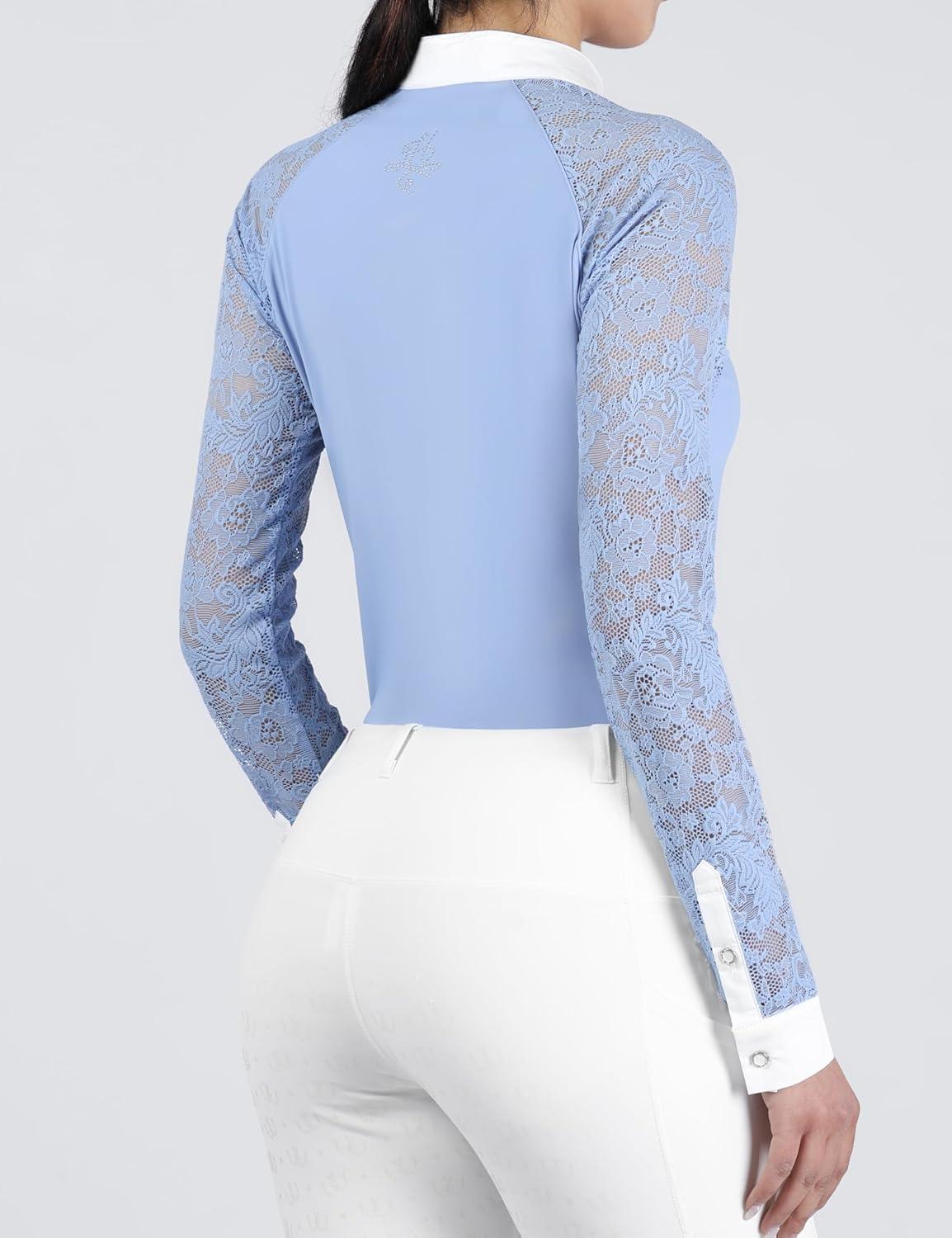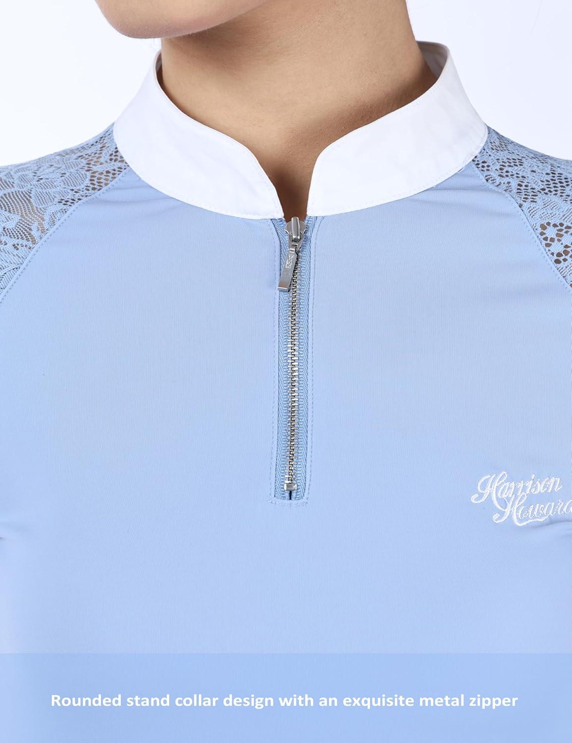 Harrison Howard Women’s Slim Fit Show Shirt with Lace Sleeves and Iconic Bit Breathable Comfortable Rider Top(Ice Blue)