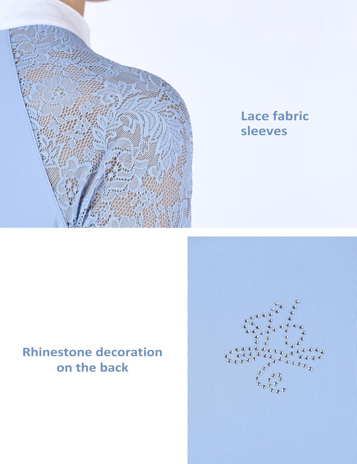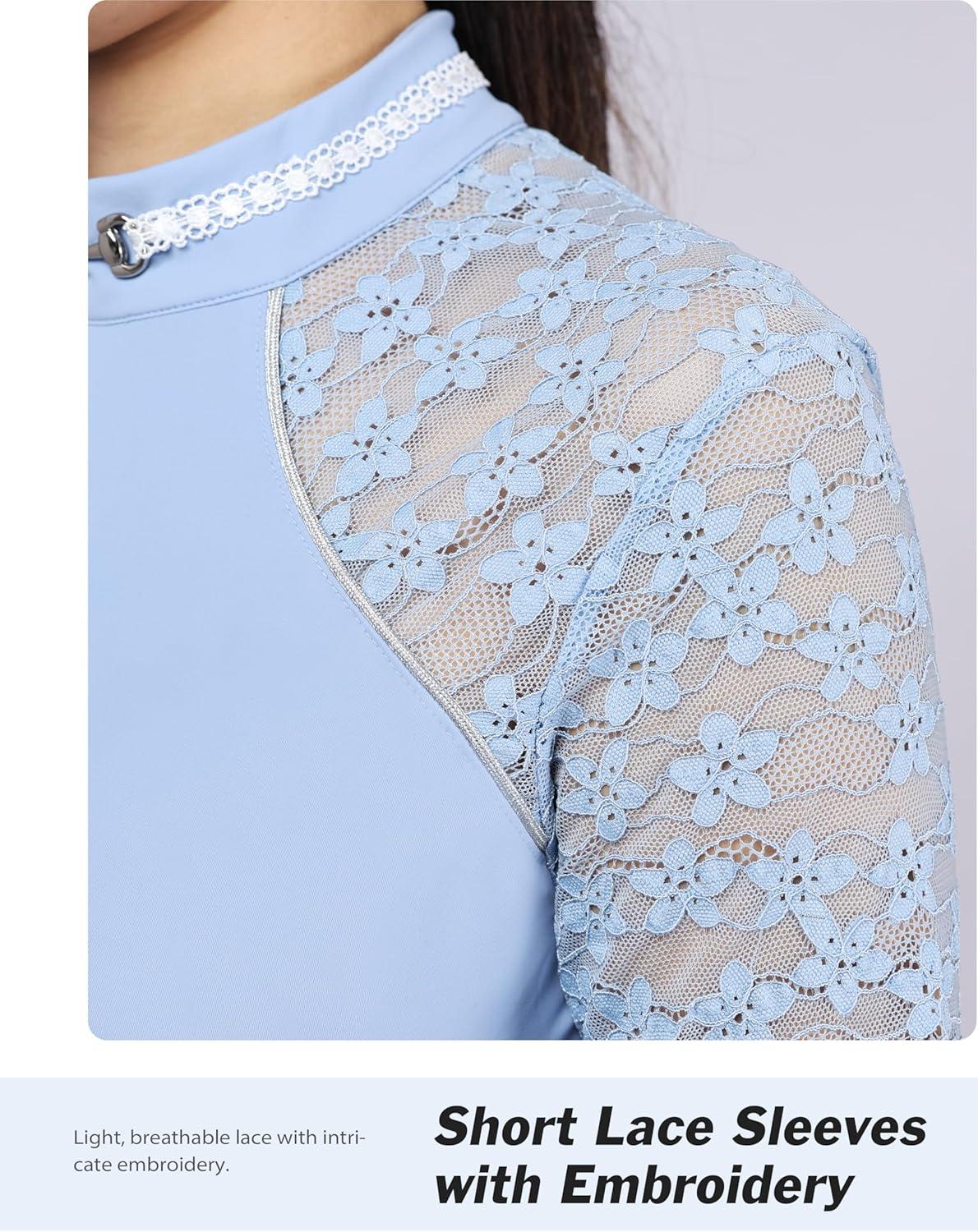 Harrison Howard Women’s Slim Fit Long Sleeve Equestrian Show Shirt with Lace Sleeves Elegant Female Lace Top(Ice Blue)