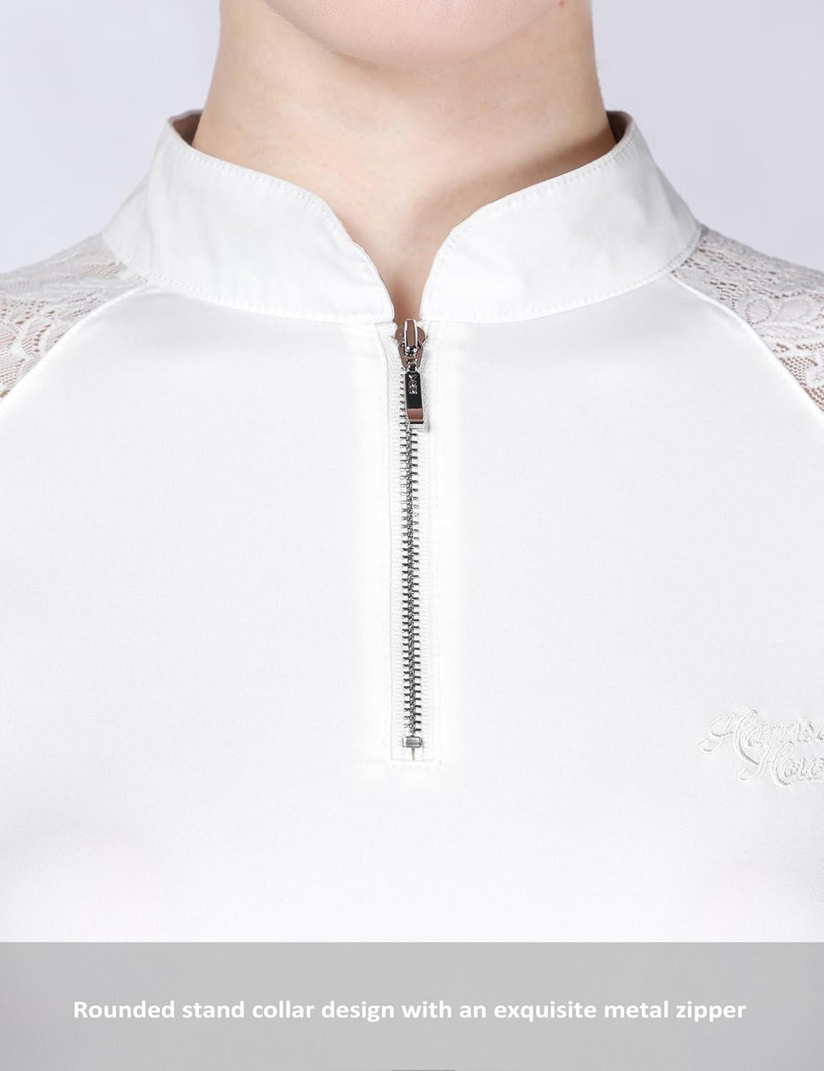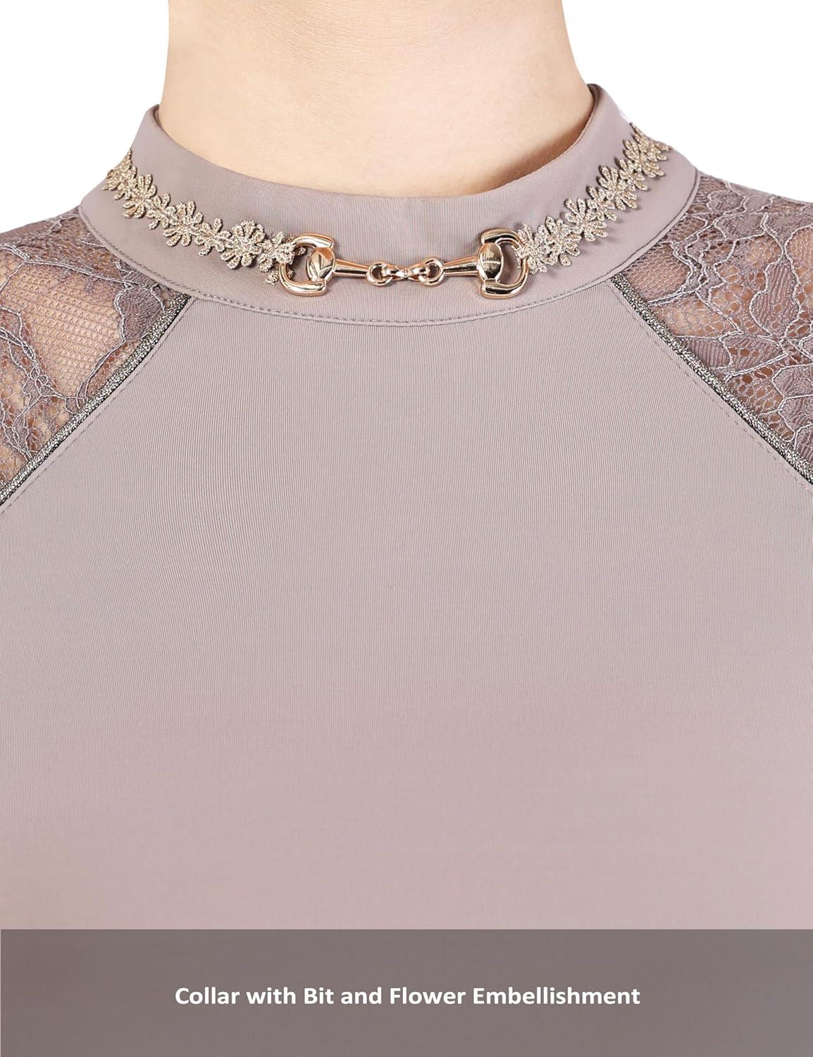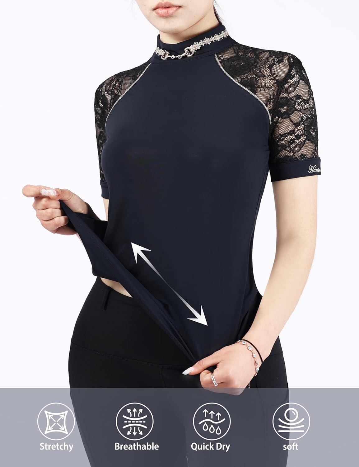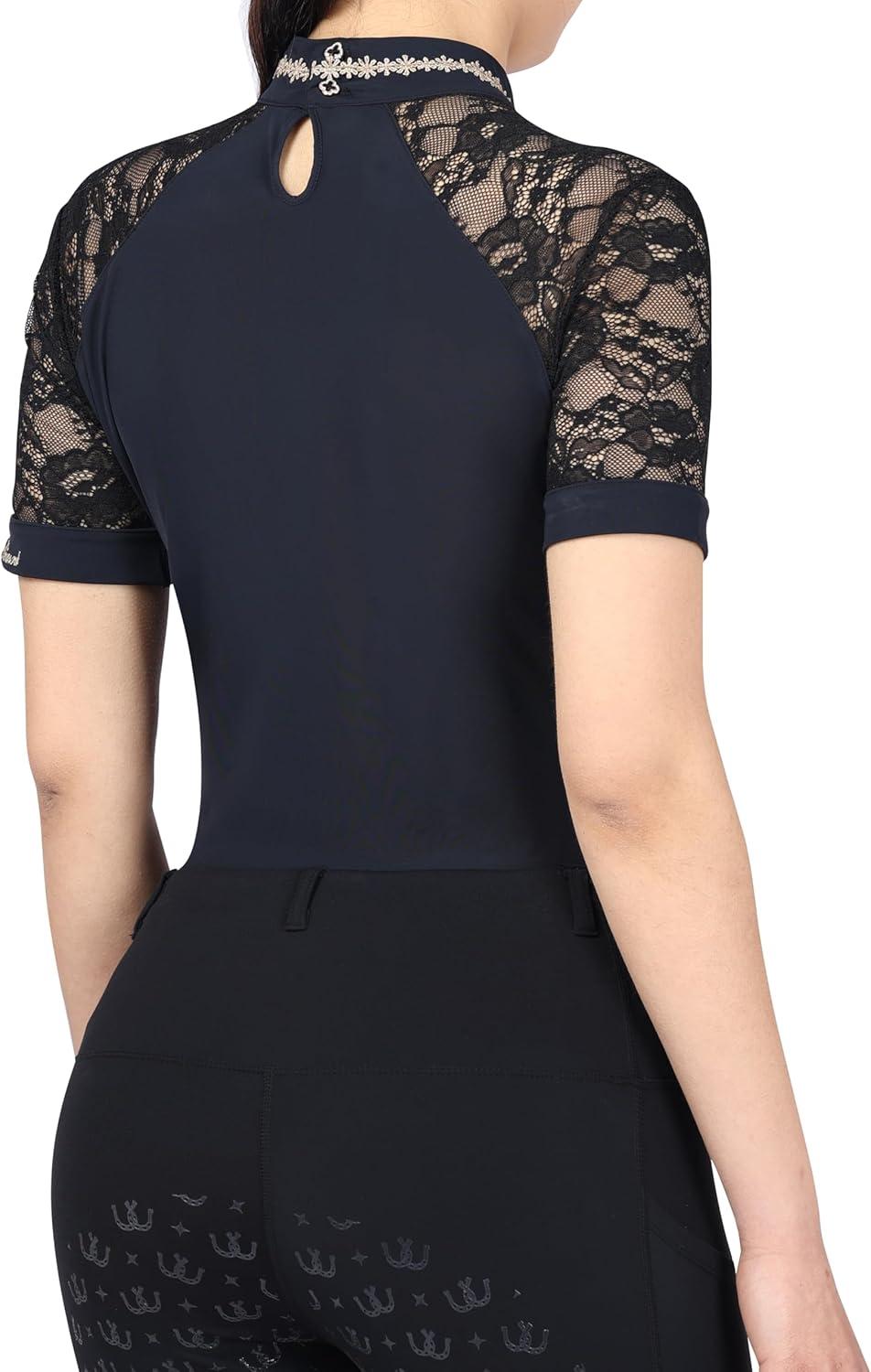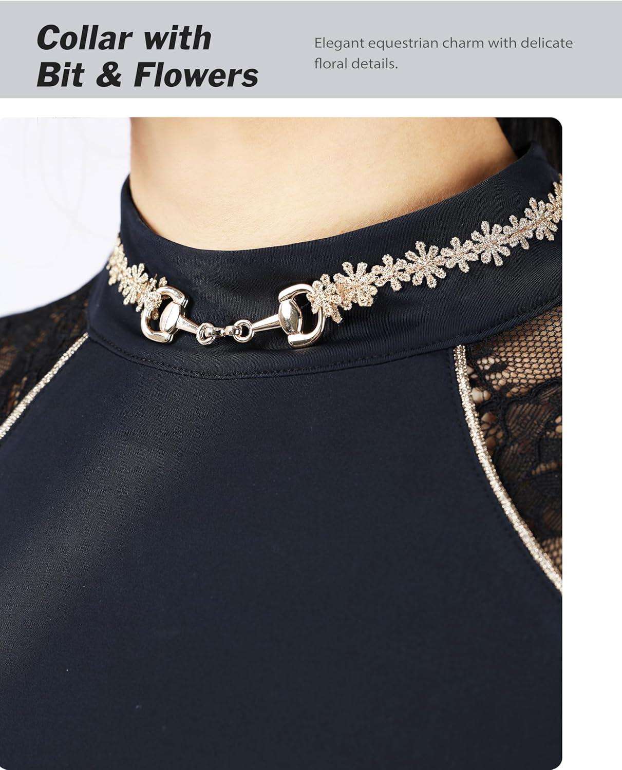 Harrison Howard Women’s Slim Fit Show Shirt with Lace Sleeves and Iconic Bit Breathable Comfortable Rider Top(Black)