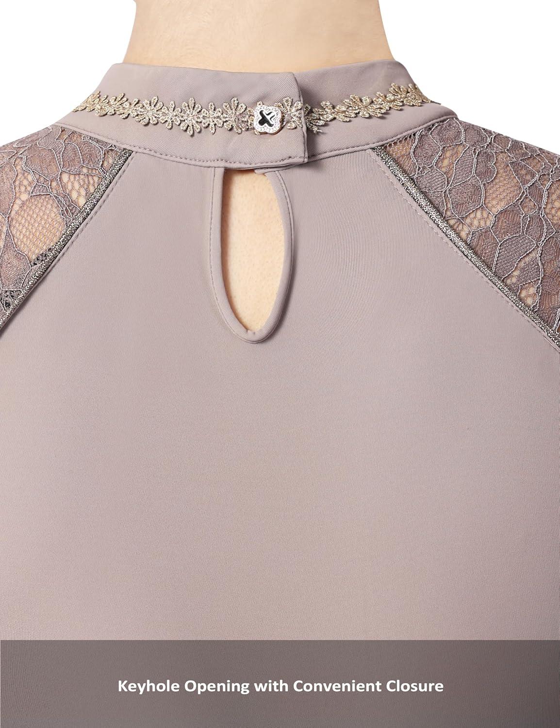 Harrison Howard Women’s Slim Fit Show Shirt with Lace Sleeves and Iconic Bit Breathable Comfortable Rider Top(Beige)