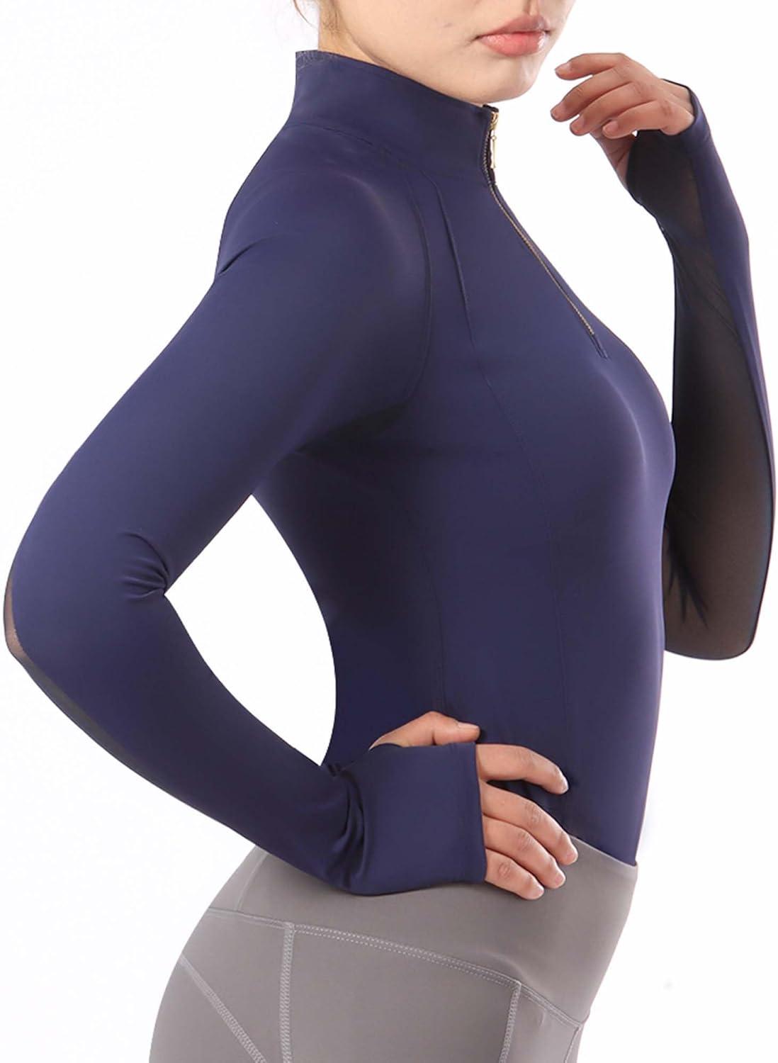 Harrison Howard Equestrian Tops Female Long Sleeve Half Mesh Arm Design Quick-Dry Summer Top with Stylish Neckline(Dark Blue)