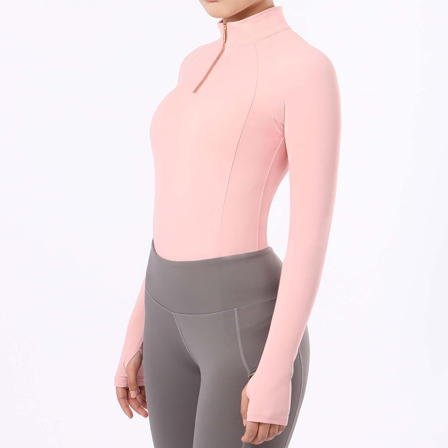 Harrison Howard Equestrian Tops Female Long Sleeve Half Mesh Arm Design Quick-Dry Summer Top with Stylish Neckline(Orange Pink)