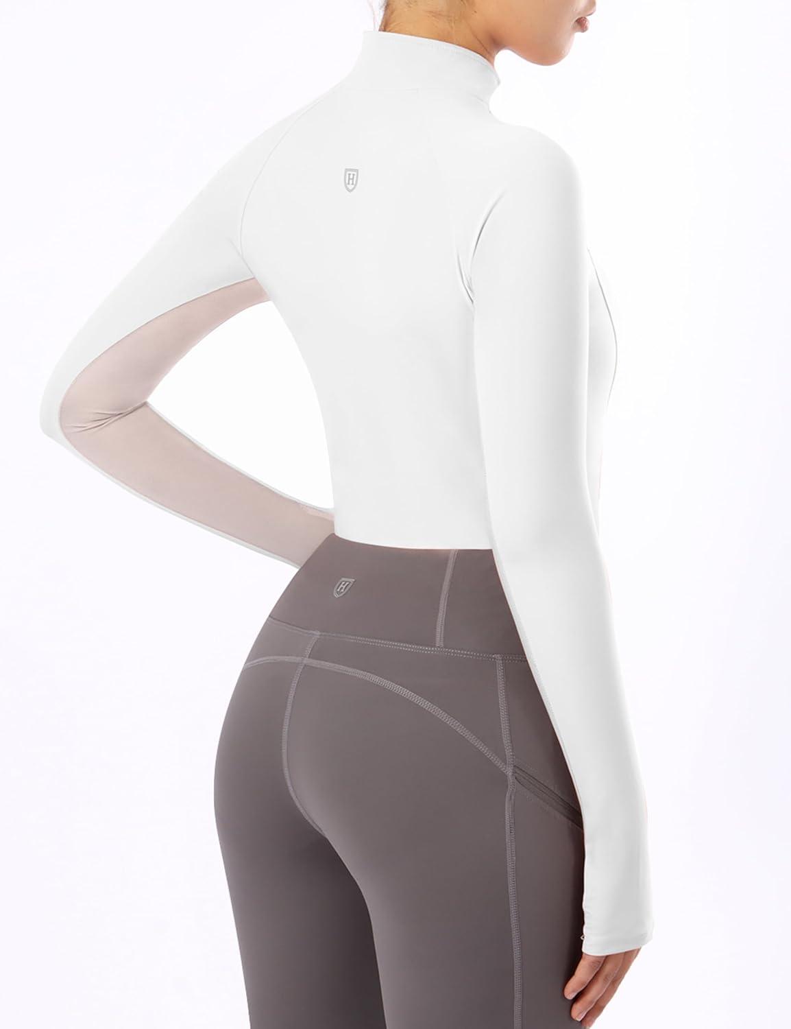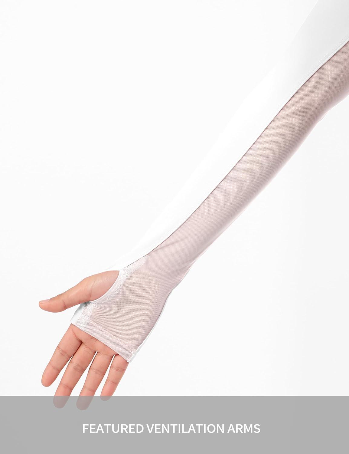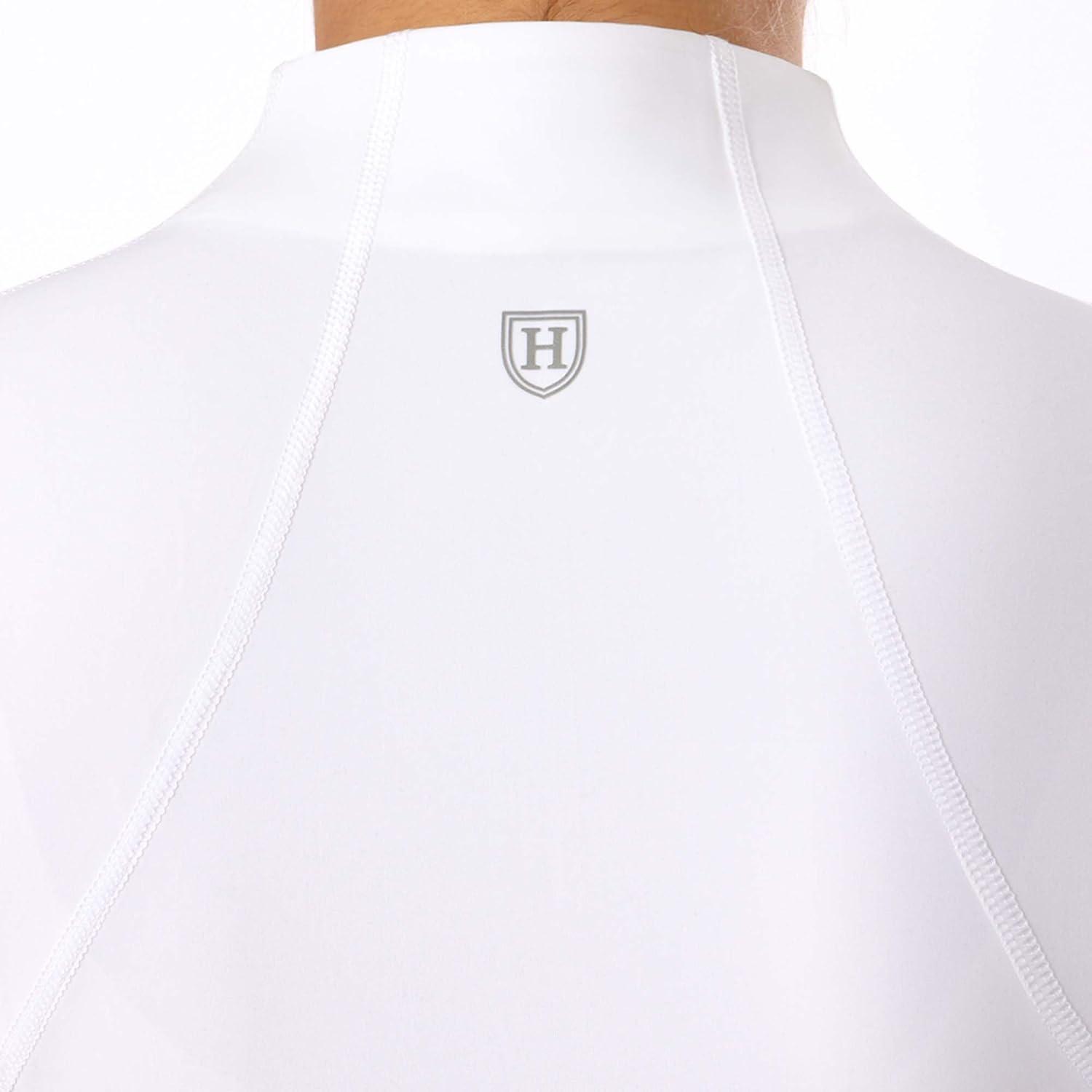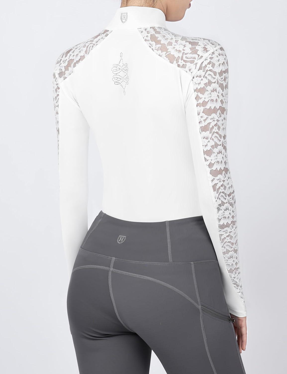 Harrison Howard Equestrian Tops Female Long Sleeve Half Mesh Arm Design Quick-Dry Summer Top with Stylish Neckline(White)