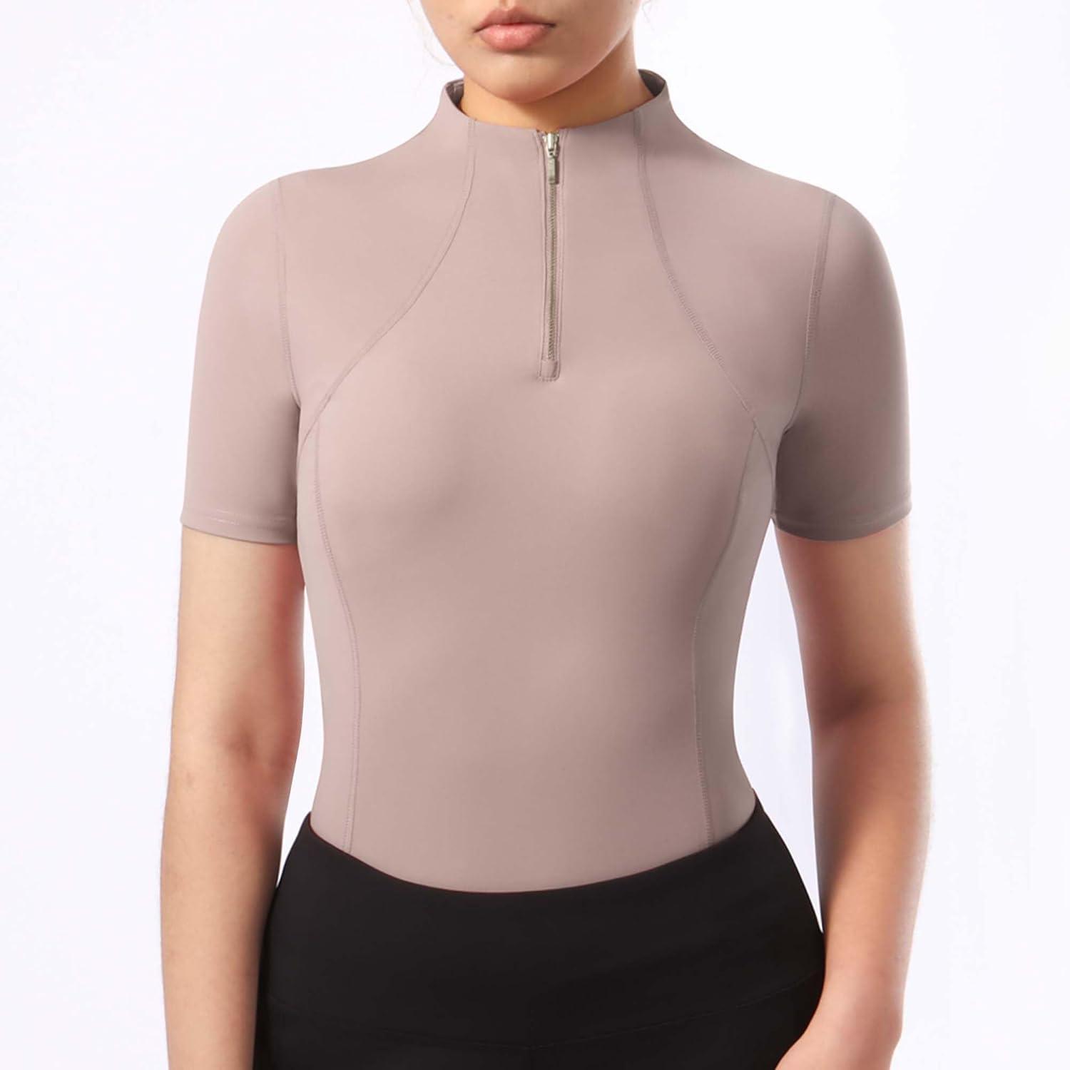 Harrison Howard Equestrian Tops for Women Short Sleeve Quick-Dry Sports Shirt(Camel)