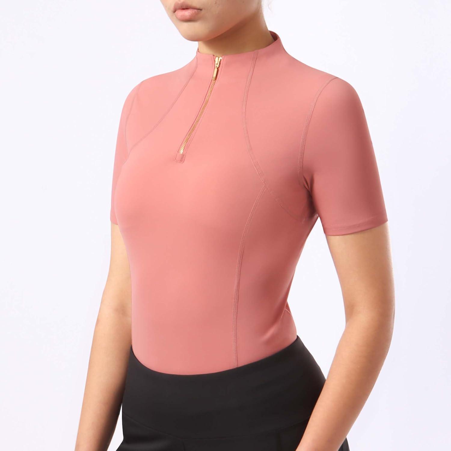 Harrison Howard Equestrian Tops for Women Short Sleeve Quick-Dry Sports Shirt(Pink)