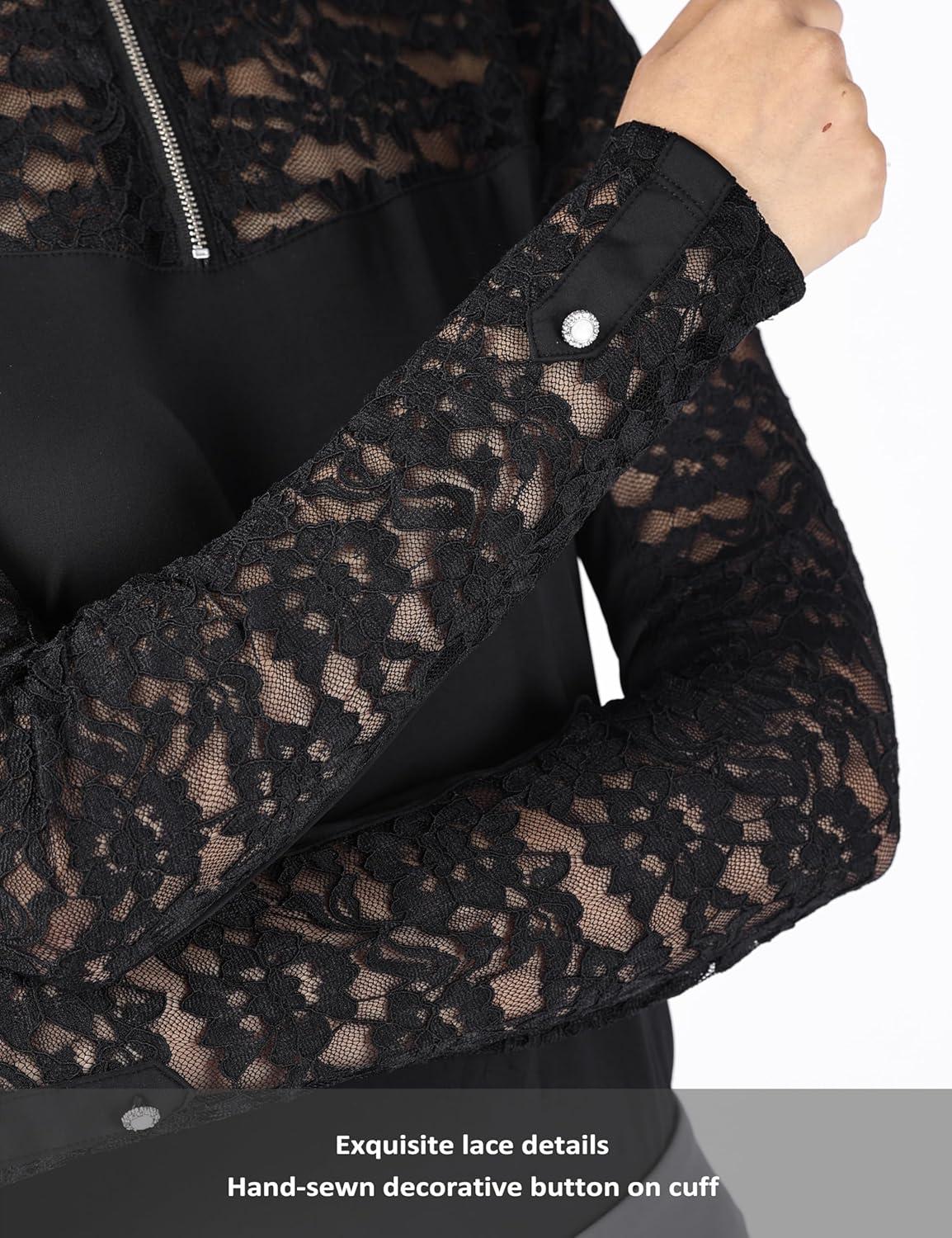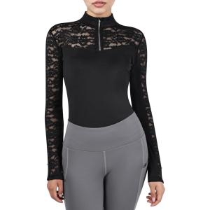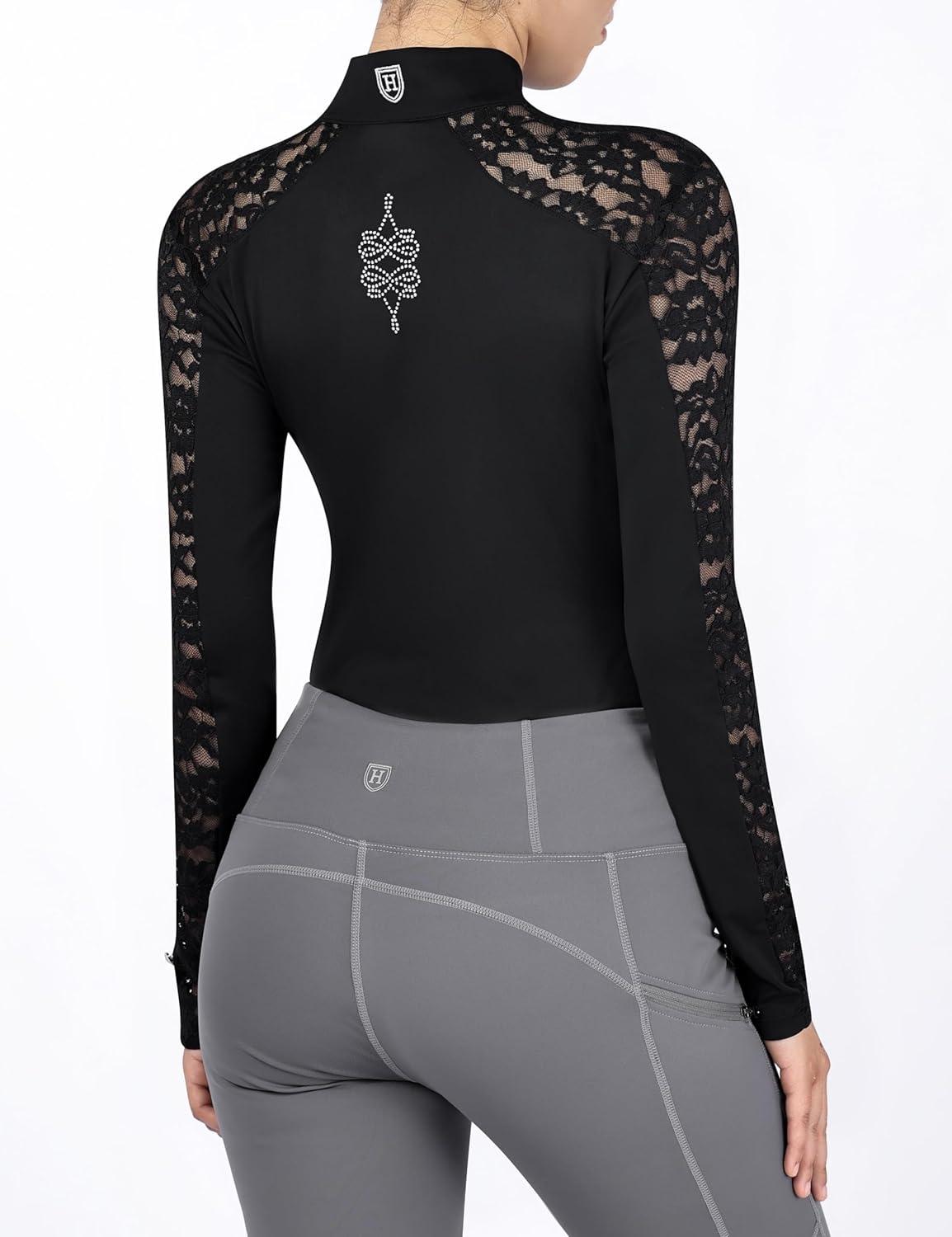 Harrison Howard Ladies Long Sleeve Lace Rider Top with Exquisite Lace Spliced Sleeves Slim Fit Show Shirt(Black)