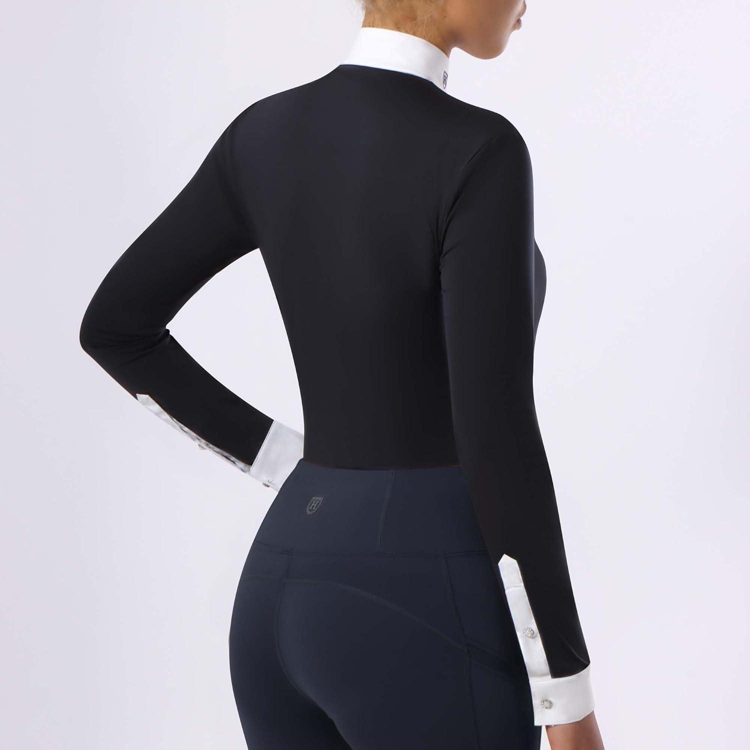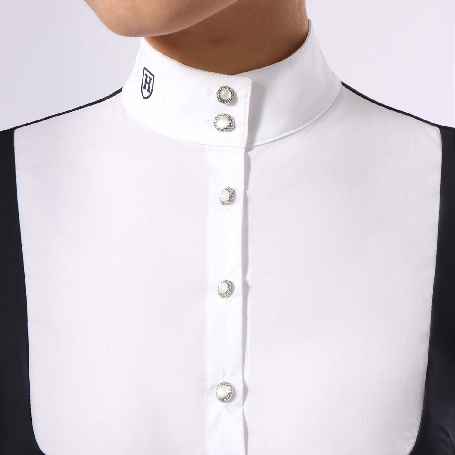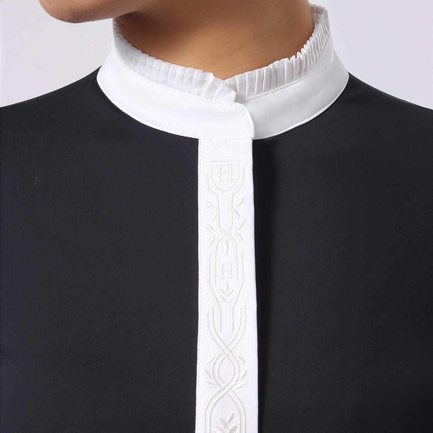 Harrison Howard Women’s Equestrian Long Sleeve Riding Top Show Shirt Patchwork Design(Navy)