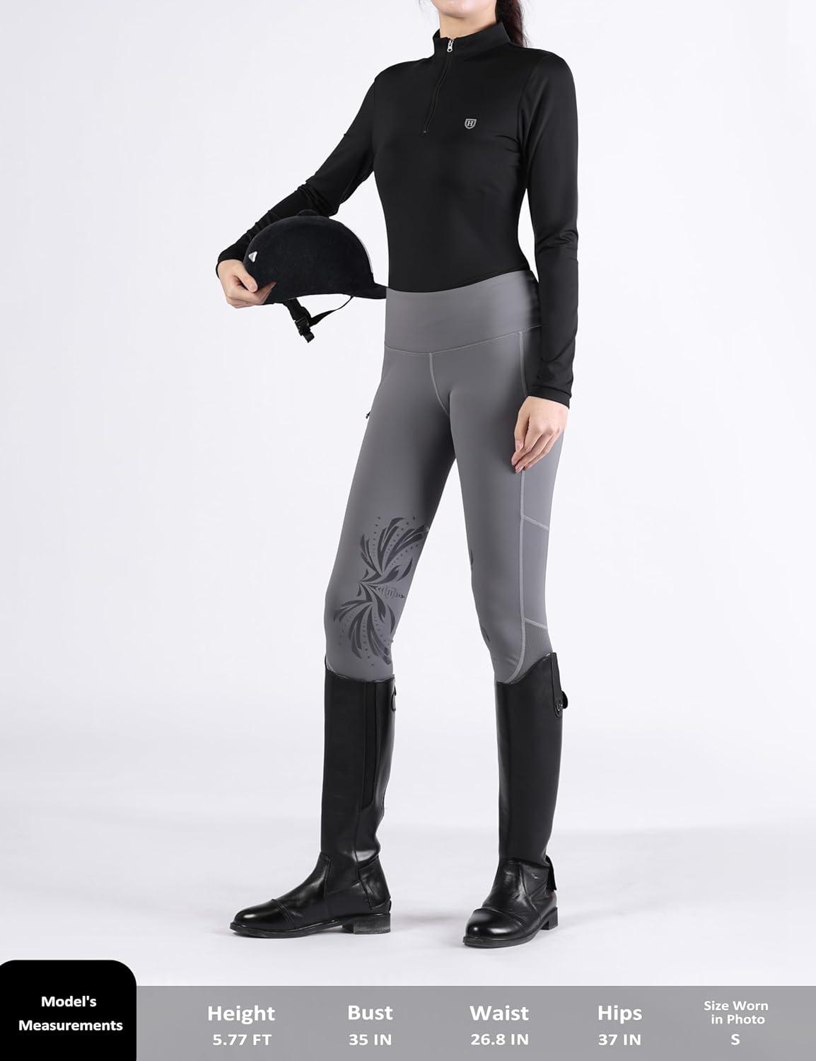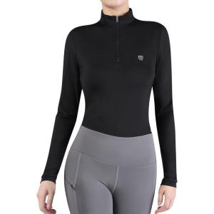 Harrison Howard Women’s Equestrian Sweat Absorption Quick Drying Horse Riding Long Sleeve Shirt 1/4 Zip Base Layer(Black)