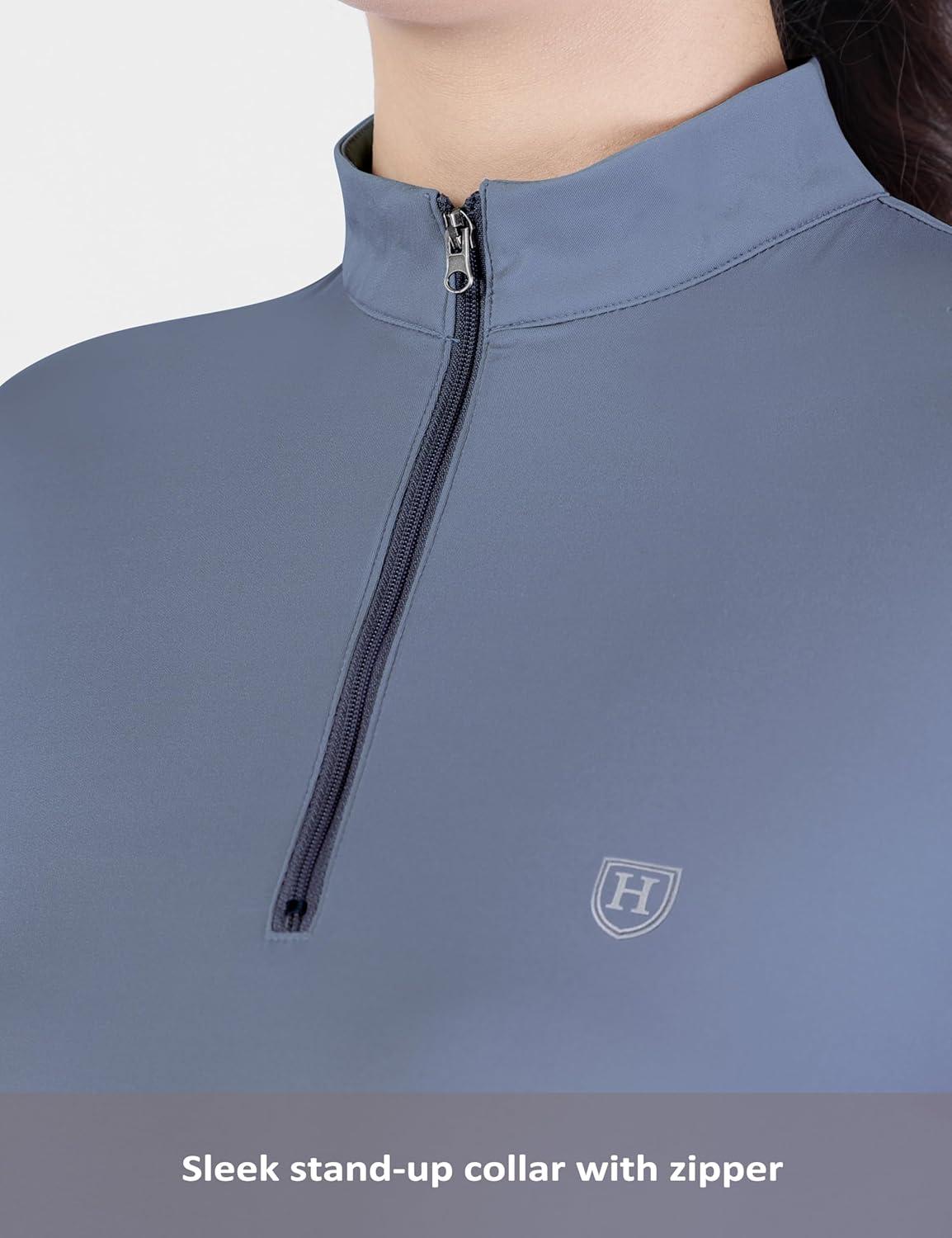 Harrison Howard Women’s Equestrian Sweat Absorption Quick Drying Horse Riding Long Sleeve Shirt 1/4 Zip Base Layer(Blue)