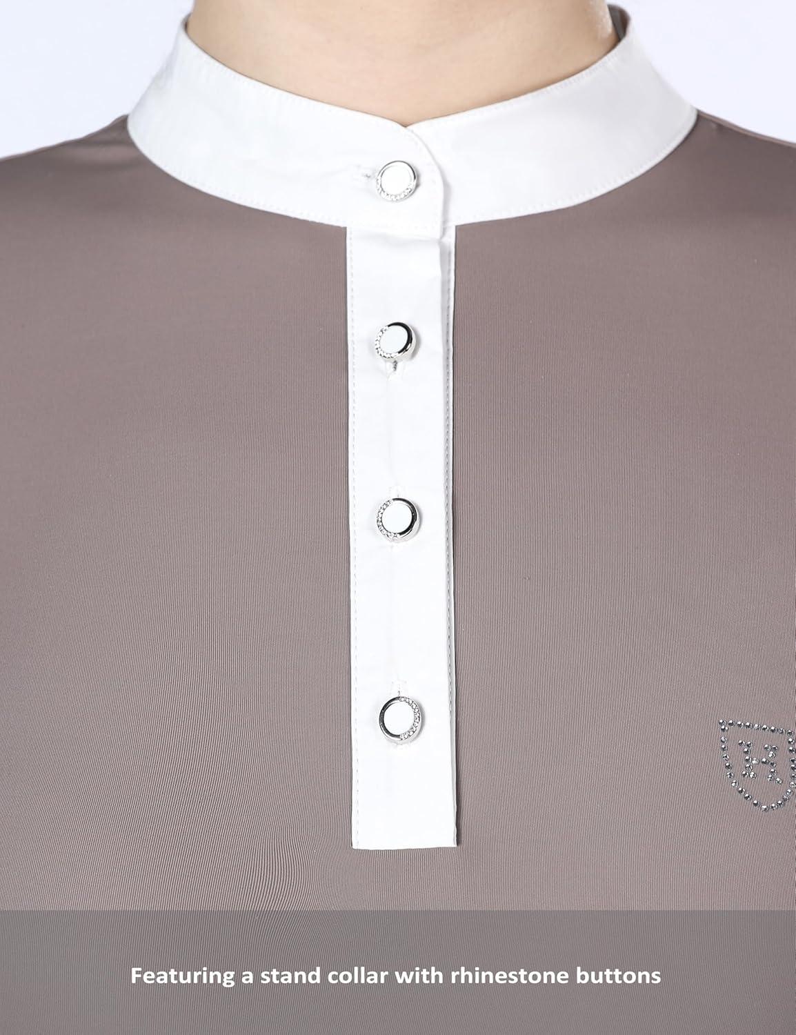 Harrison Howard Women’s Equestrian Long Sleeve Riding Top Show Shirt Patchwork Design(Light Grey)