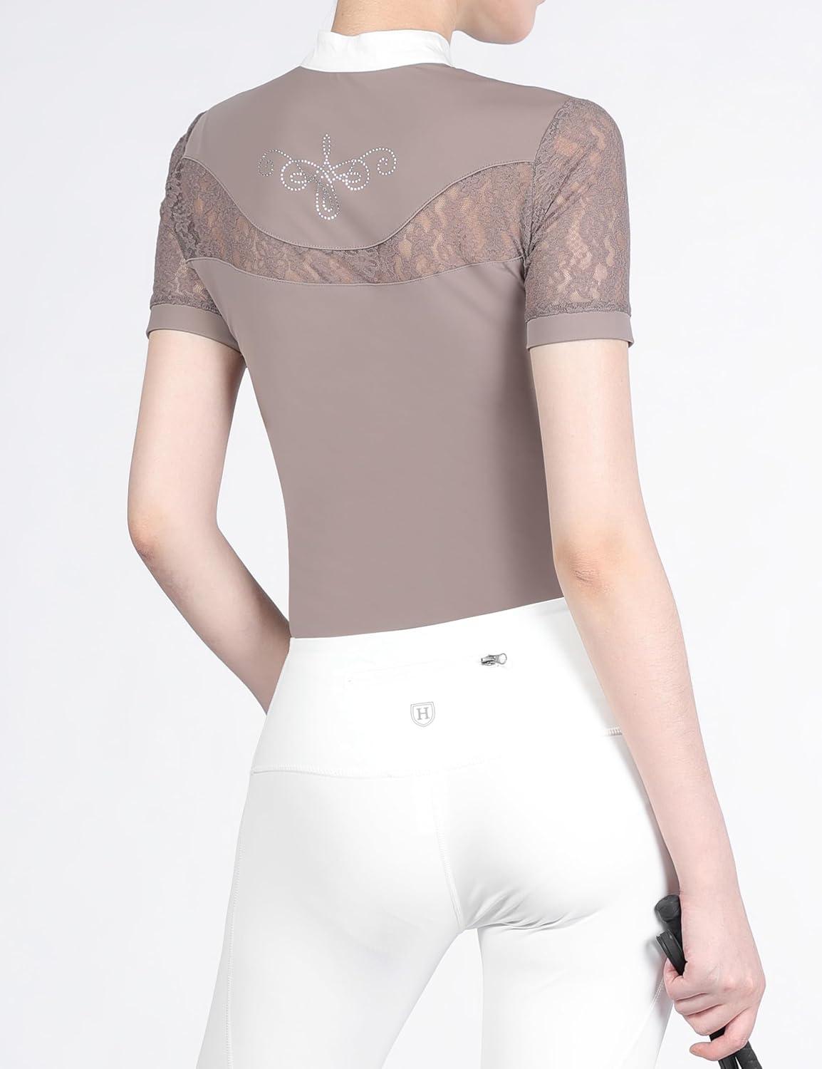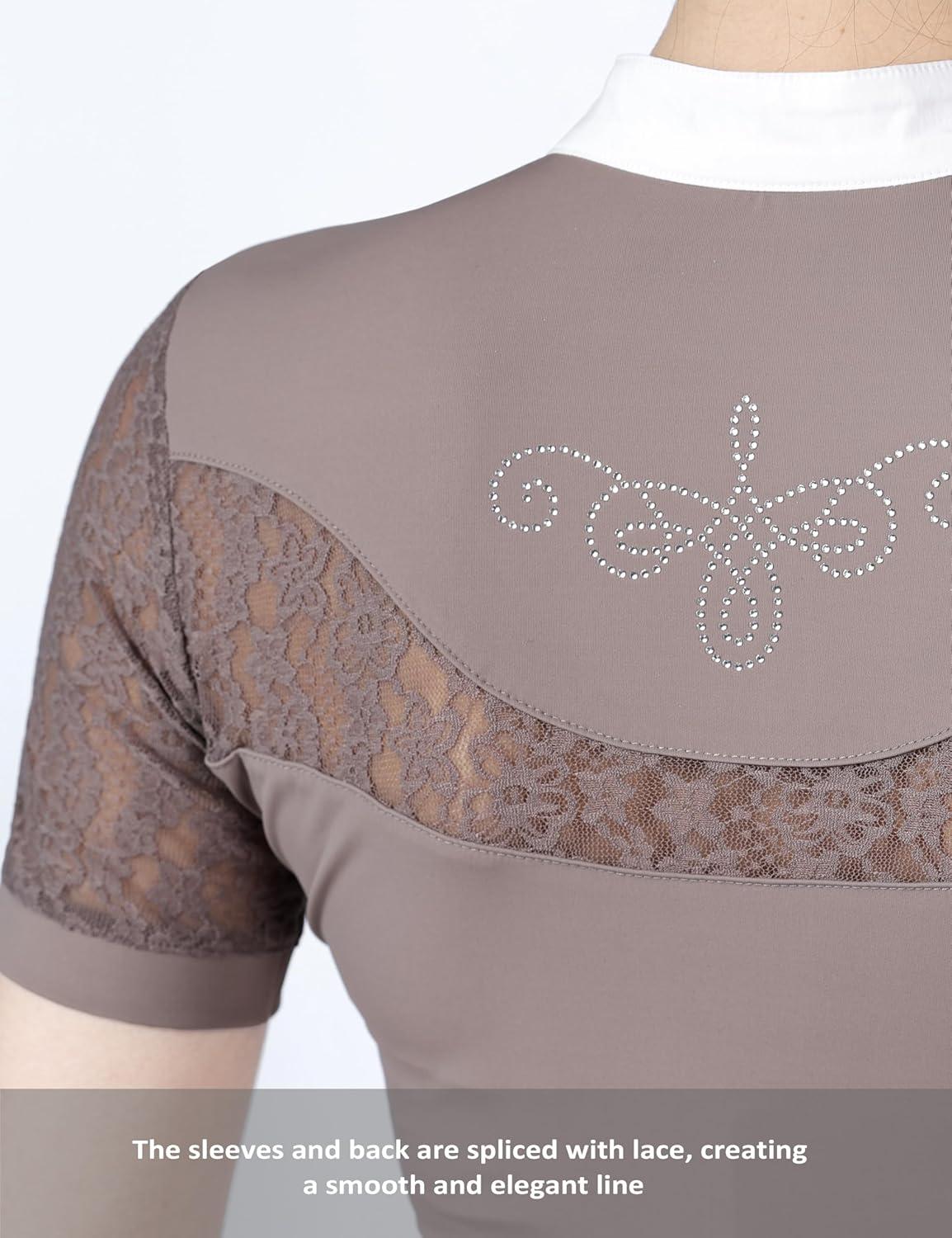 Harrison Howard Short Sleeve Lace Top Show Shirt Breathable with Graceful Back Lace Rider Top(Beige)