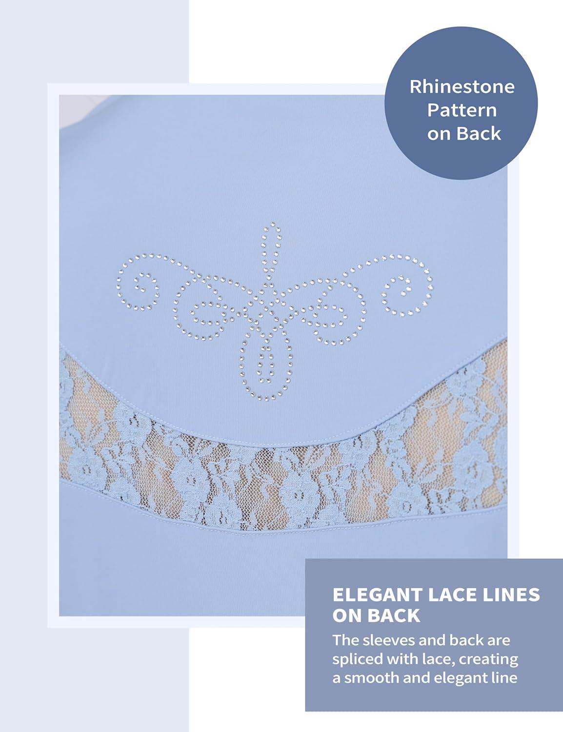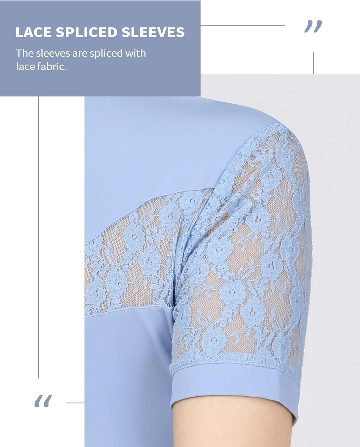 Harrison Howard Short Sleeve Lace Top Show Shirt Breathable with Graceful Back Lace Rider Top(Ice Blue)