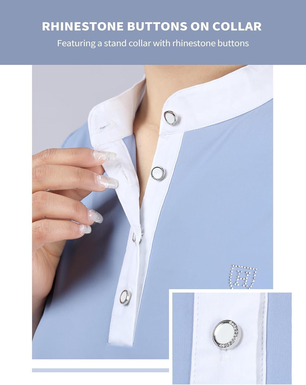 Harrison Howard Women’s Equestrian Short Sleeve Riding Top Show Shirt Rider Sport Sun Shirt(Navy)