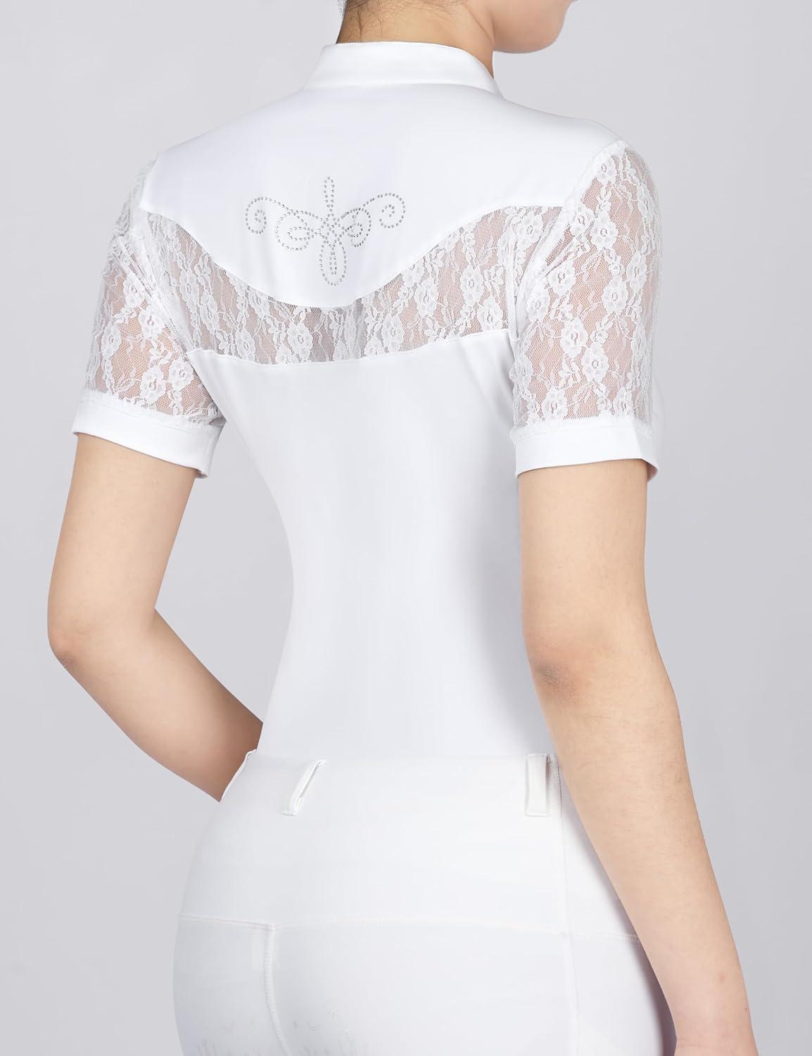 Harrison Howard Short Sleeve Lace Top Show Shirt Breathable with Graceful Back Lace Rider Top(Oval White)