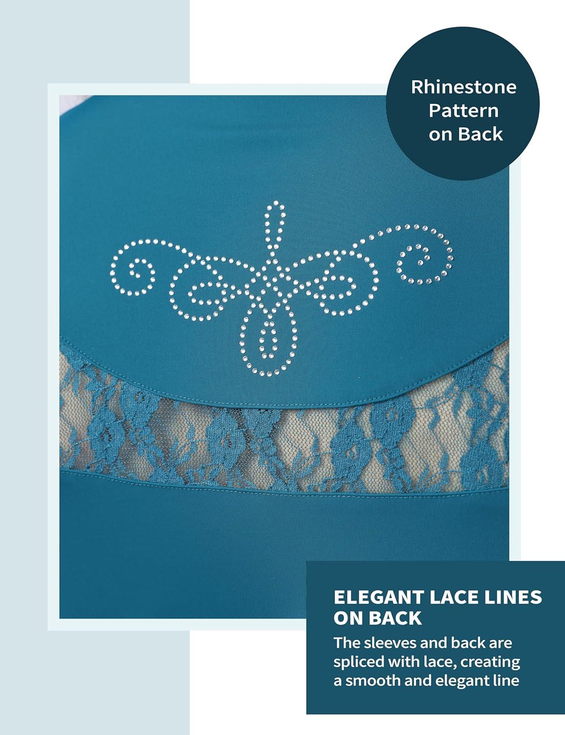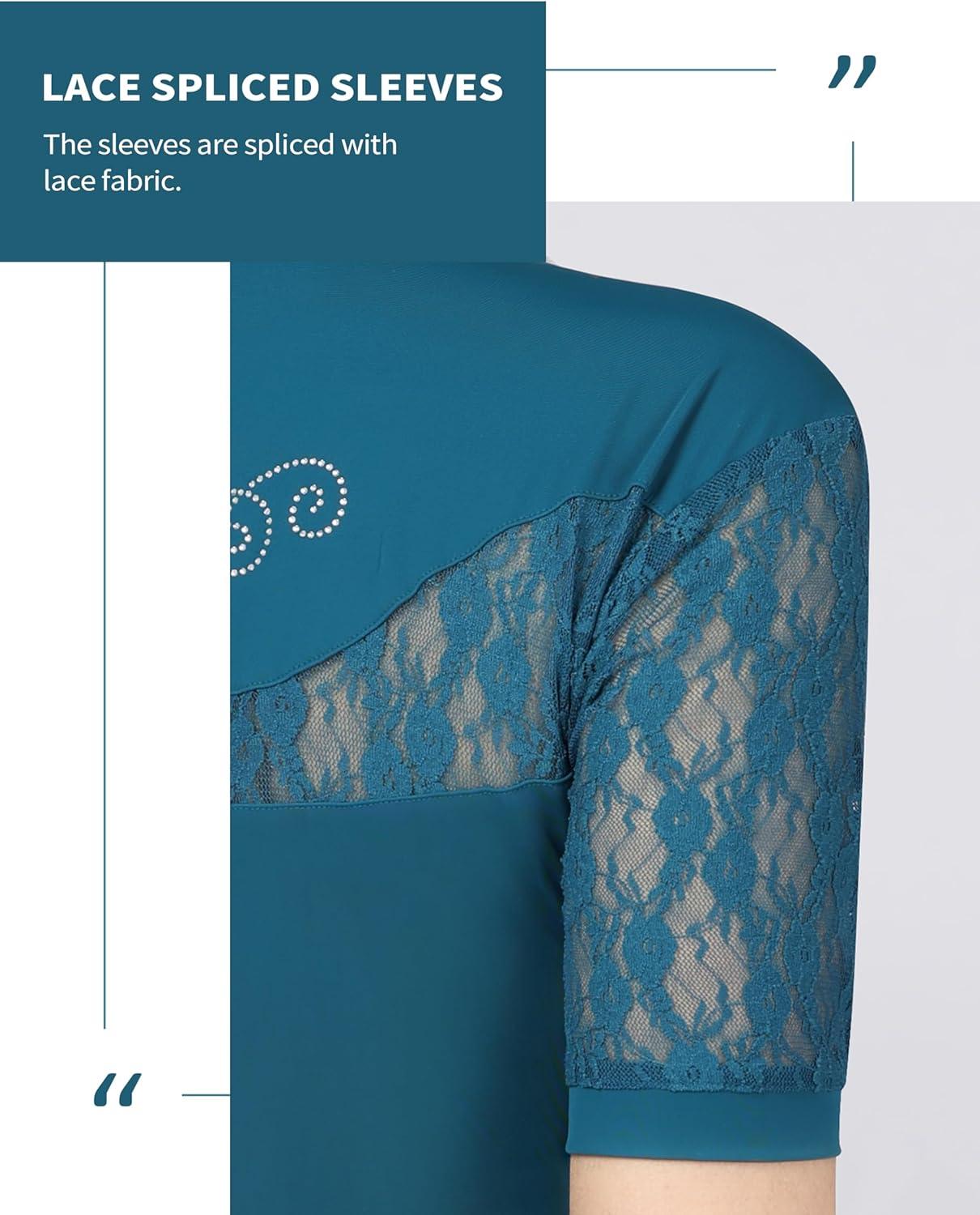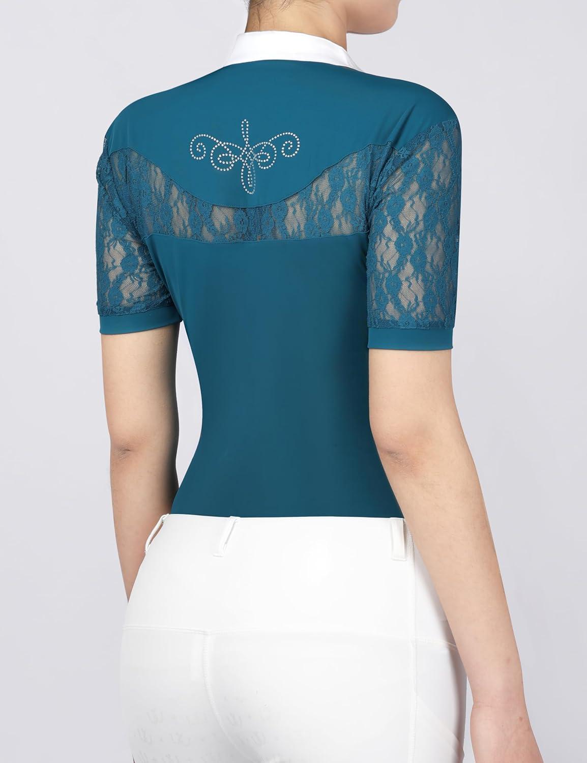 Harrison Howard Short Sleeve Lace Top Show Shirt Breathable with Graceful Back Lace Rider Top(Teal)