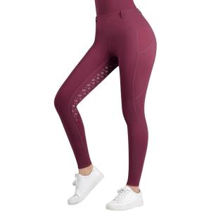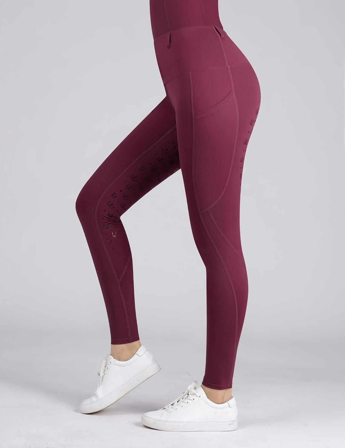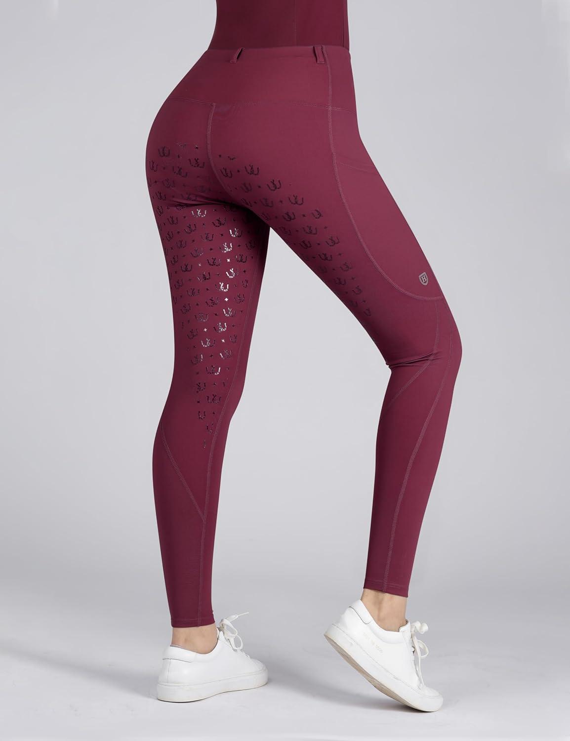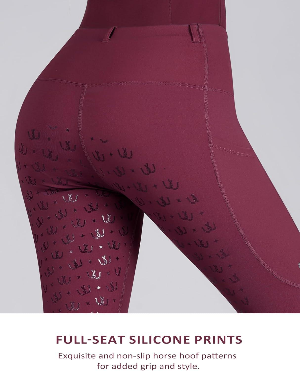 Harrison Howard Women’s Full Seat Silicon Grip Equestrian Breeches Horse Riding Tights High Waisted Leggings(Burgundy)