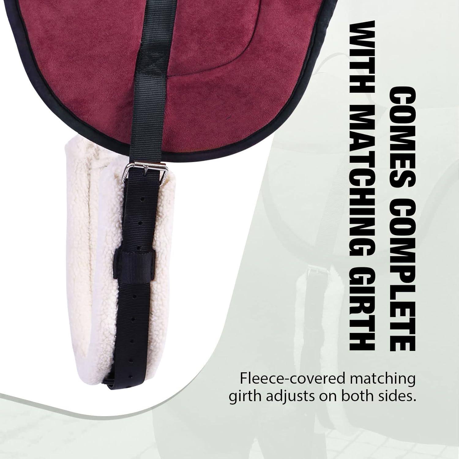Harrison Howard Equestrian Saddle Pad Horse Riding Pad Bareback Pad with Girth(Burgundy)