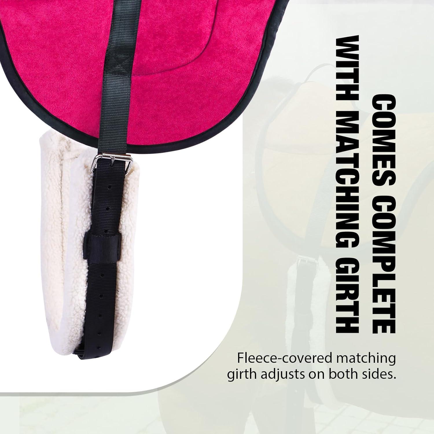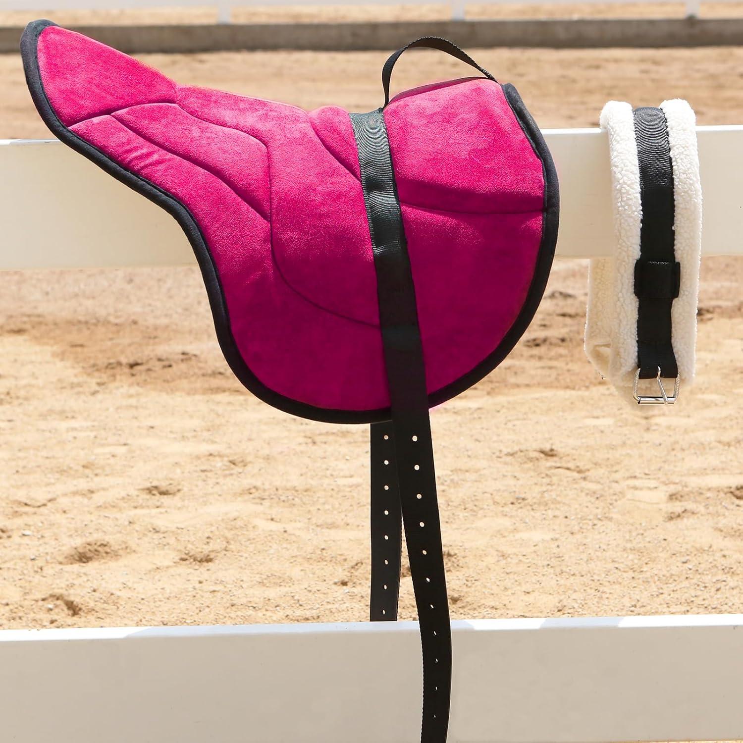 Harrison Howard Equestrian Saddle Pad Horse Riding Pad Bareback Pad with Girth(Rose Pink)